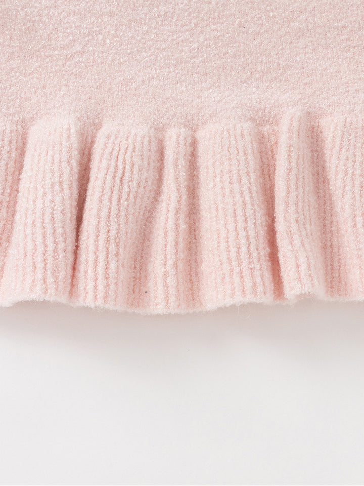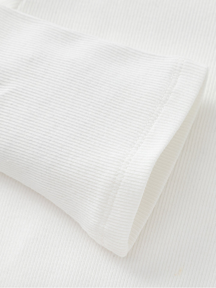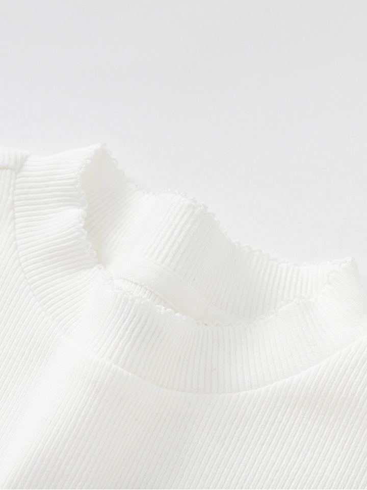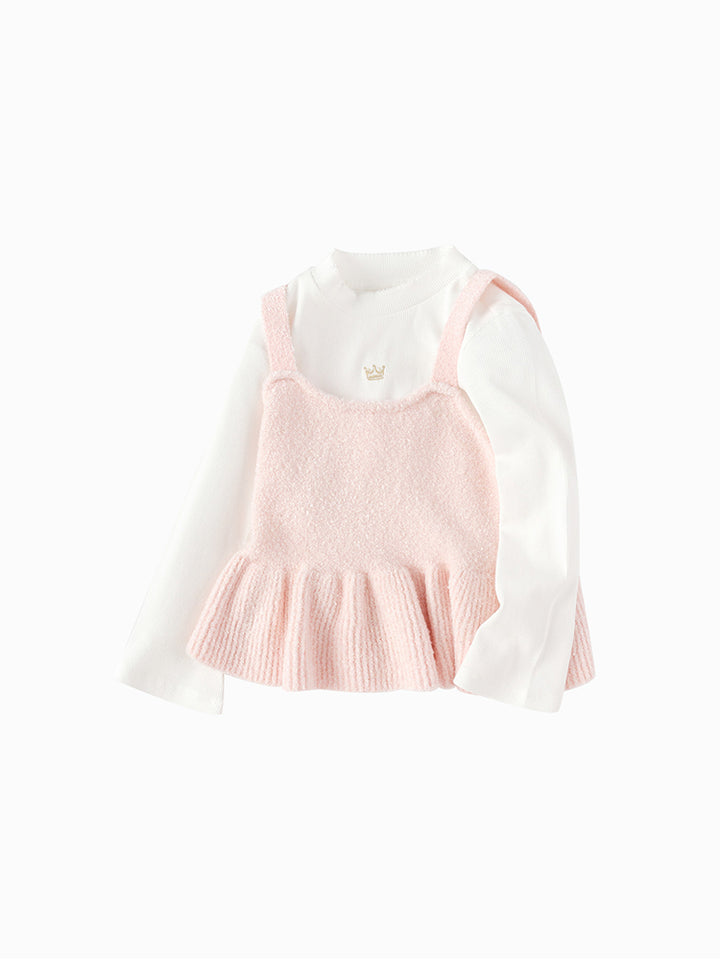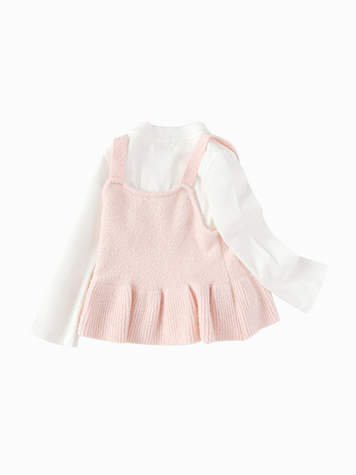 girl top set of two pieces, a long sleeves top in a solid mono colored pattern decorated with small embroidery and a top knitted layer vest in a solid mono colored pattern comes with shoulder straps
