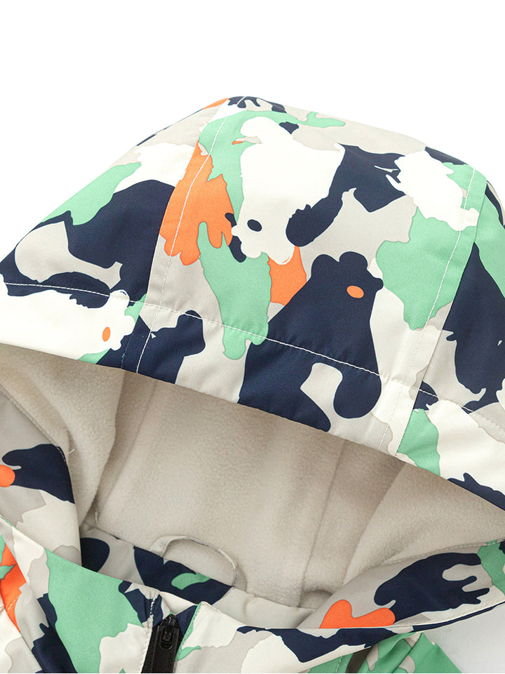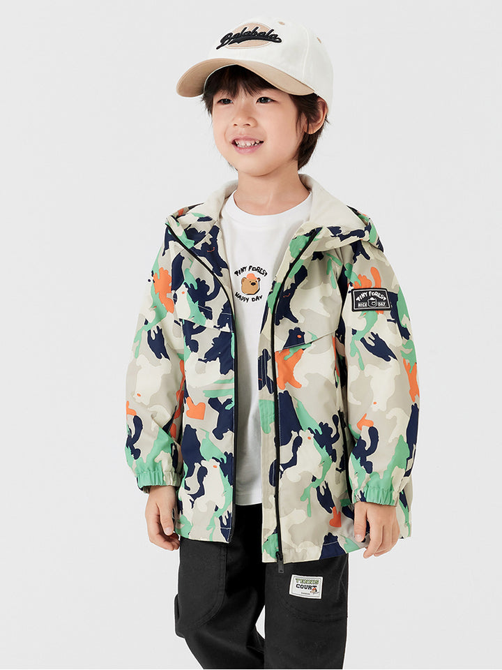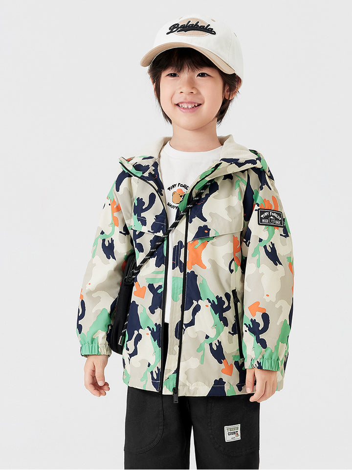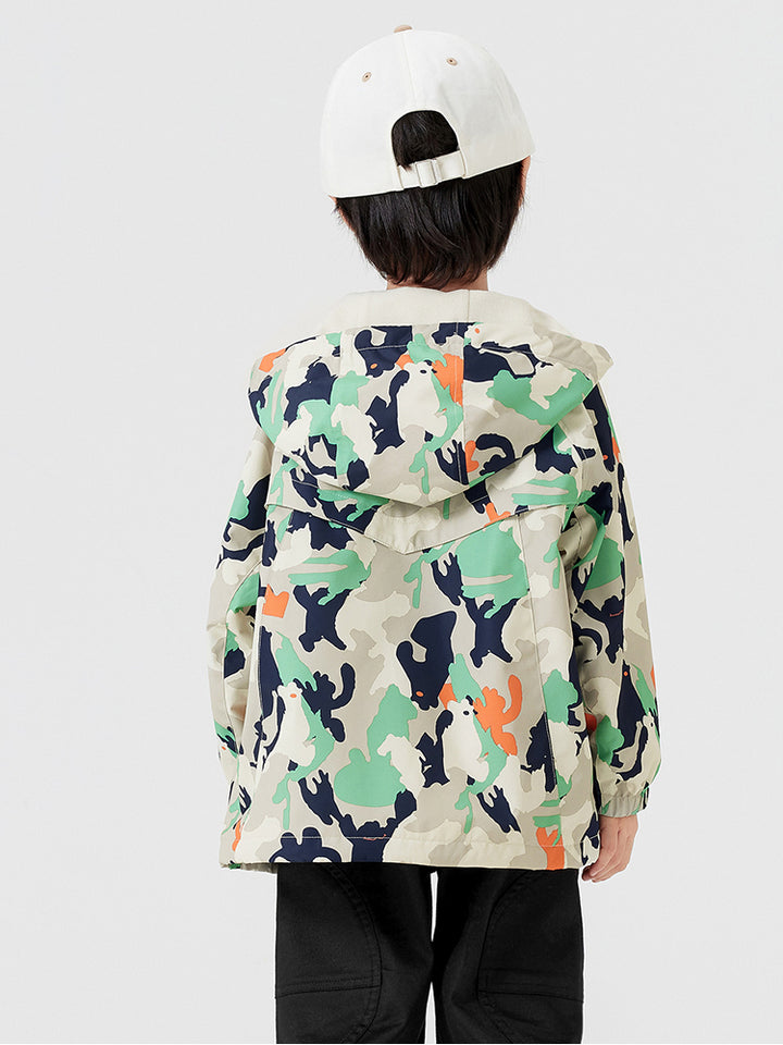 long sleeves casual jacket, decorated with a printed pattern, comes with pockets on the front side, front zipper for closure and with a hoodie collar