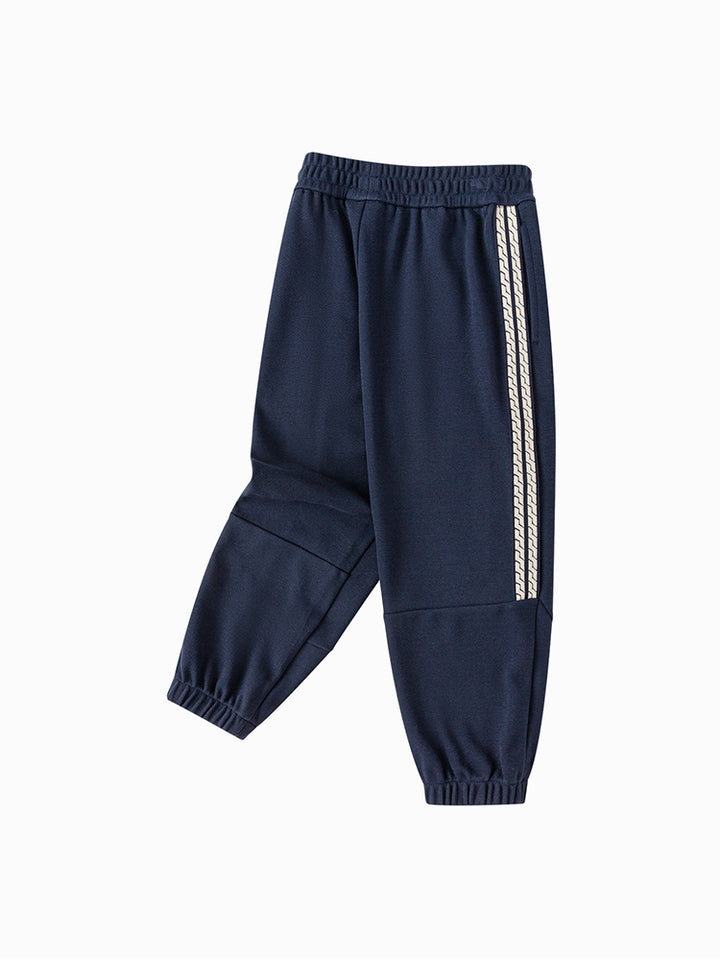 boy swetapants, decorated with lining details o the sides of both legs, comes with pockets and an elasticated waistband