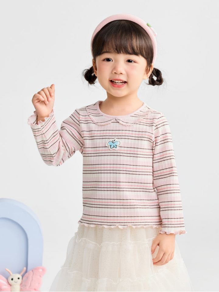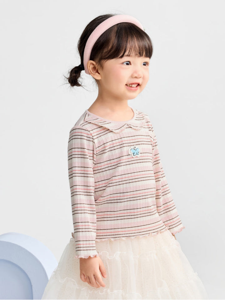 Girls' Striped Long Sleeve Top With Embroidery
