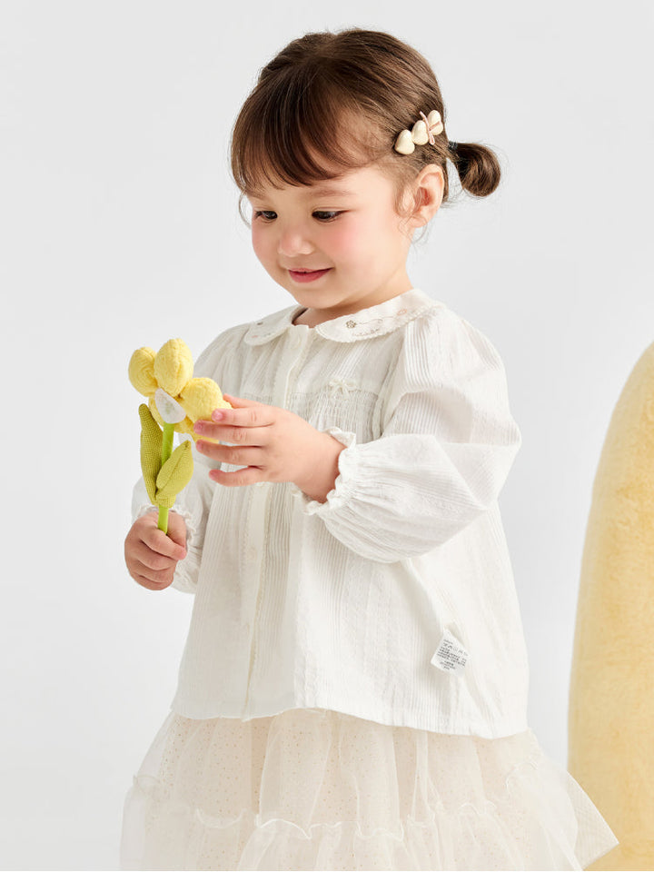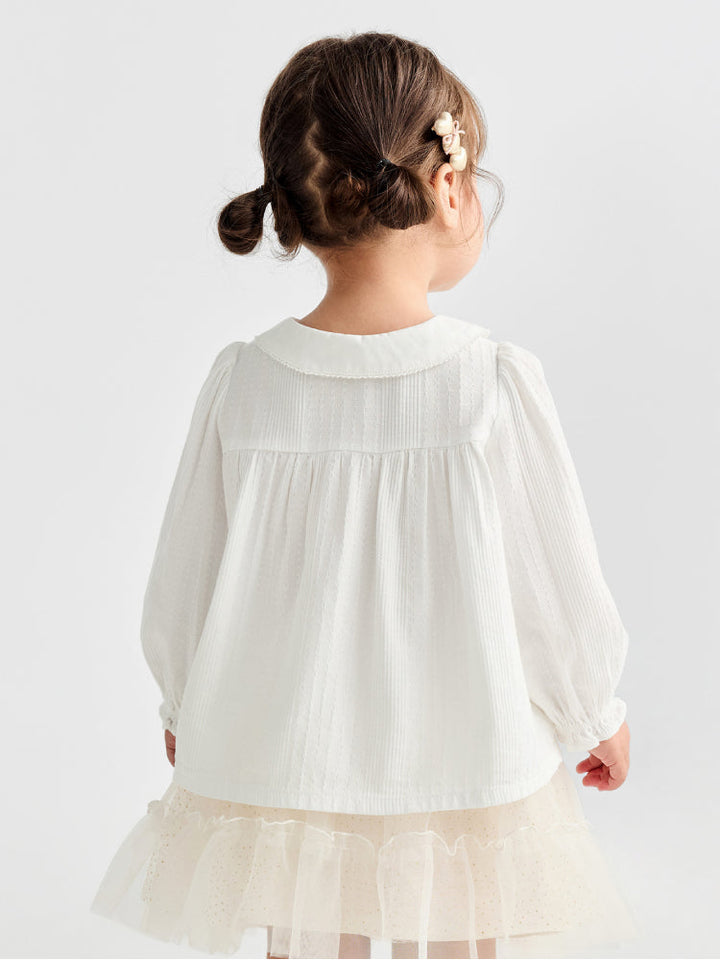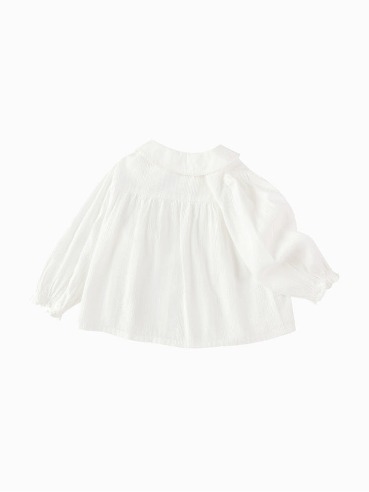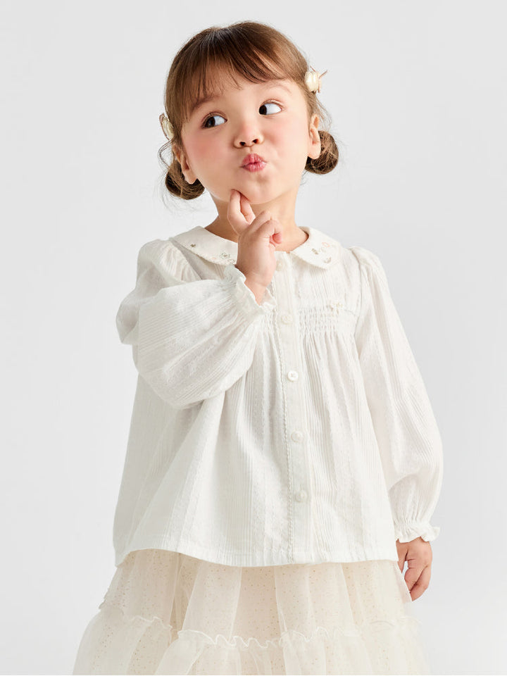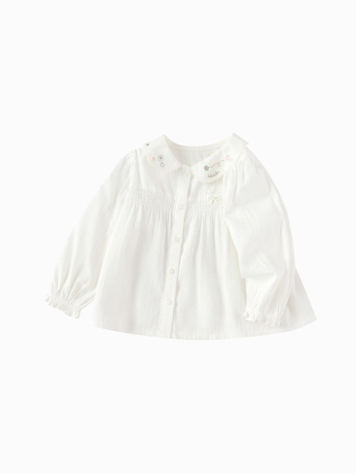 Girls' White Shirt With Embroidered Collar