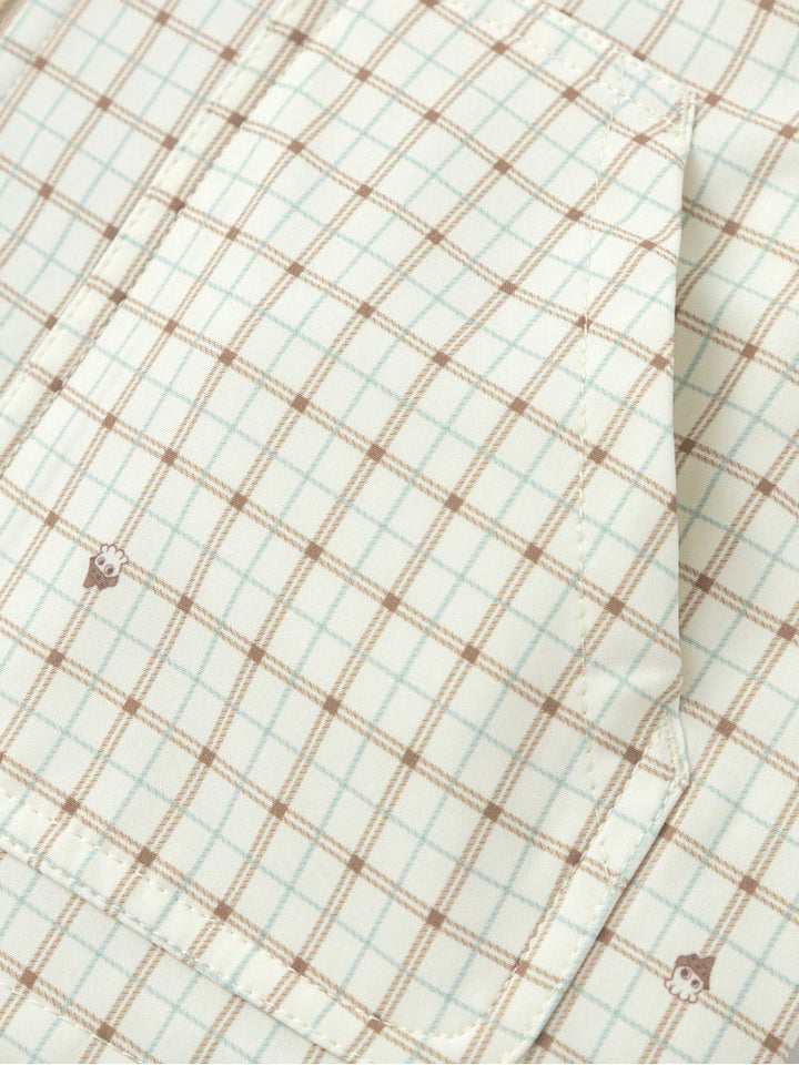 A casual plaid jacket featuring a smooth zip closure, large front pockets, and a corduroy yoke for added texture and style.