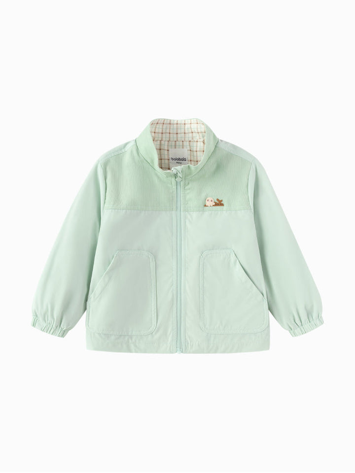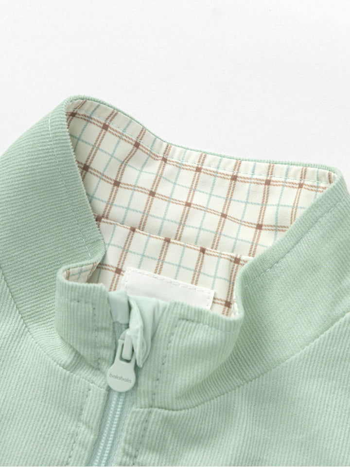 Boys' Solid Zip-Up Jacket With Corduroy Detail