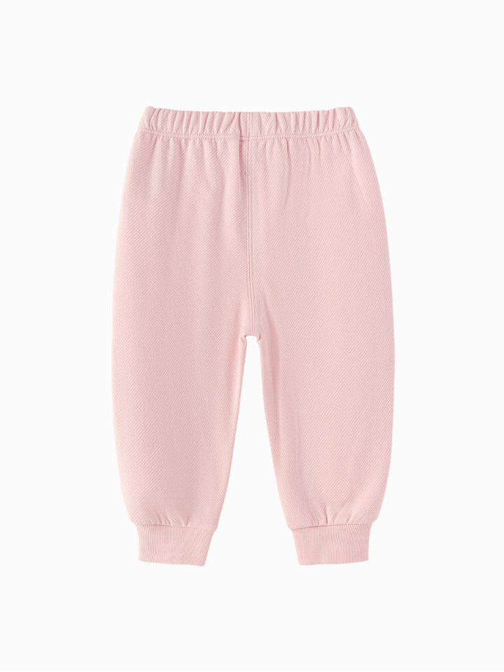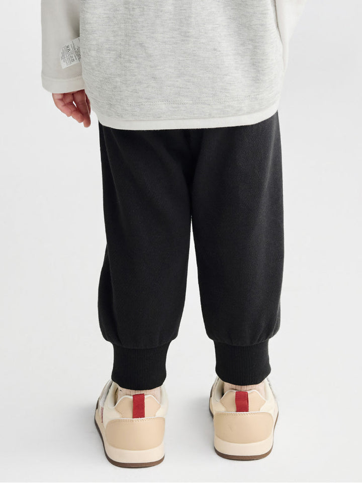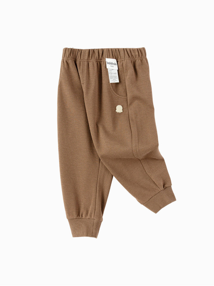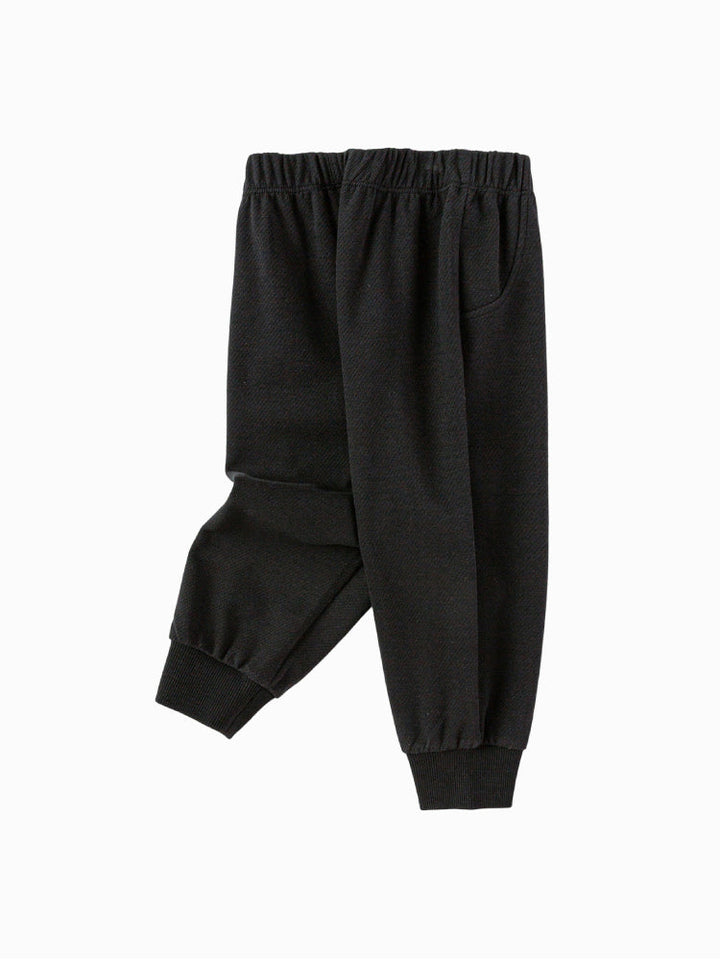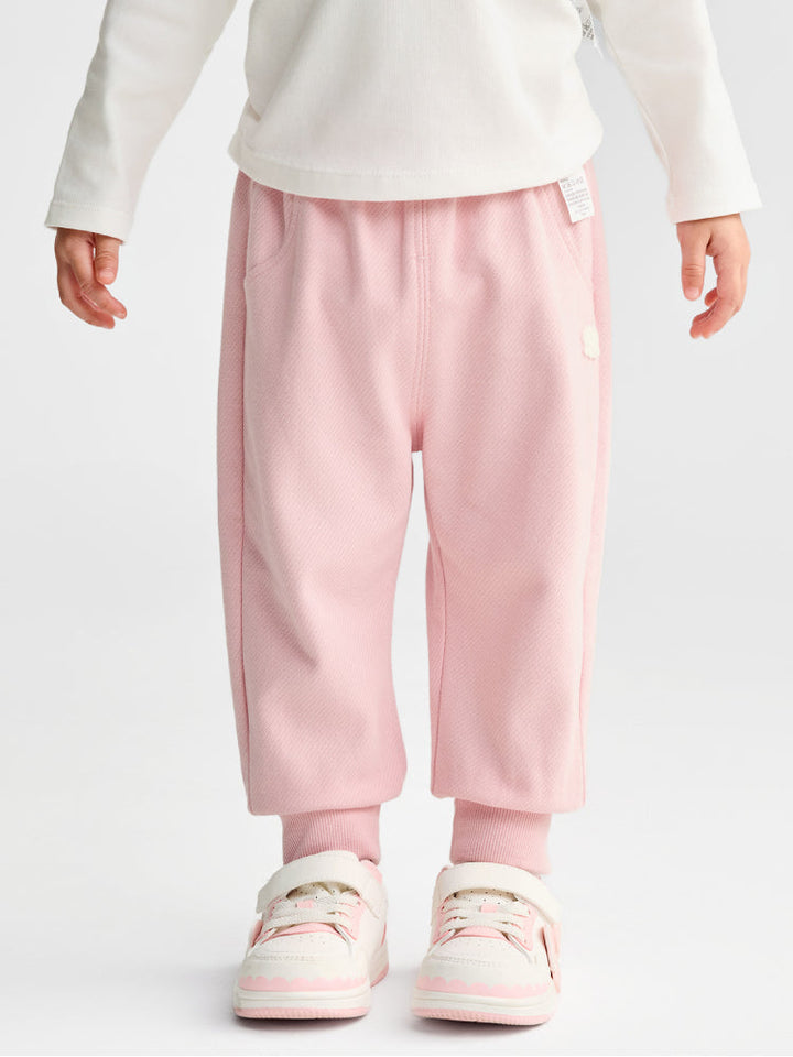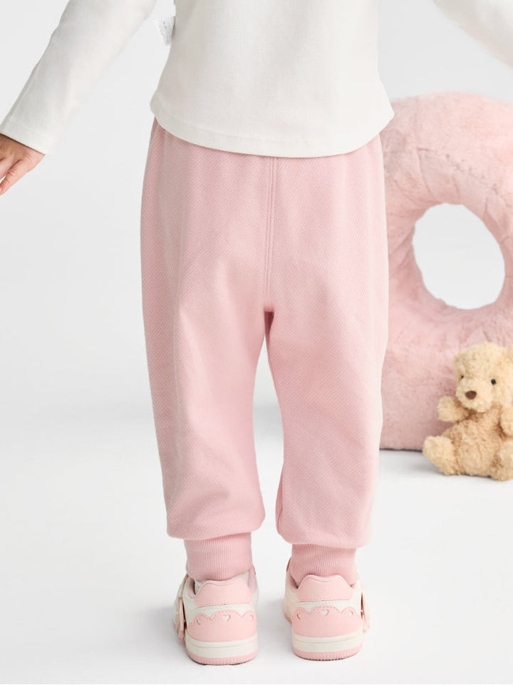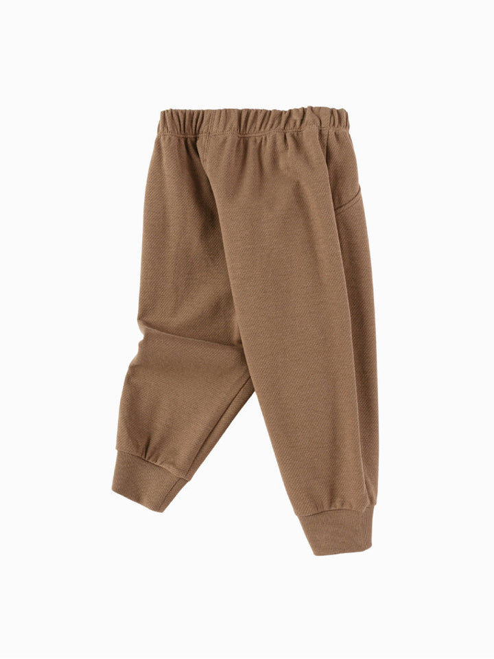 Jogger-style pants with a smooth textured finish, elasticated waistband, and cuffed hems for everyday comfort.