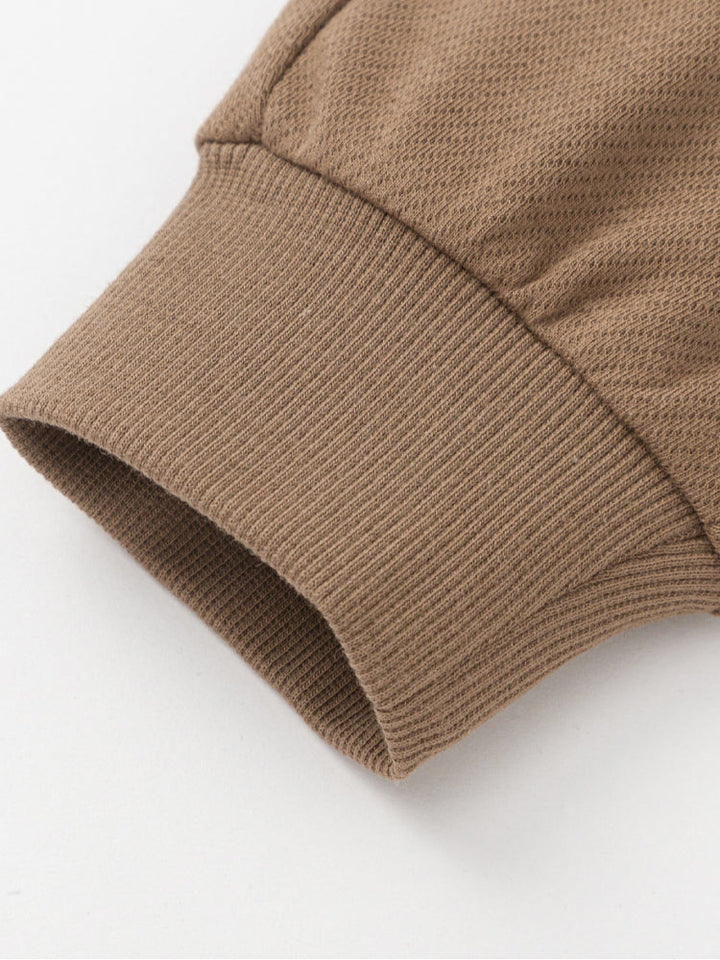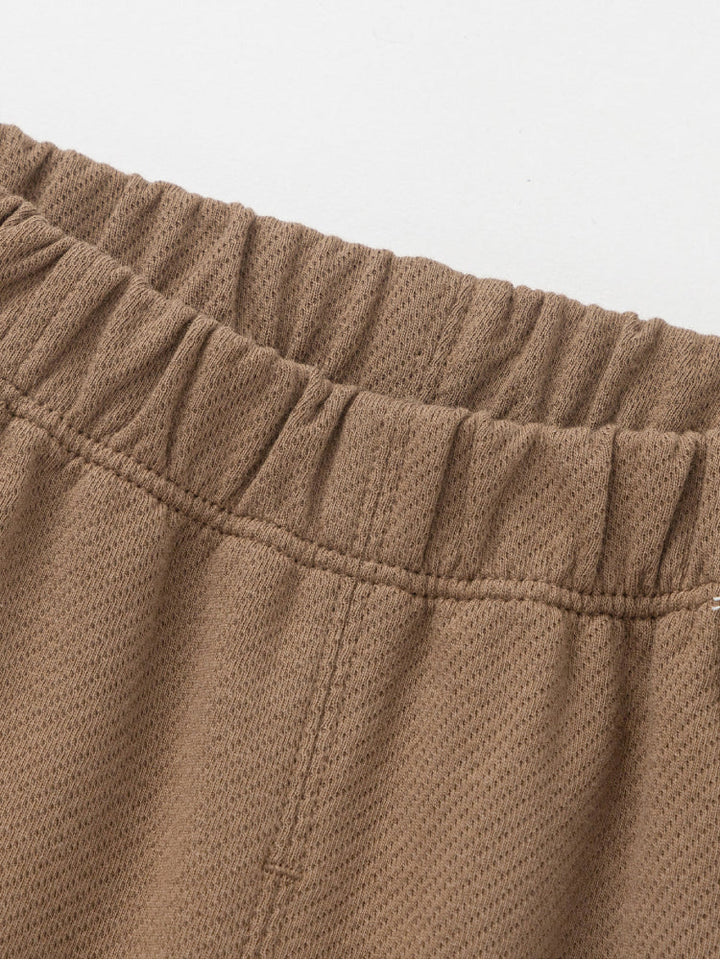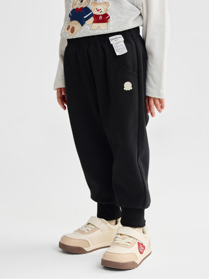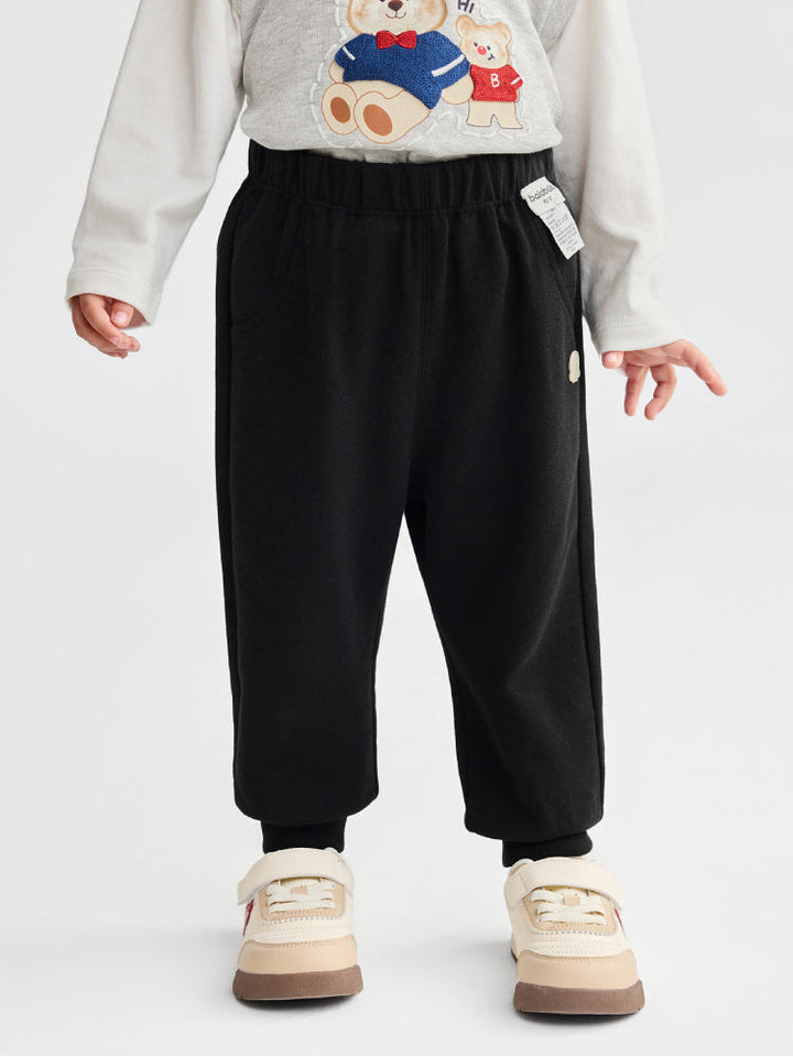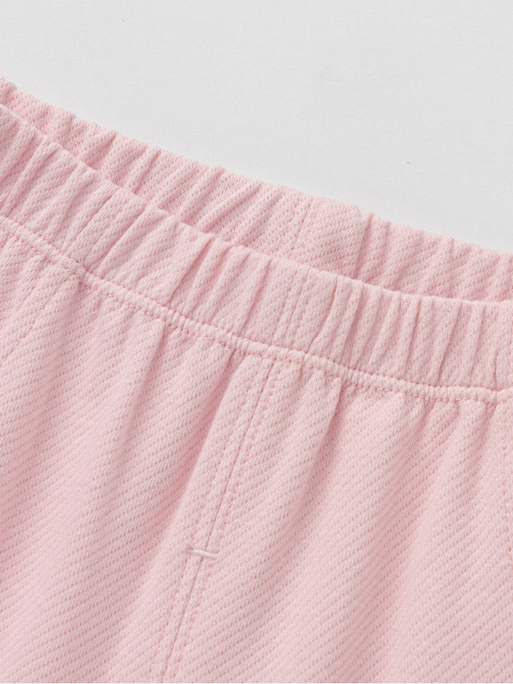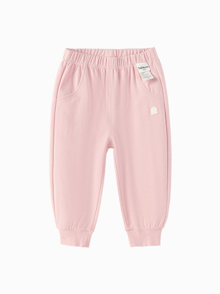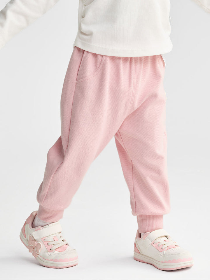 Jogger-style pants with a smooth textured finish, elasticated waistband, and cuffed hems for everyday comfort.