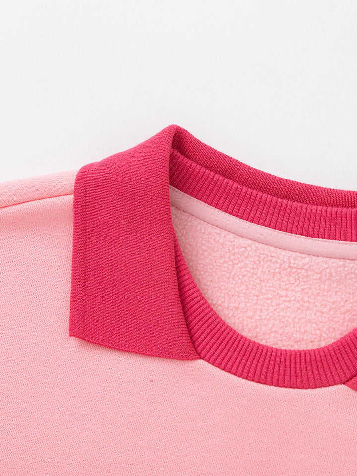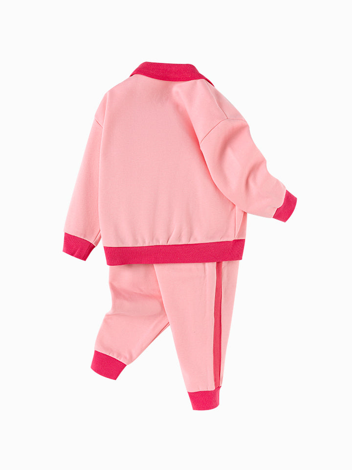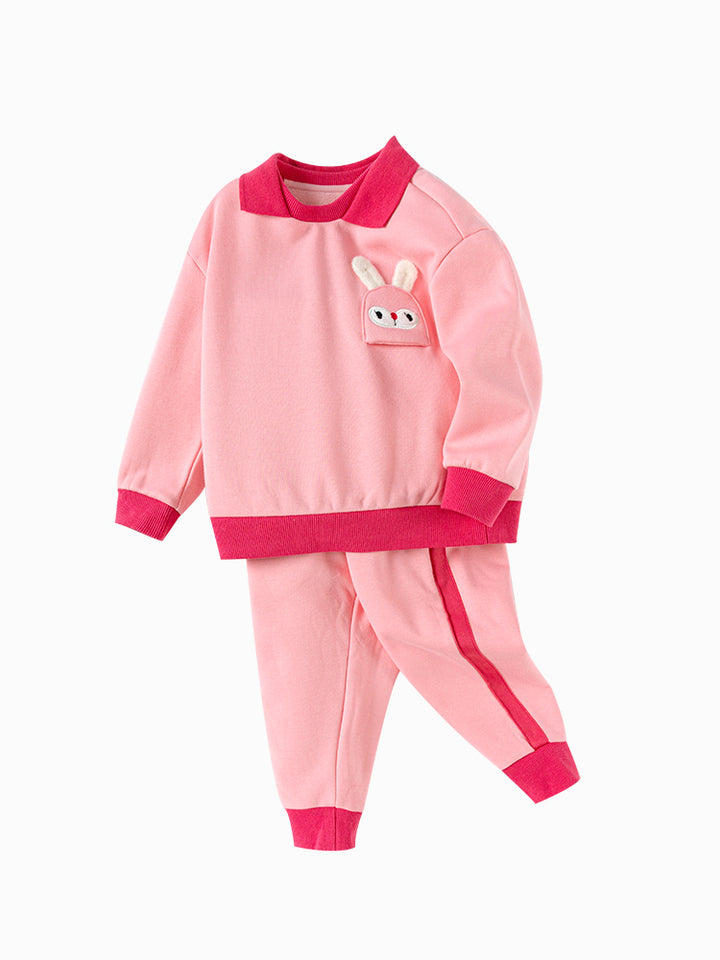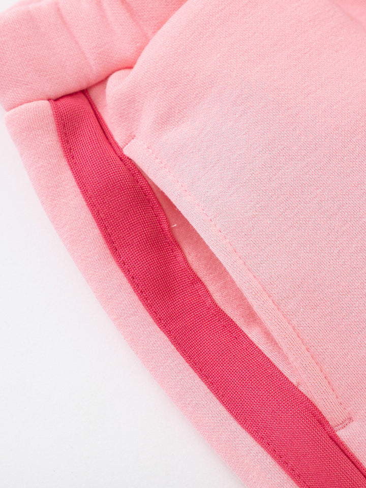 girl set of 2 pieces, a long sleeves casual sweatshirt decorated with patch detail on the front side, comes with a rounded shape neckline, and a casual sweatpants, decorated with lining details on the sides of both legs, comes with front pockets and with a comfy elasticated waistband