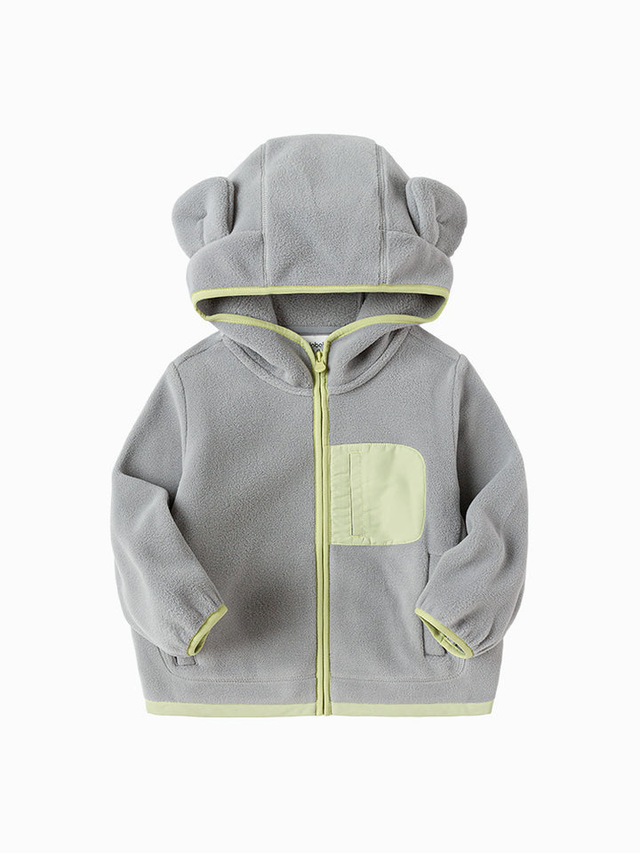 long sleeves casual hoodie jacket, decorated with contrast colored detailed pattern, comes with pockets on the front side, zipper for closure on the front side and an attached hoodie collar