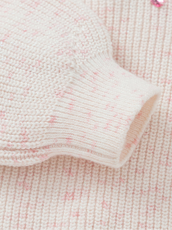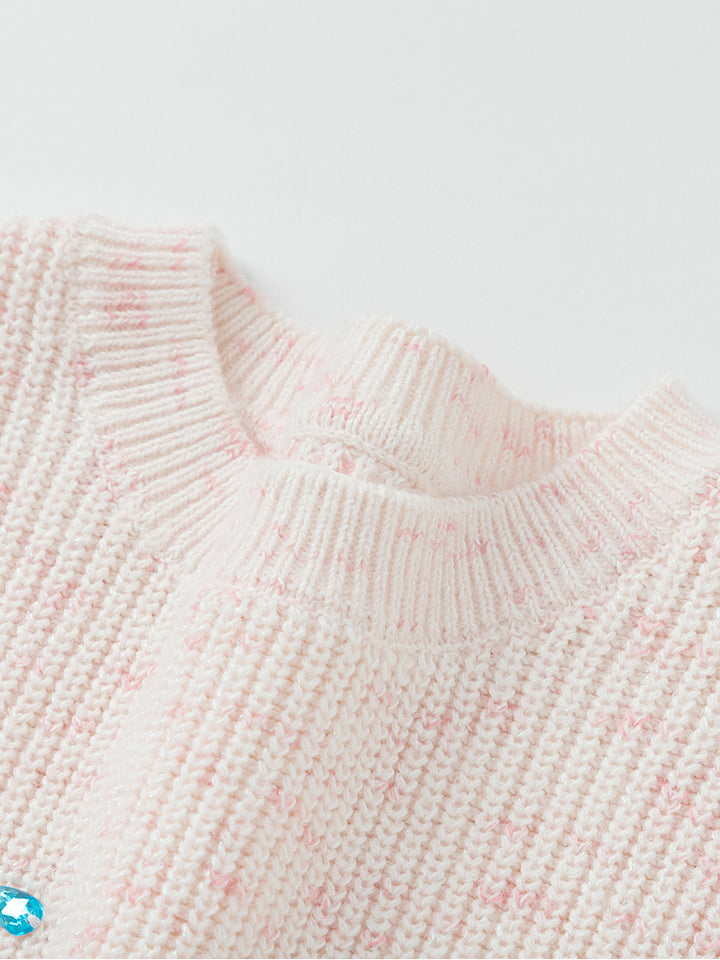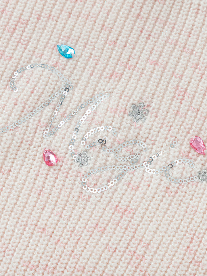 long sleeves knitted pullover, decorated with a front sequin print, comes with a rounded neckline