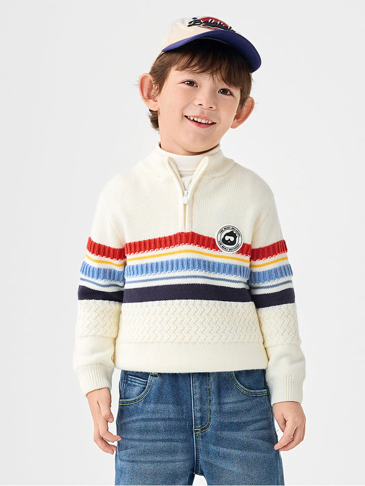 Boys' Knitted Pullover With Colored Linings