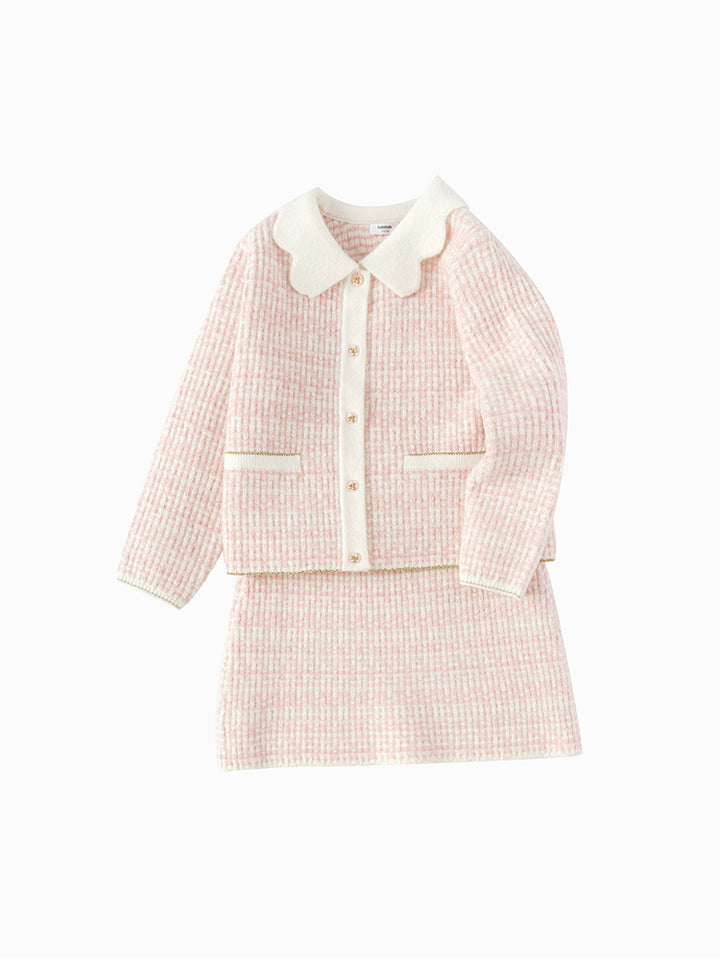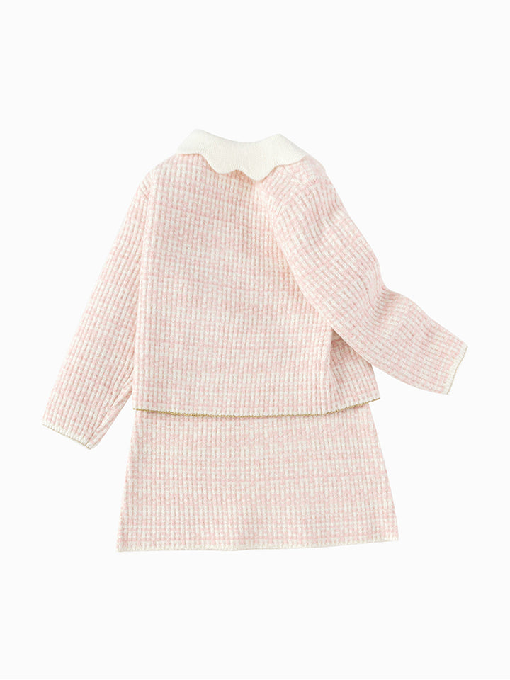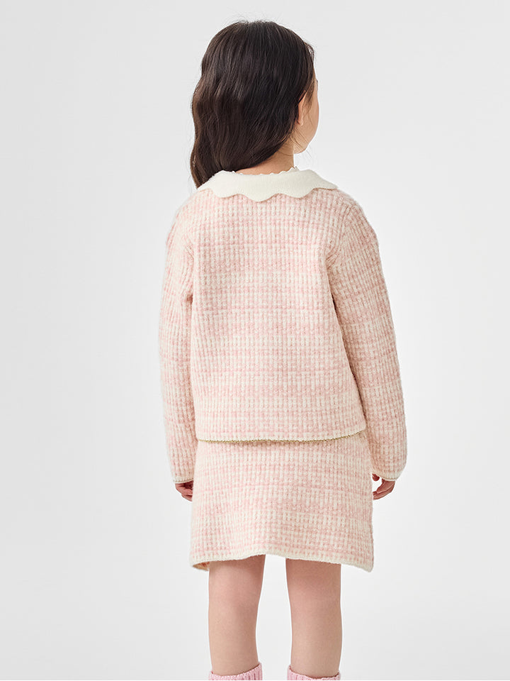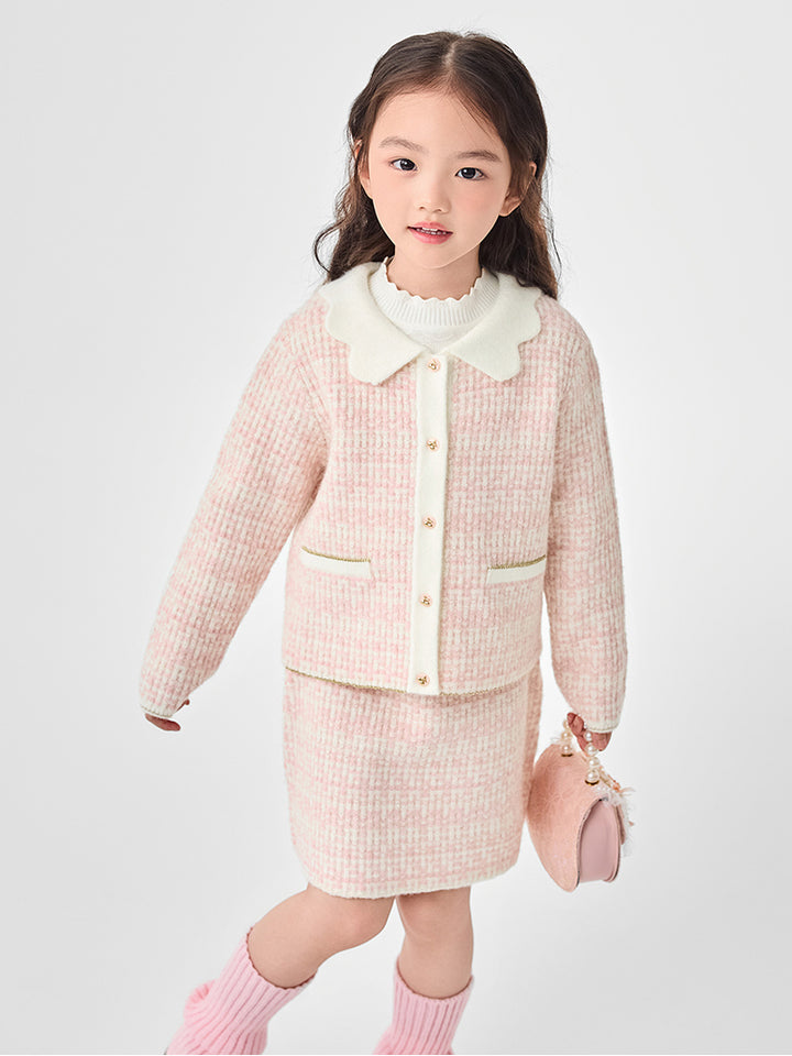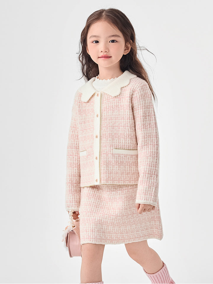 Girls' Contrast Knitted Cardigan Set