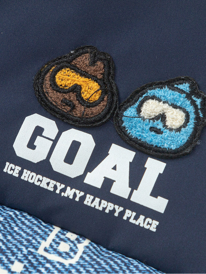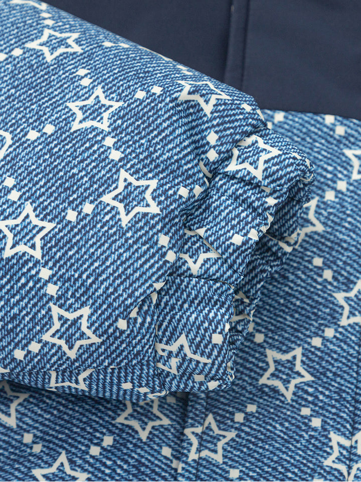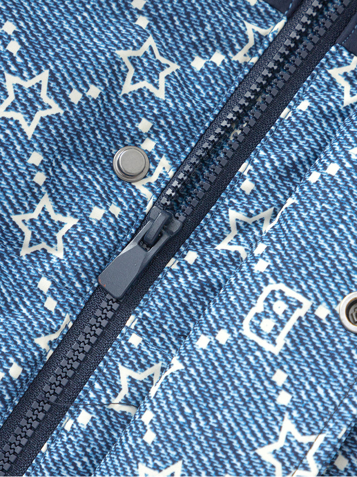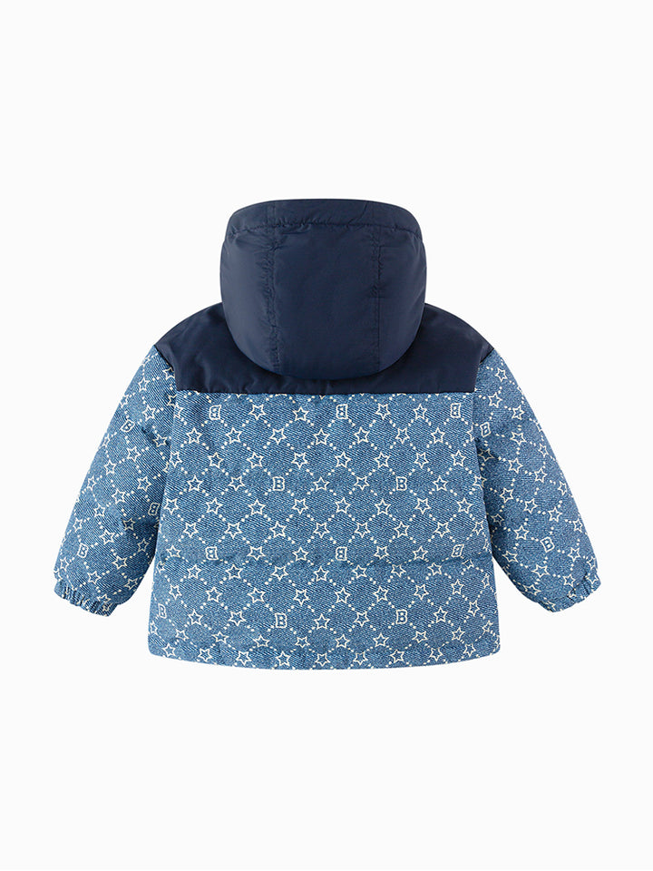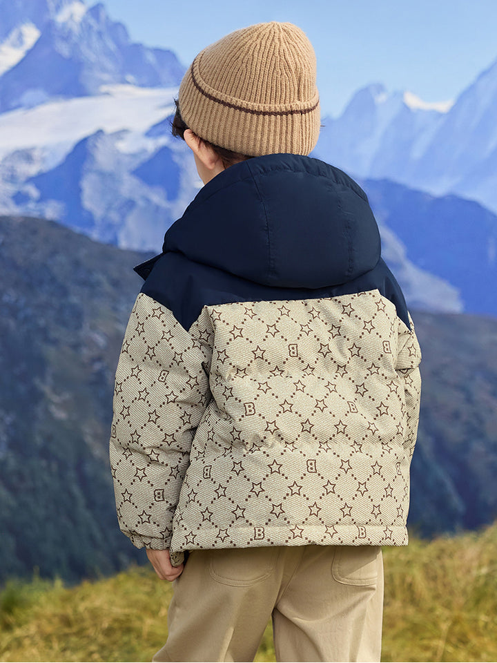 long sleeves winter coat, decorated with a printed pattern, comes with front zipper for closure, front pockets and an attached hoodie collar