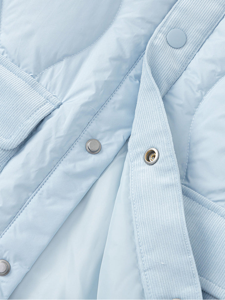 long sleeves winter coat, in a solid mono colored pattern decorated with a textured pattern fabric, comes with front buttons for closure, front pockets and a classic collar
