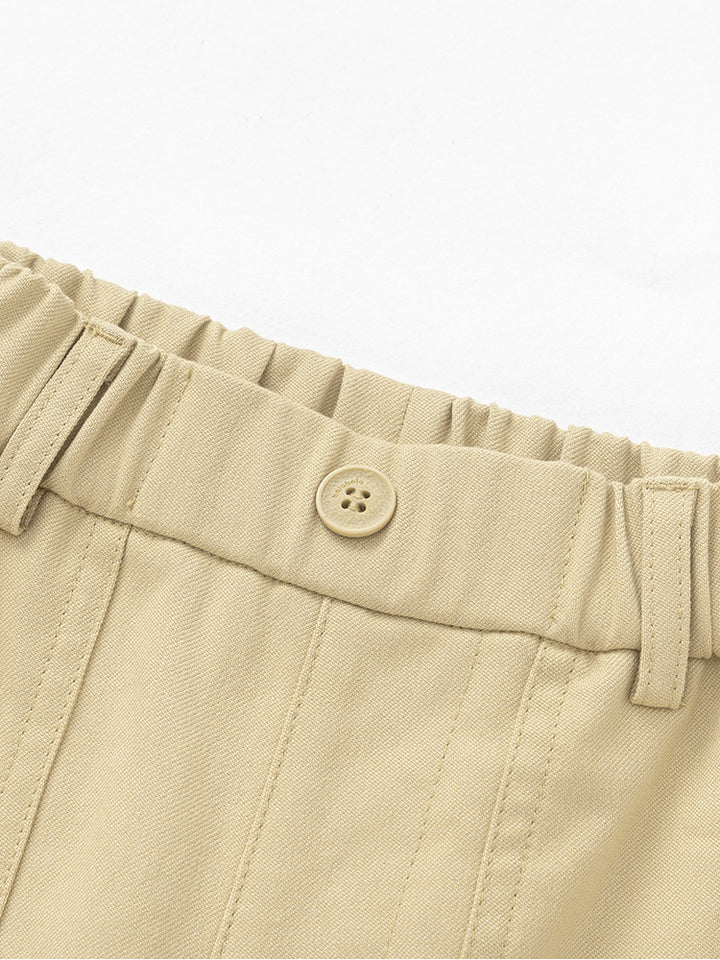 casual pants in a solid mono colored pattern, comes with front and back pockets and with a comfy elasticated waistband