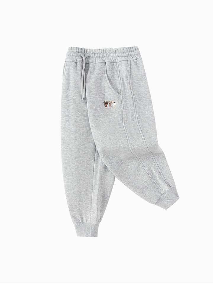 casual sweatpants decorated with front emboirdery, comes with front and back pockets, a comfy elasticated waistband and an adjustable drawstring on waistline