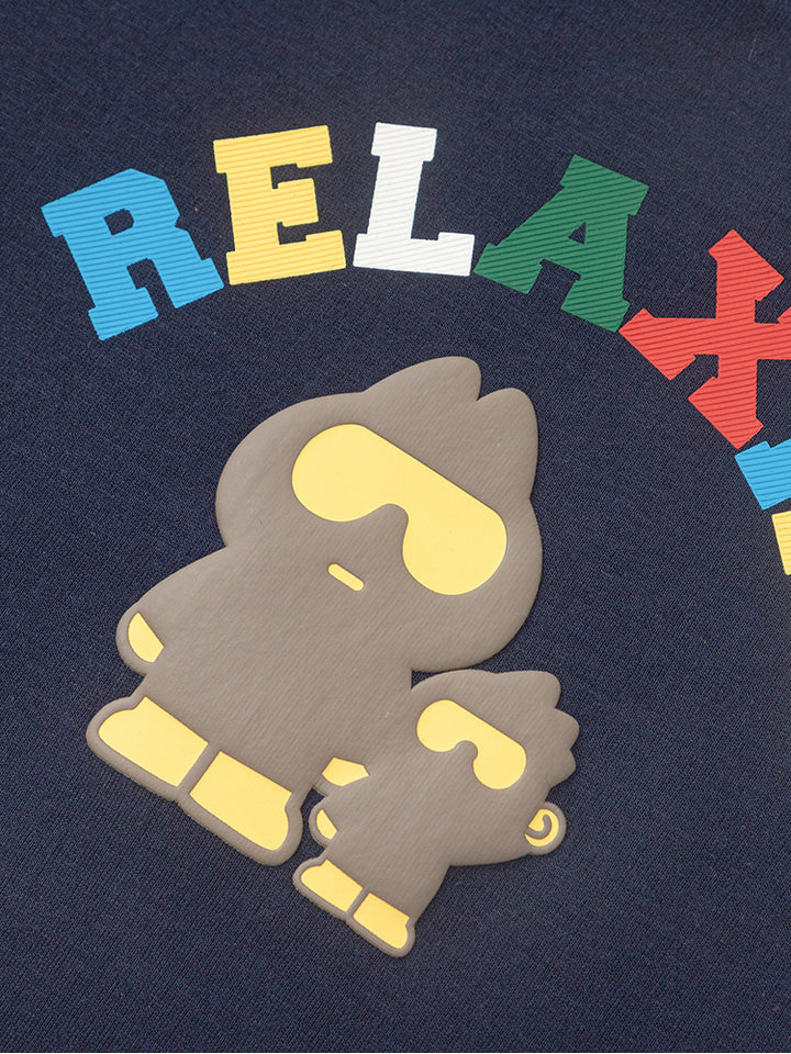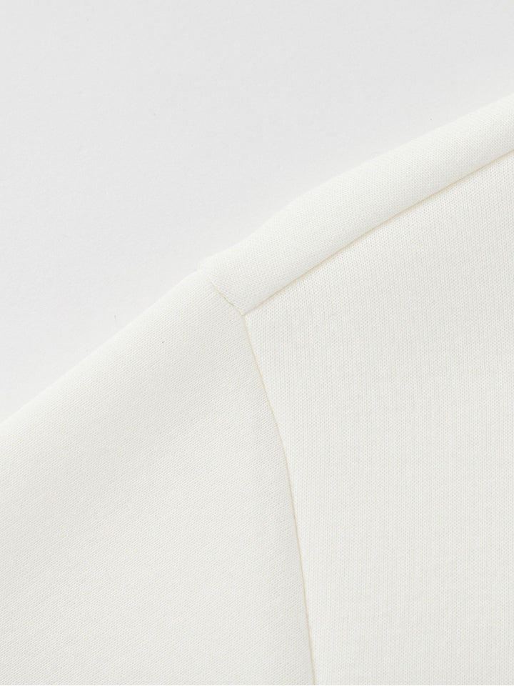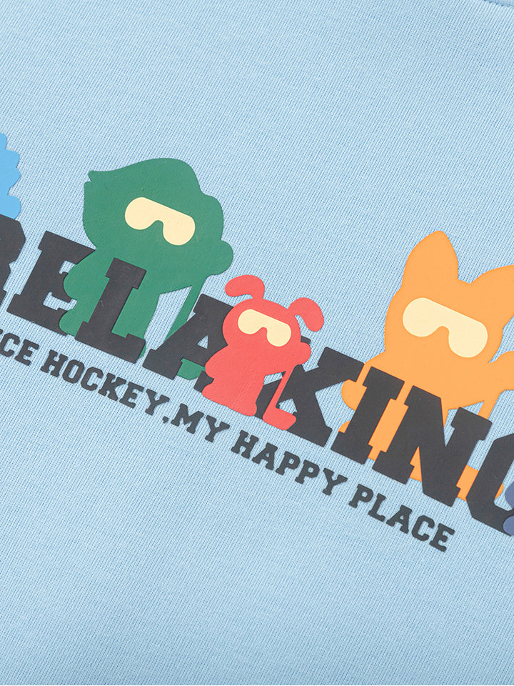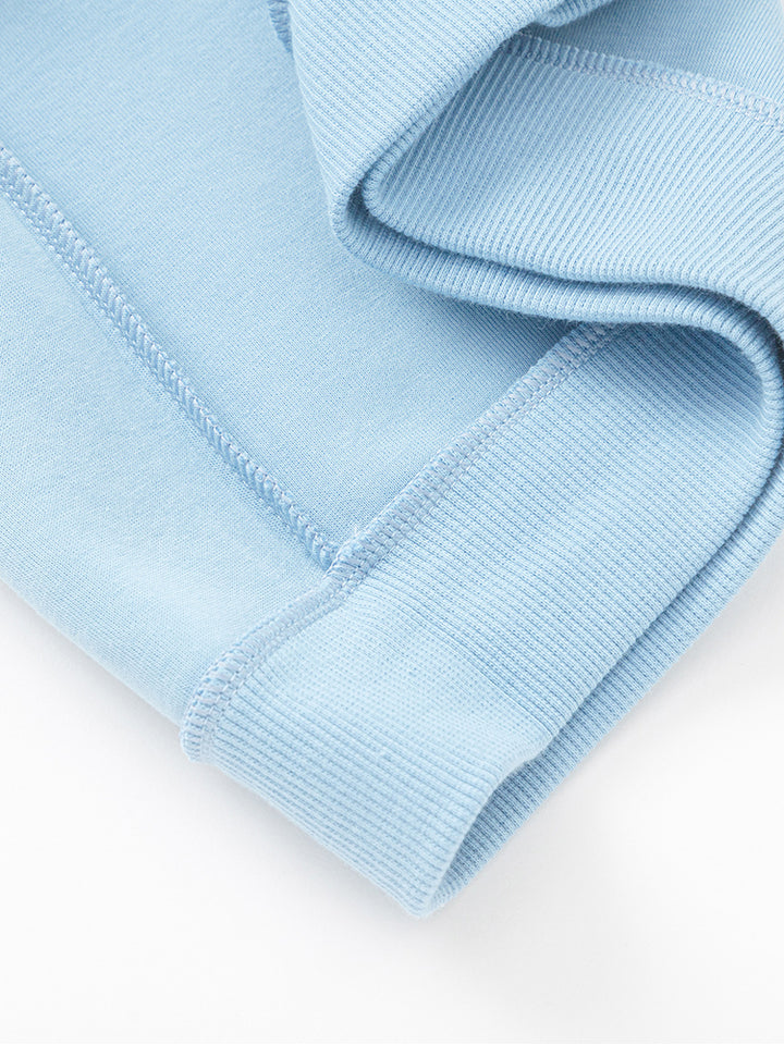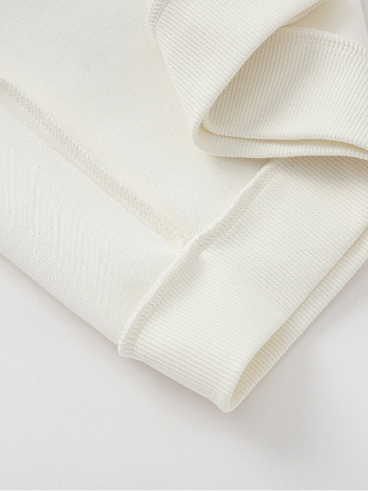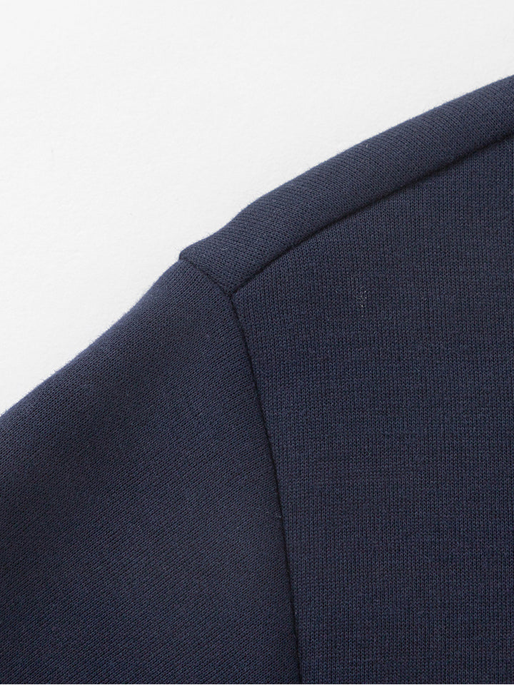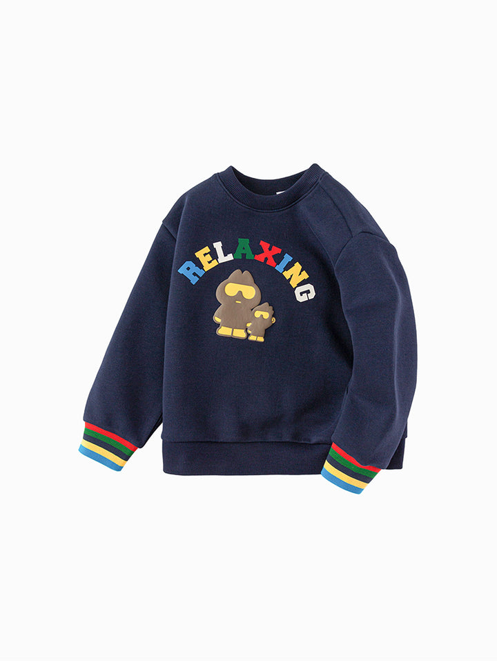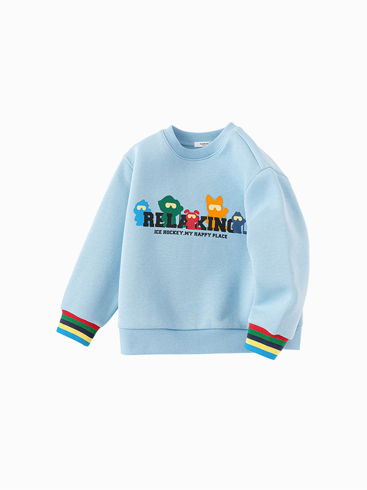 long sleeves sweatshirt, decorated with a knitted print on the front side and colored linings on sleeves, comes with a rounded shape neckline