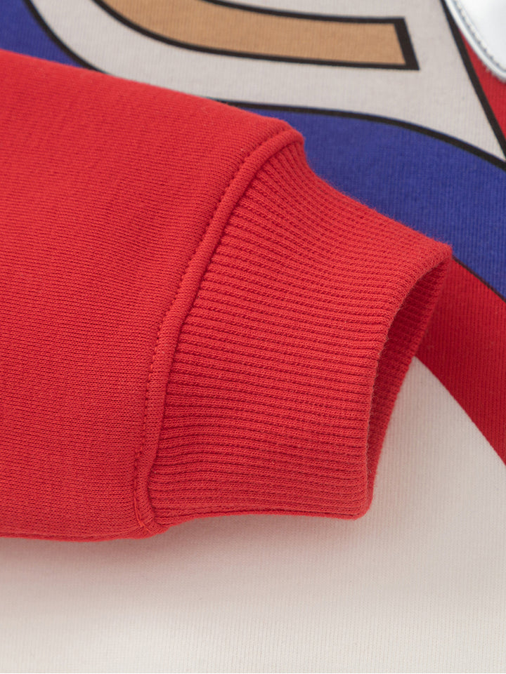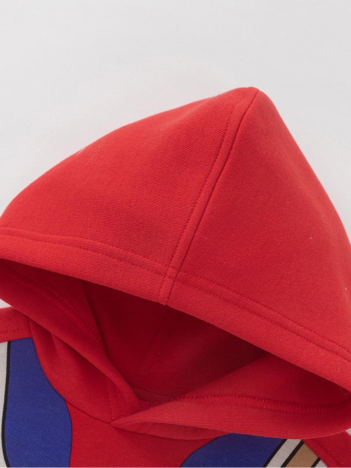 long sleeves casual hoodie, decorated with colored pattern and front print, comes with an attached hoodie collar