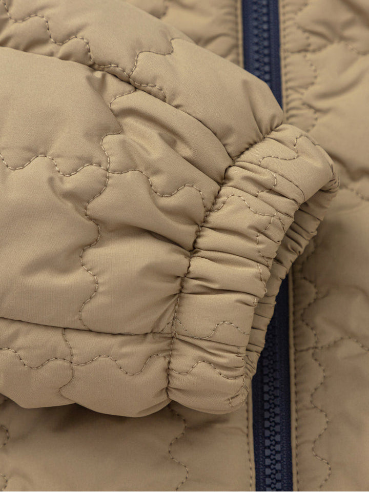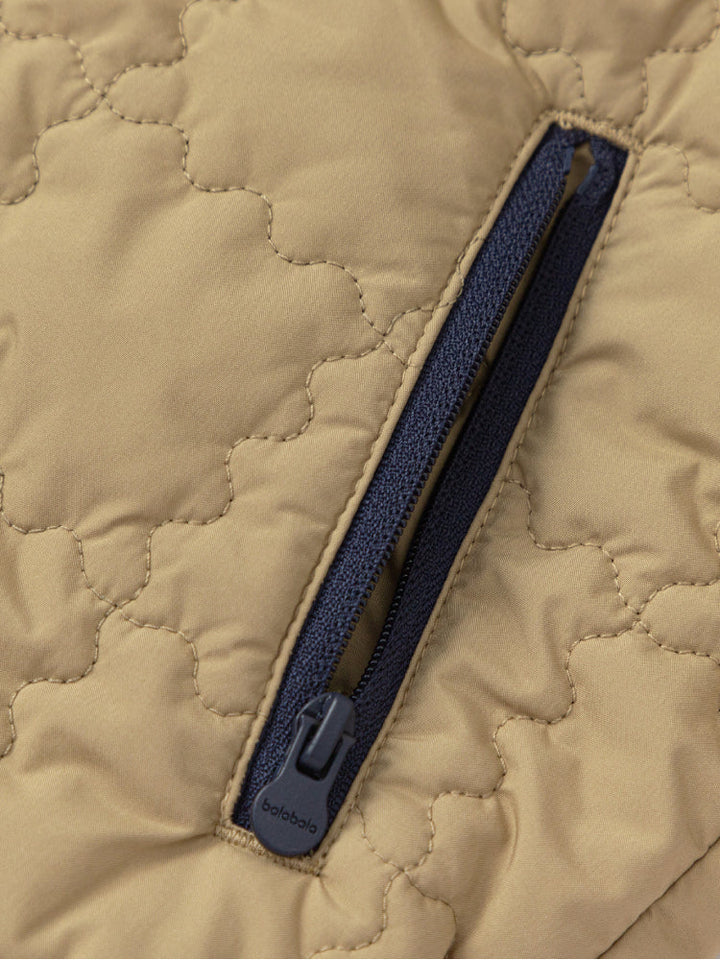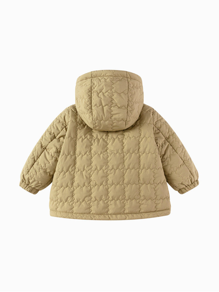 A warm quilted jacket for kids, designed with a soft hood and full front zipper. Features practical side pockets and lightweight padding for extra comfort during colder days.
