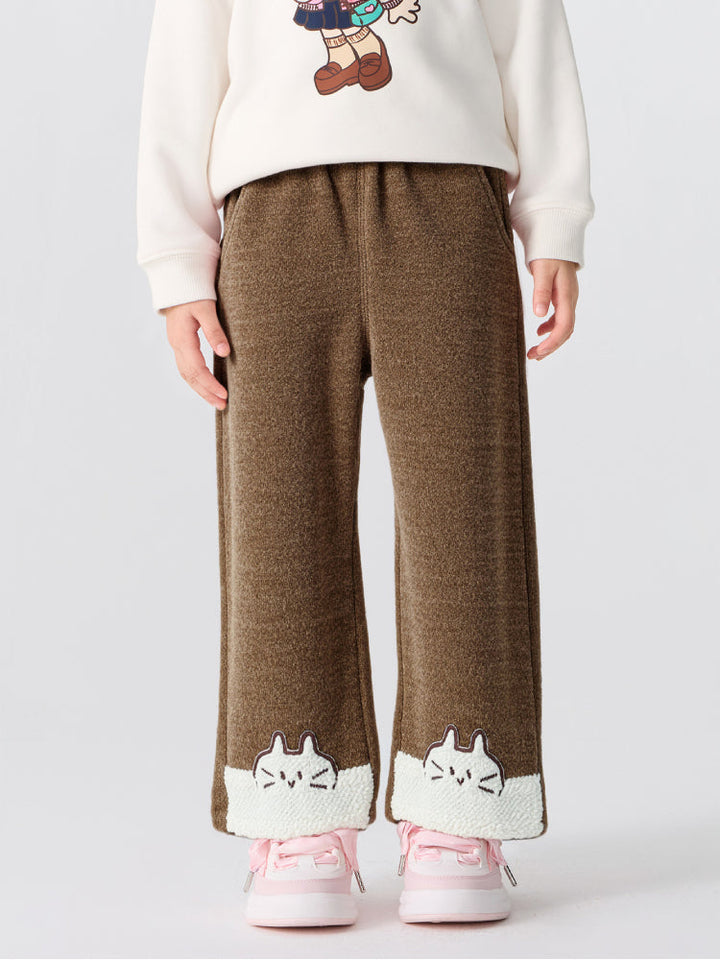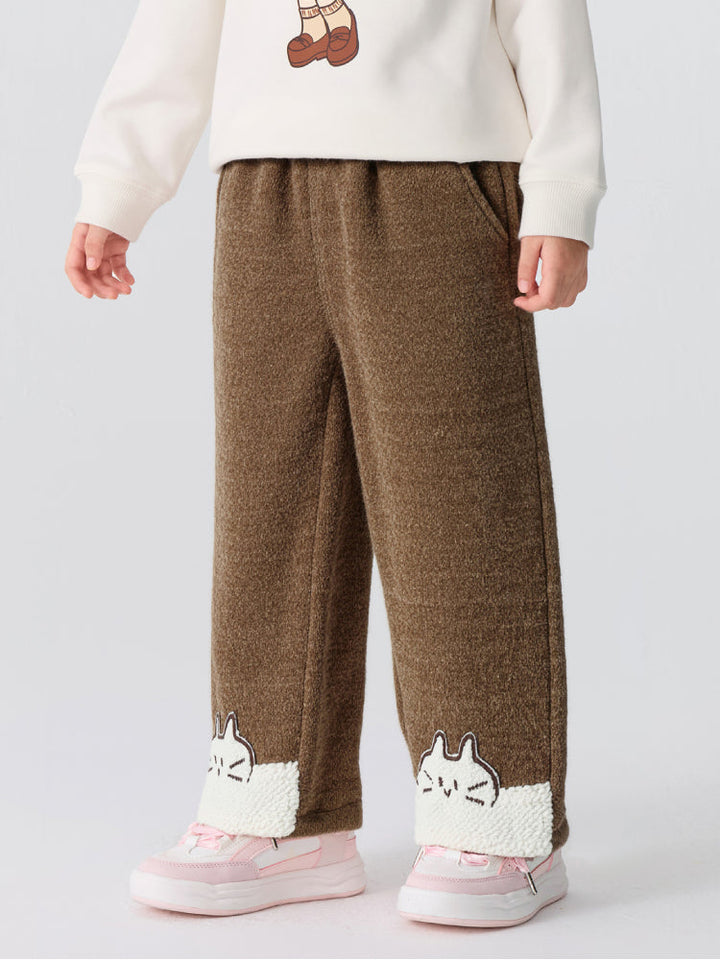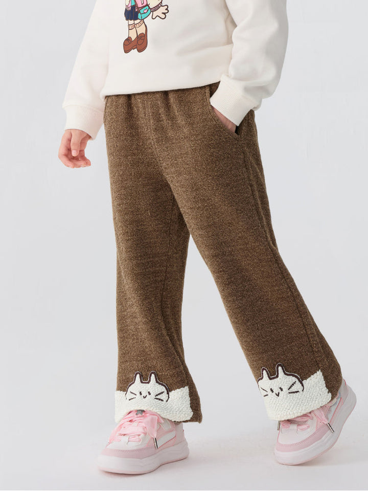 Girls' Fleece Pants with Cat Patch Hem