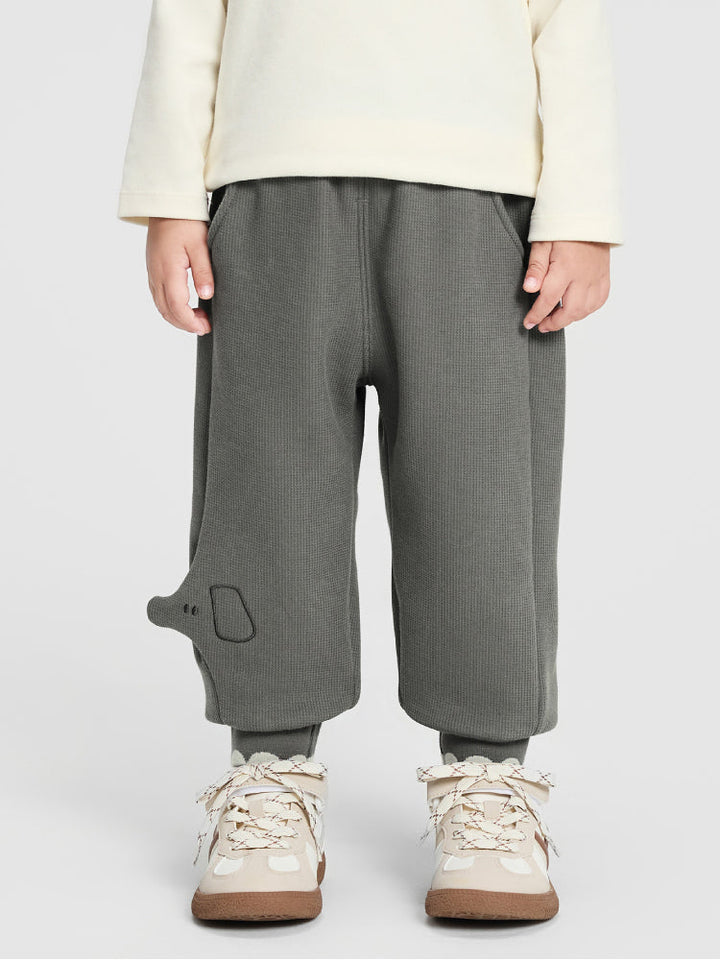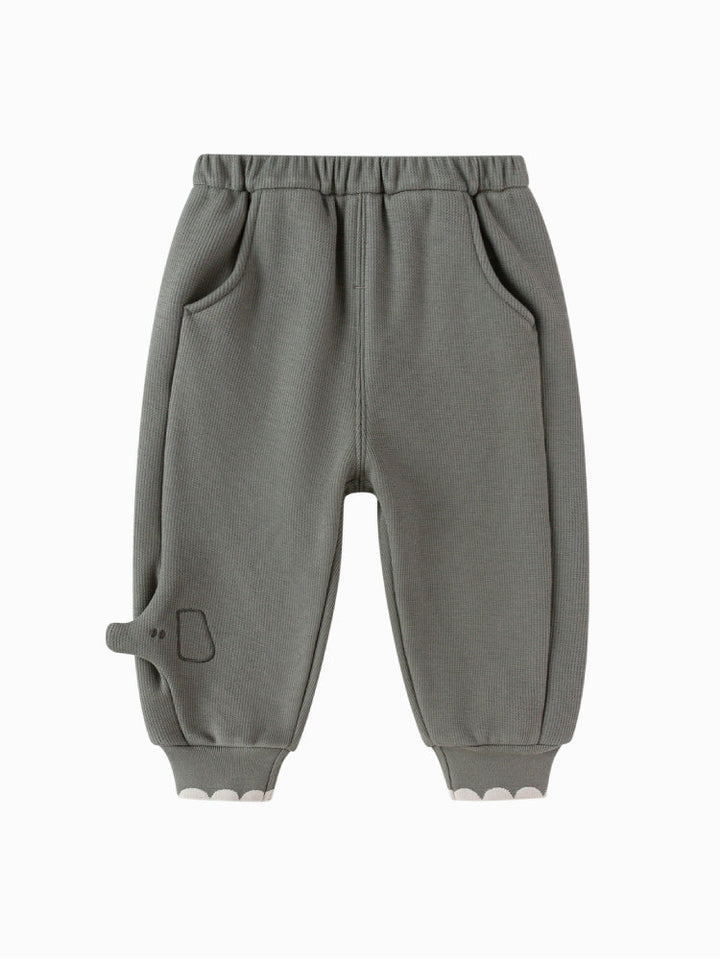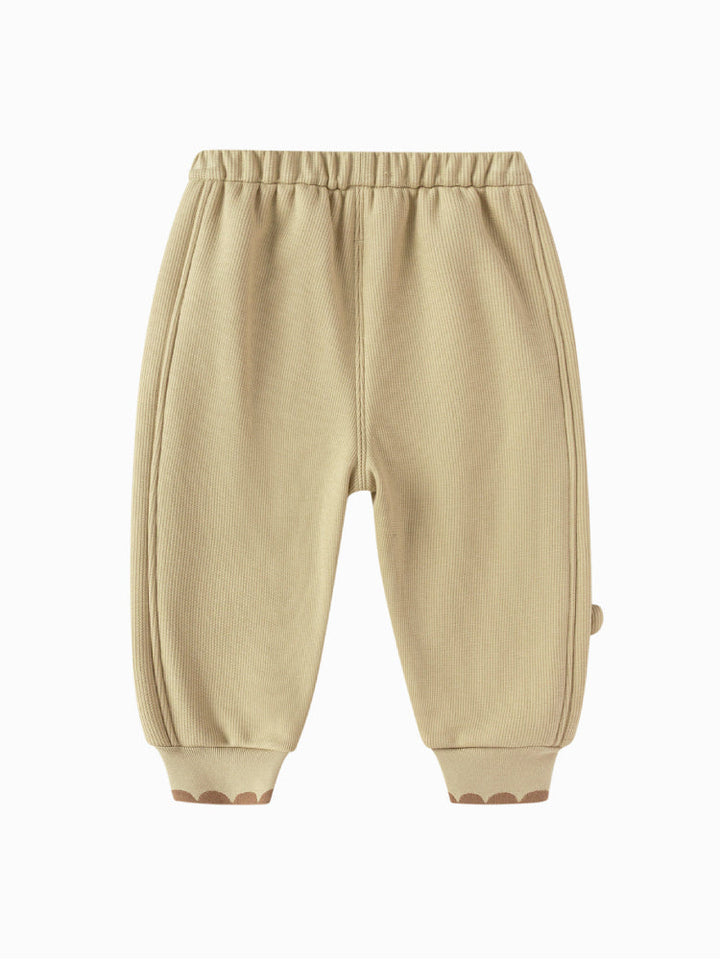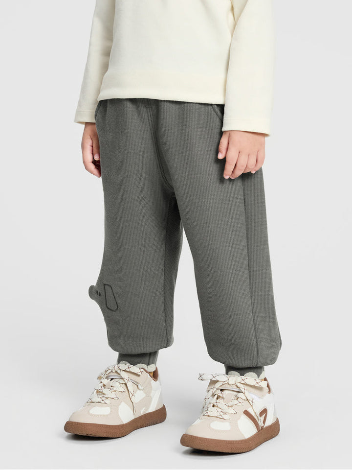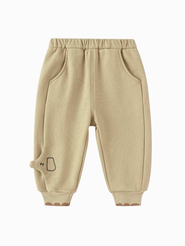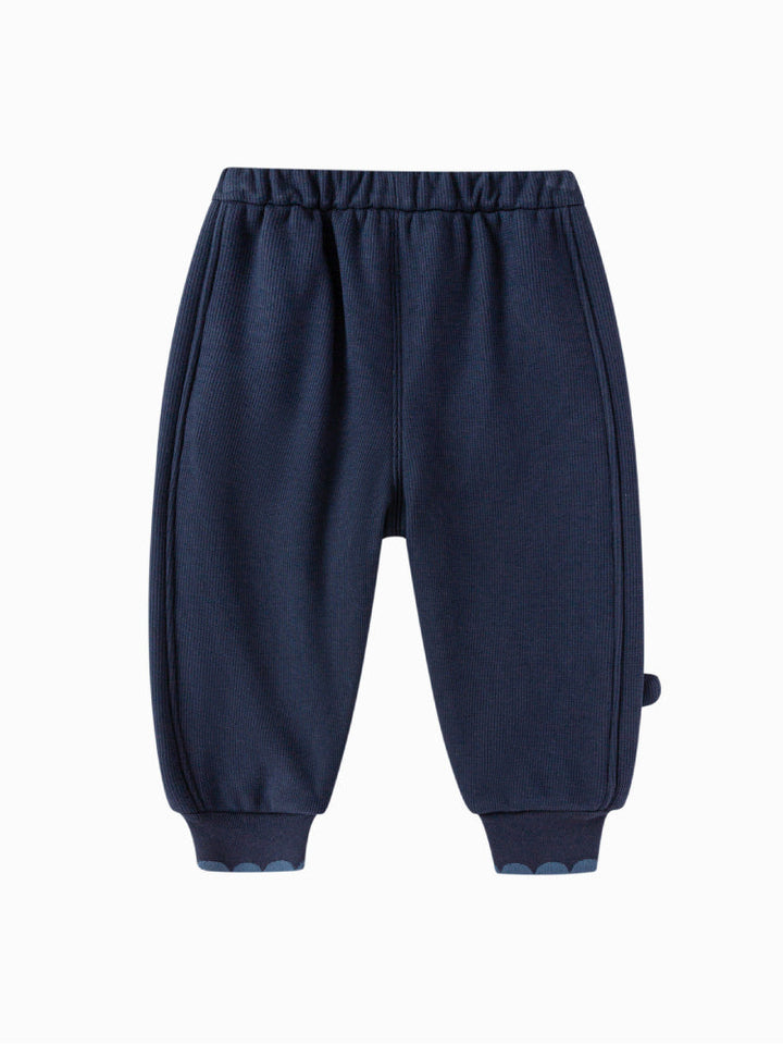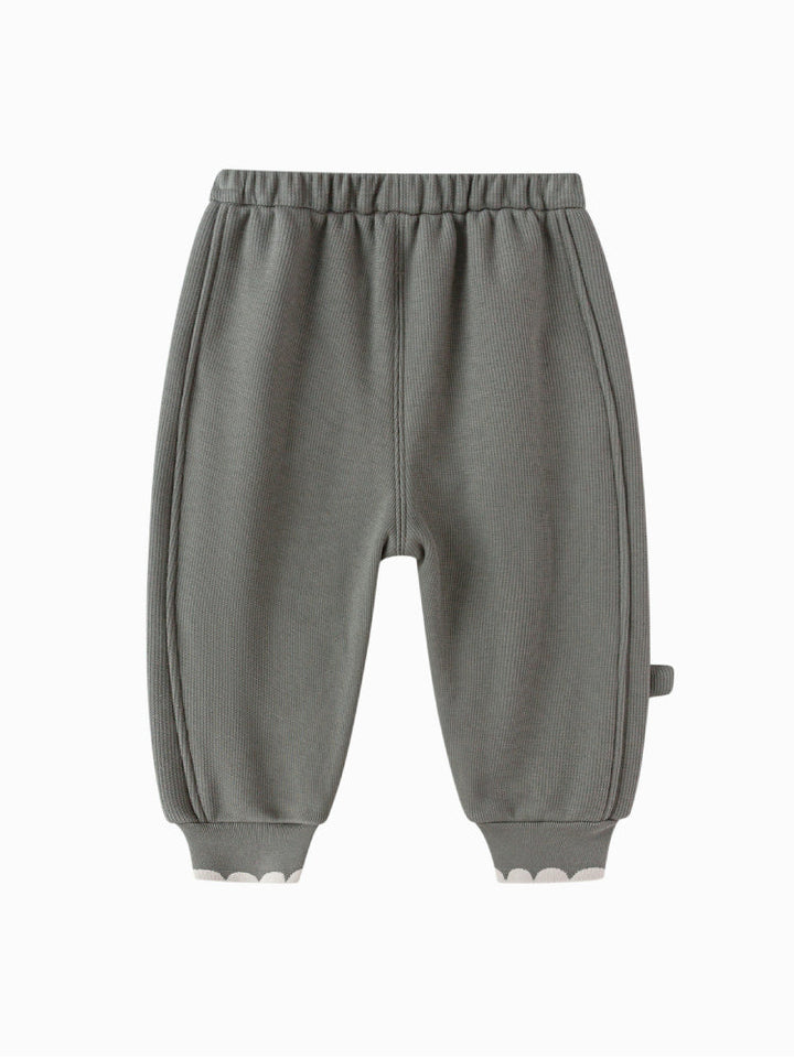Soft jogger pants for kids featuring an elastic waistband and ribbed cuffs for a comfortable fit. Designed with side and hem details that add a playful touch to everyday wear.