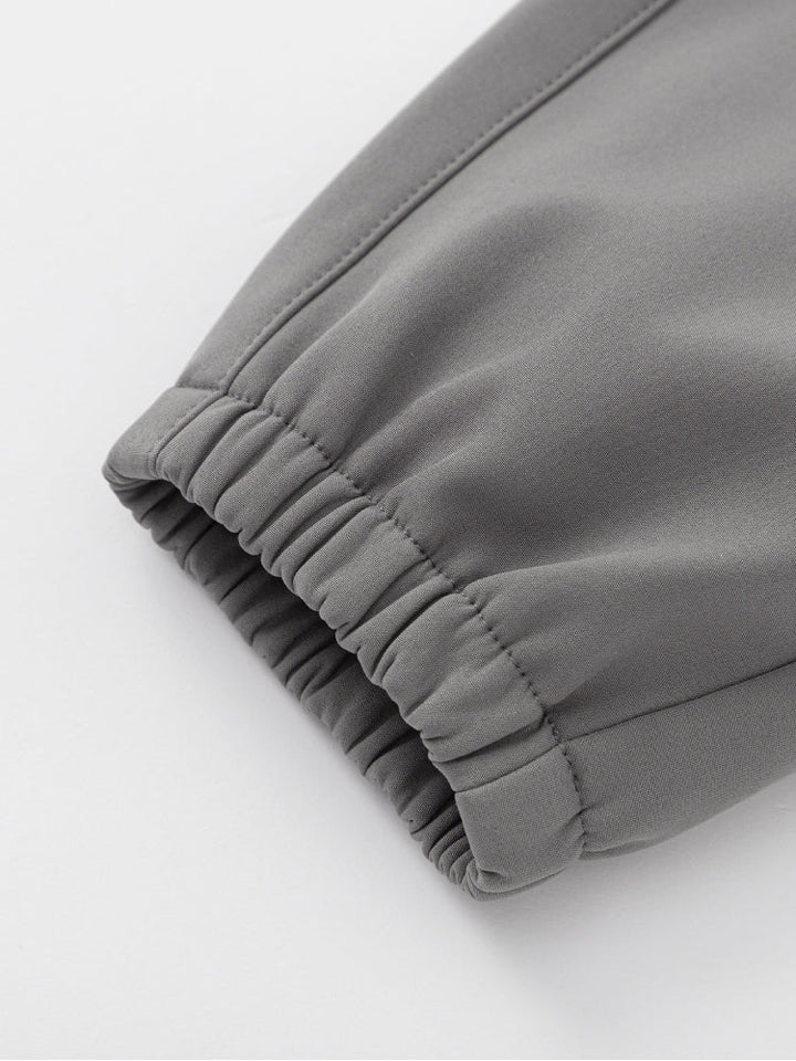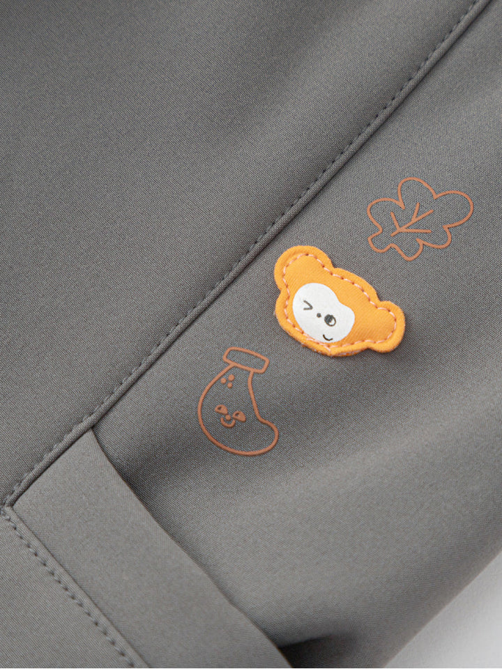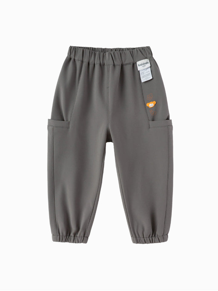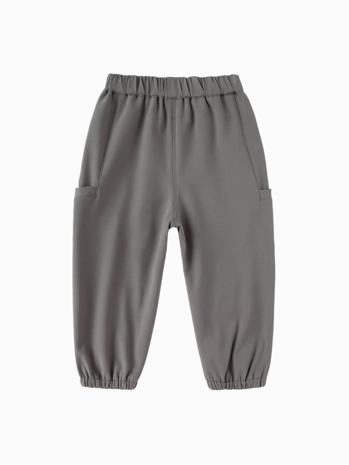 Comfortable jogger-style pants for kids, featuring an elastic waistband and gathered cuffs for a snug fit. Designed with practical side pockets and cute embroidered details on the side for a playful touch.