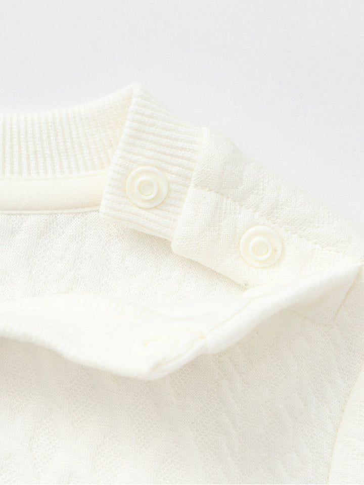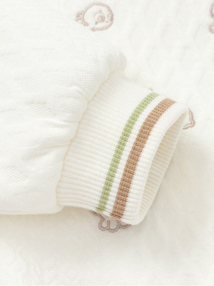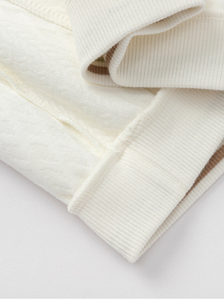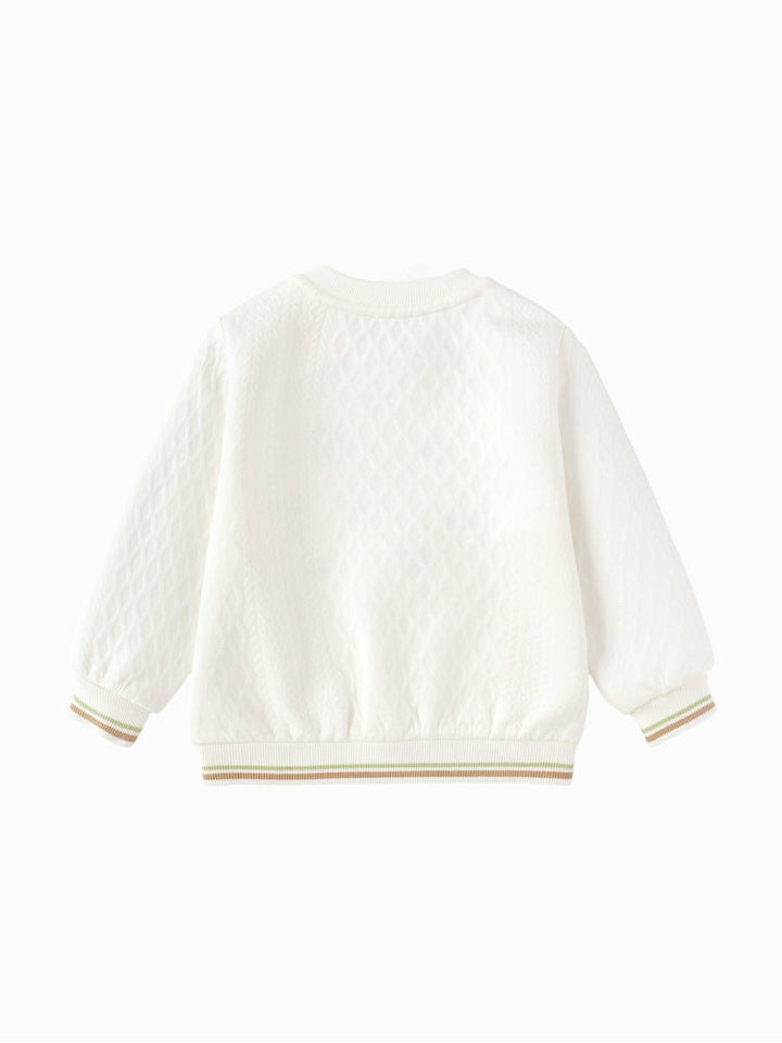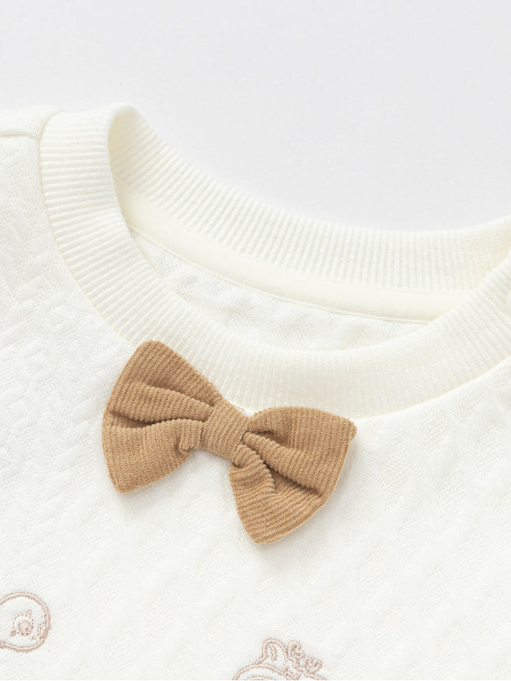 Soft kids sweatshirt featuring a quilted texture with playful embroidered motifs and a decorative front bow. Designed with long sleeves, ribbed cuffs, and hem for a cozy and stylish fit, perfect for daily wear.