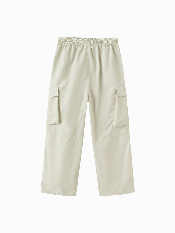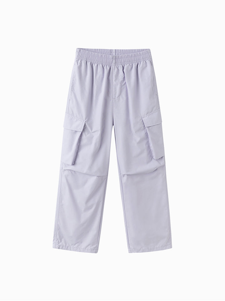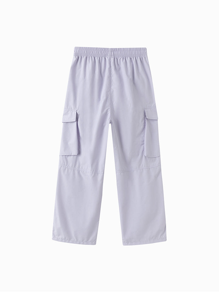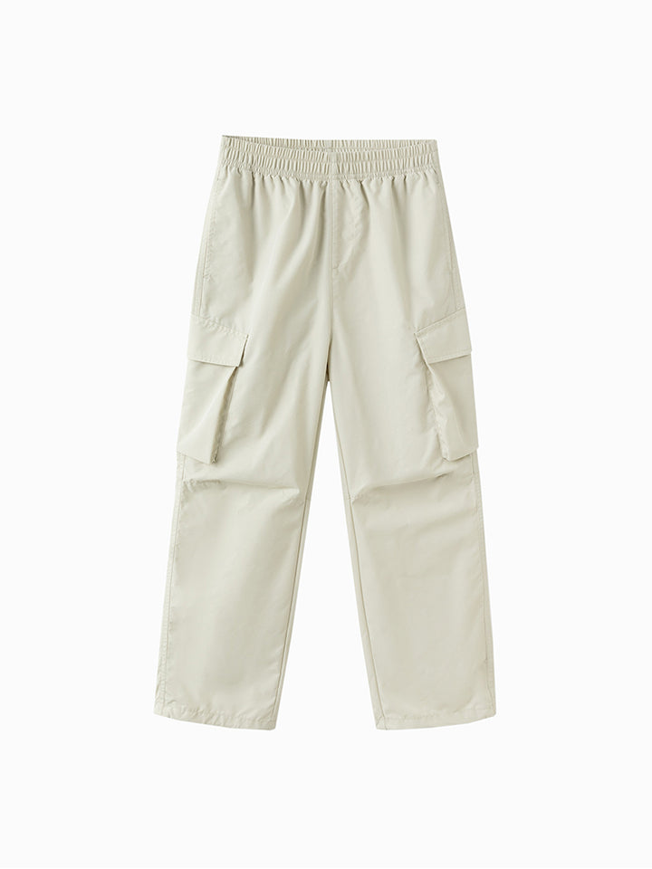 casual pants in a solid mono colored pattern, comes with front and side pockets and an elasticated waistband