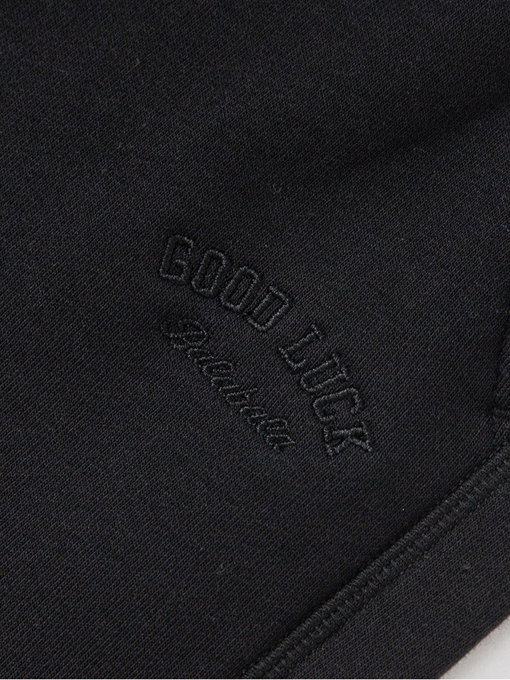 casual sweatpants decorated with a small embroidery on the front side, comes with front pockets and an elasticated waistband