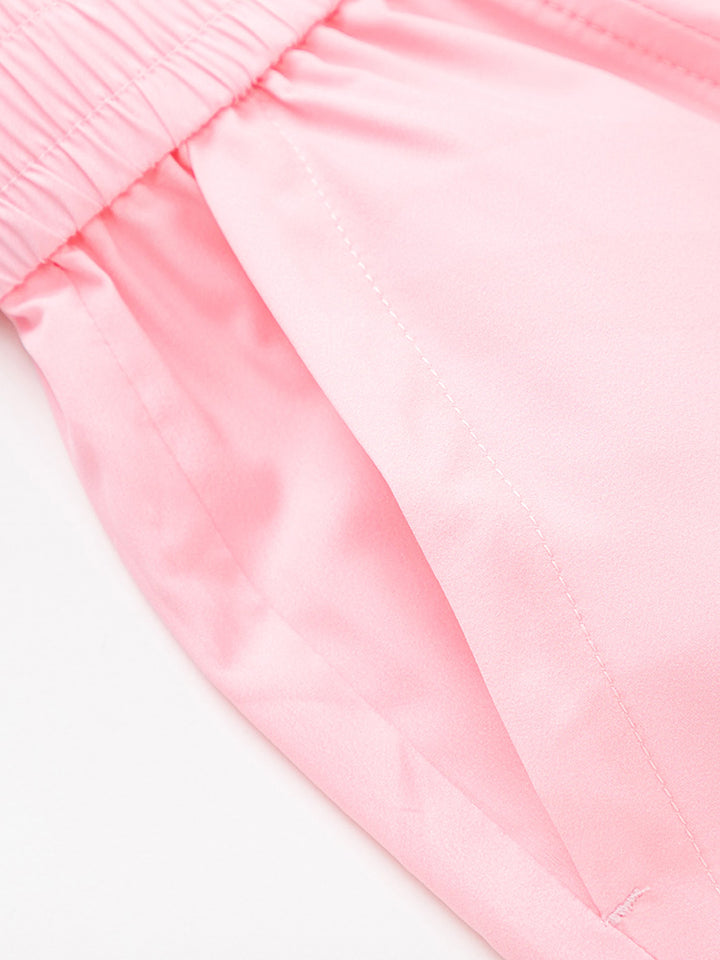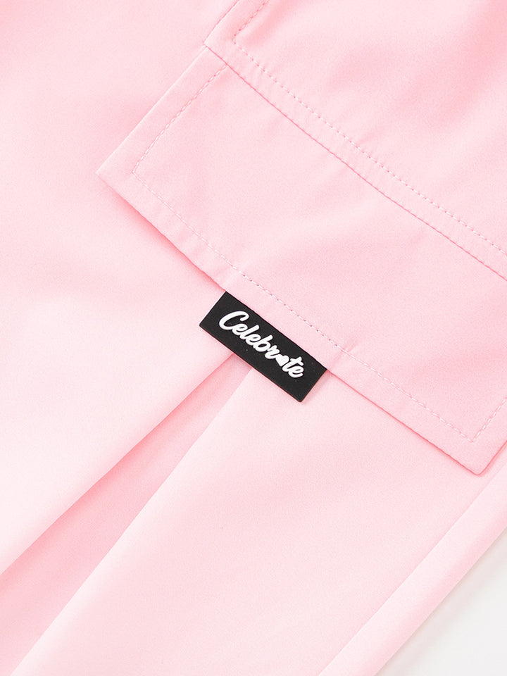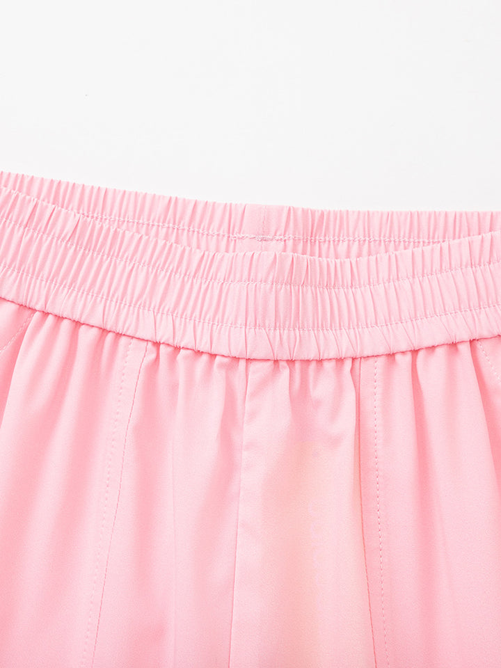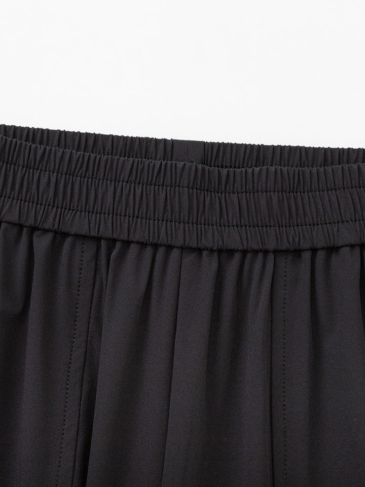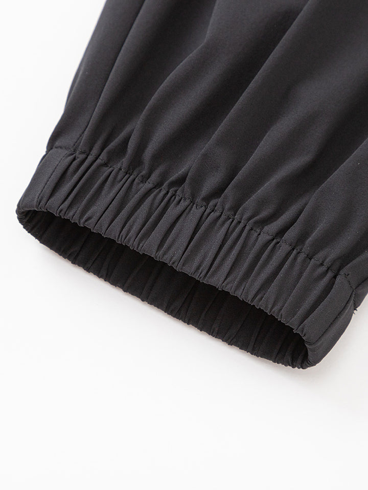 casual pants in a flowy style design, decorated with a gradient contrast colored pattern, comes with pockets on the front side and with elasticated anklets and waistband