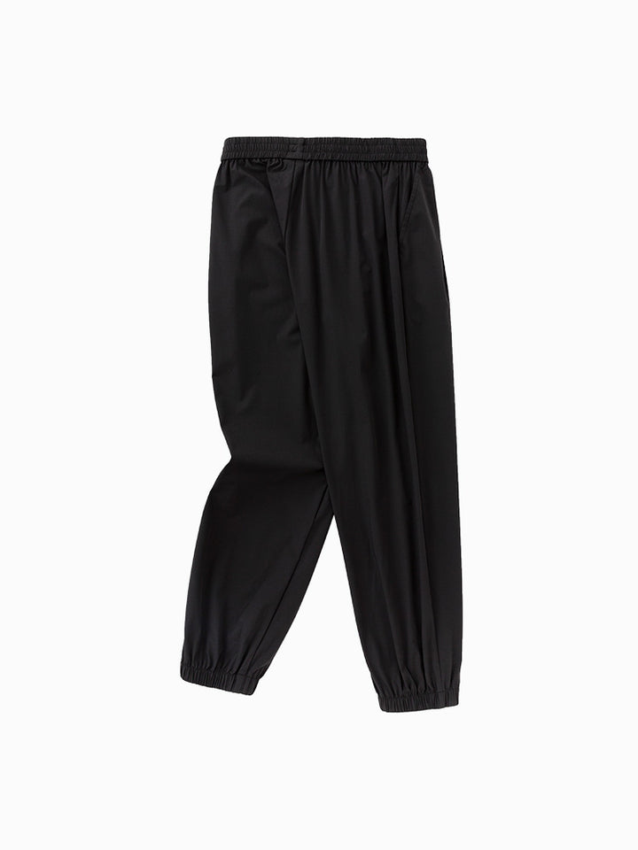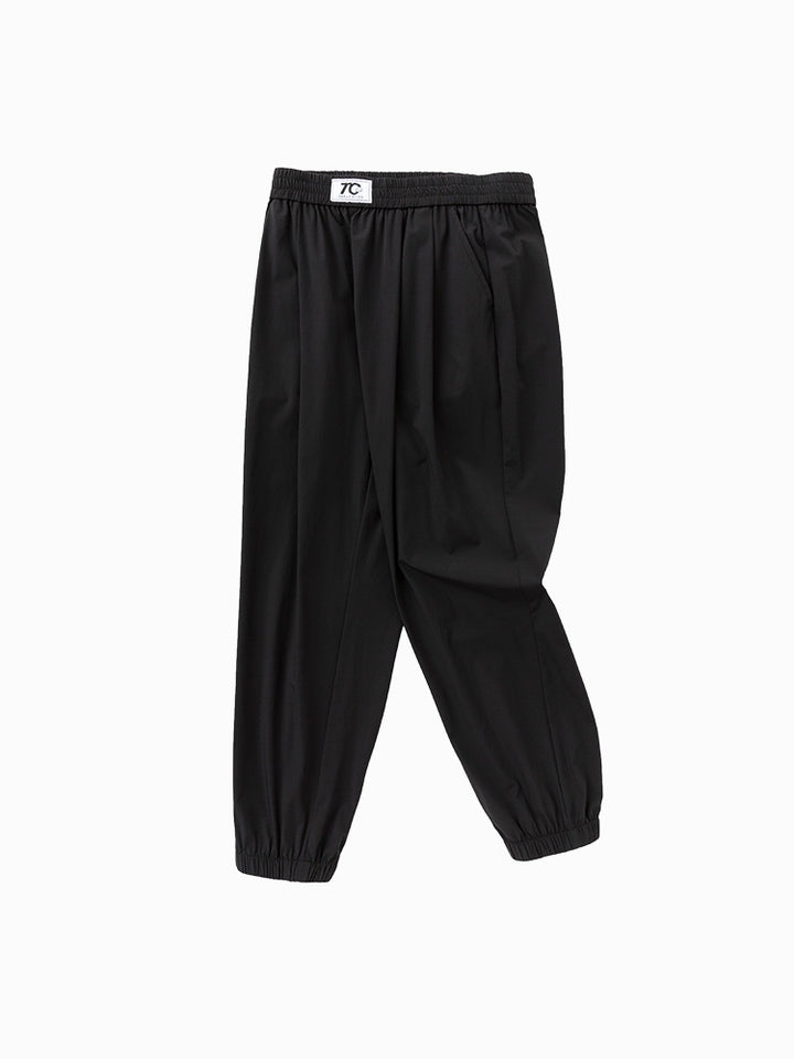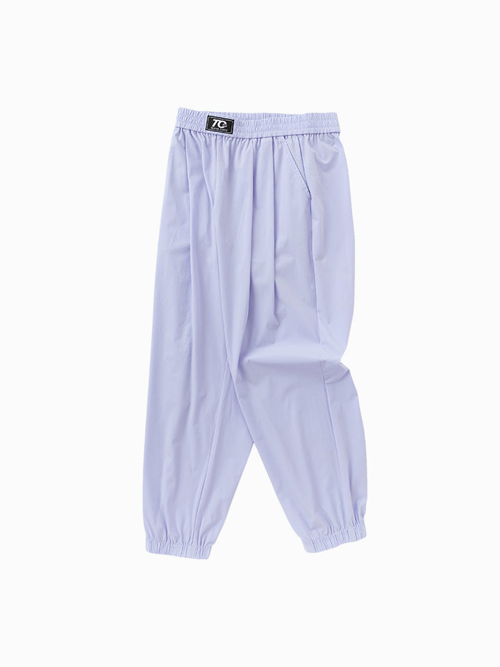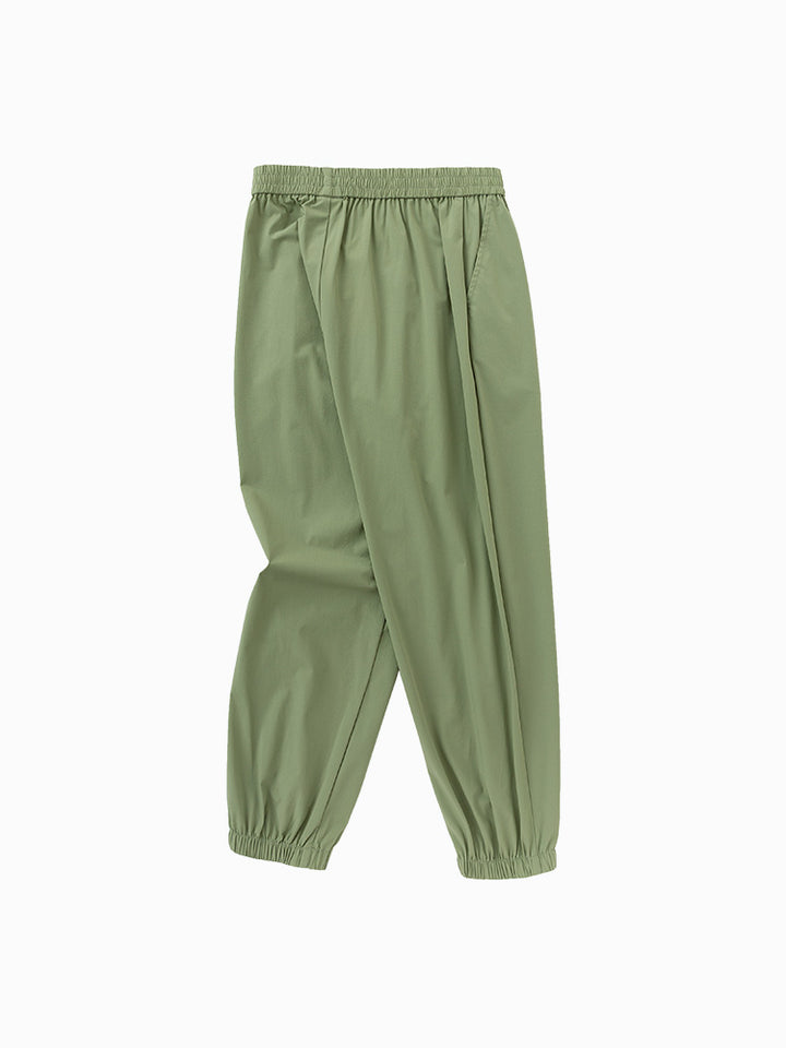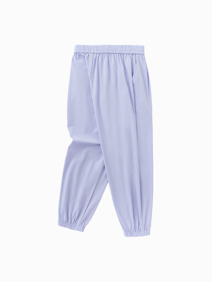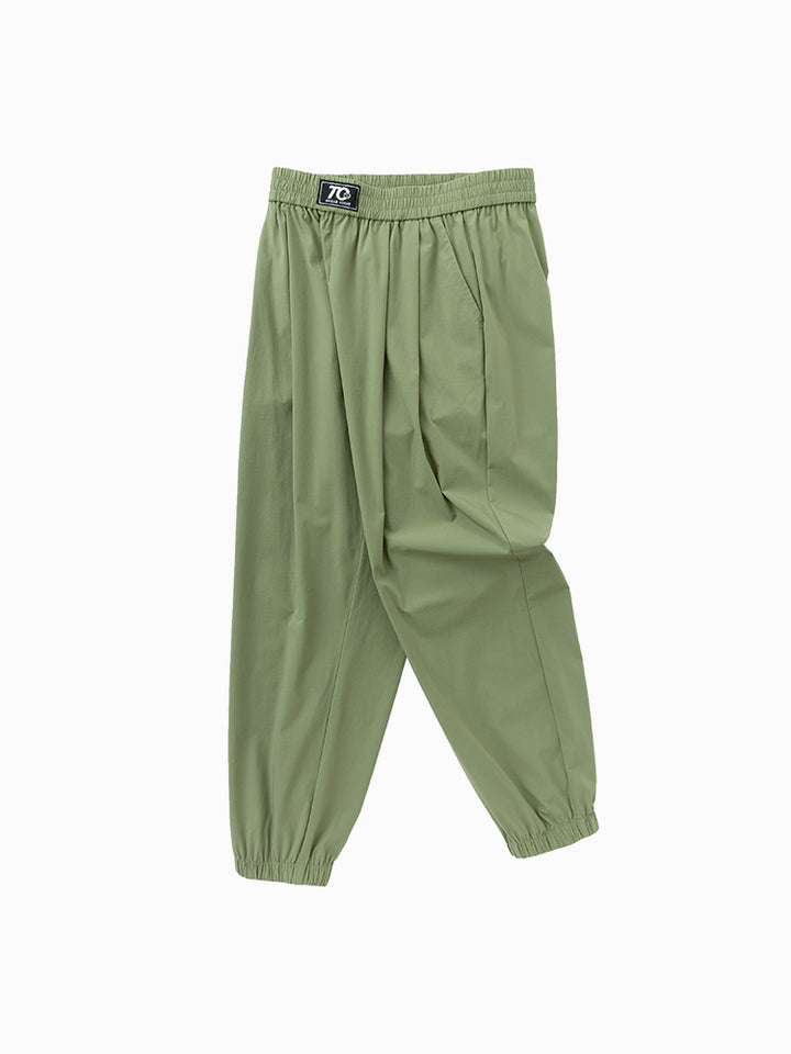 casual flowy pants in a plain mono colored pattern, comes with pockets on the front side and with elasticated anklets and waistband