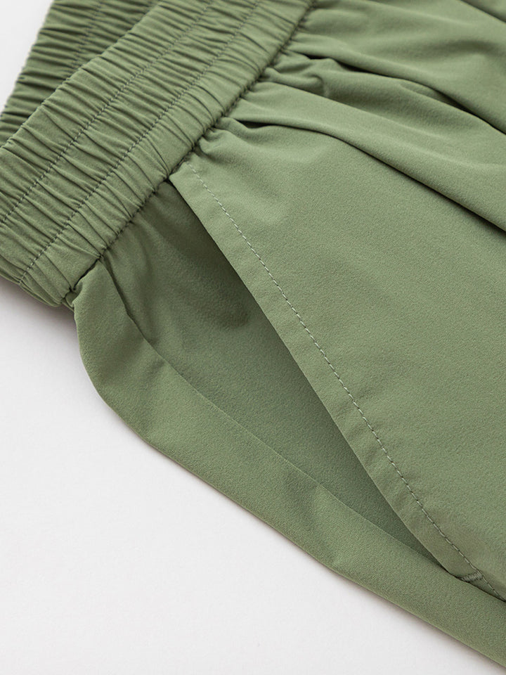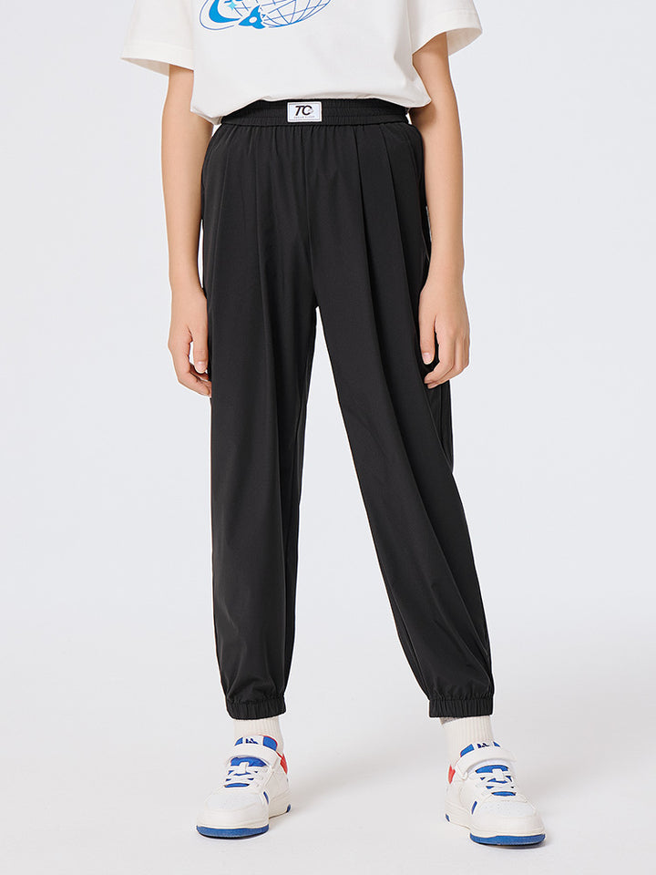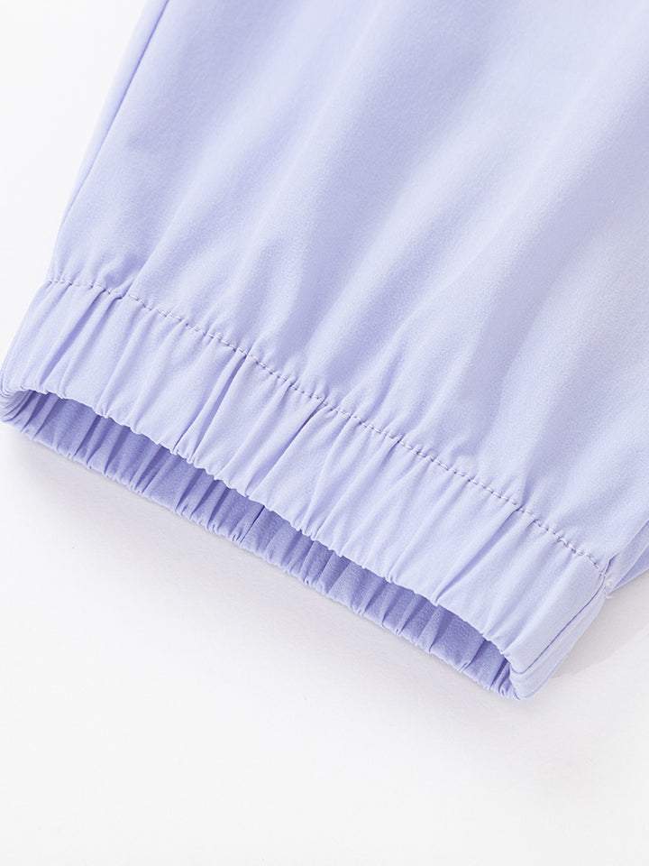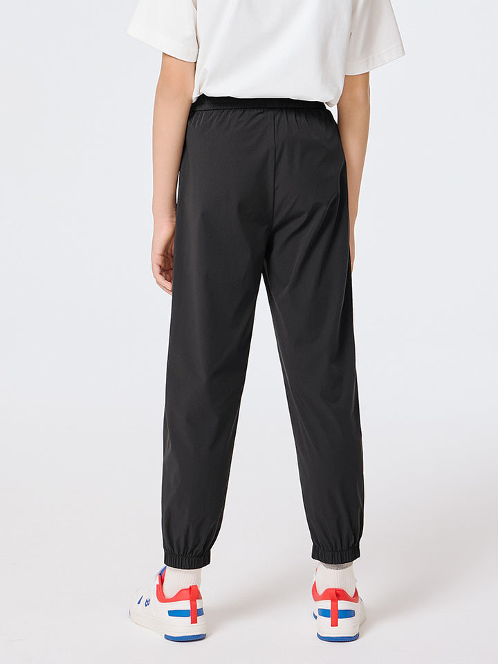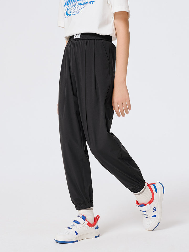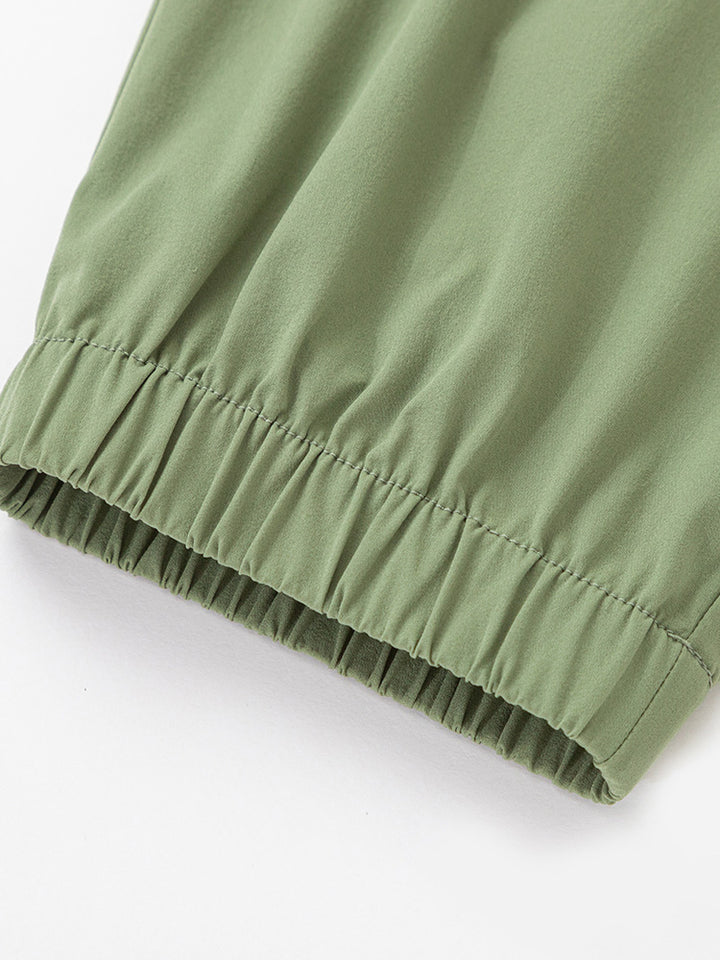 casual flowy pants in a plain mono colored pattern, comes with pockets on the front side and with elasticated anklets and waistband