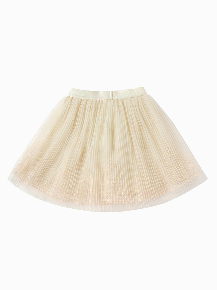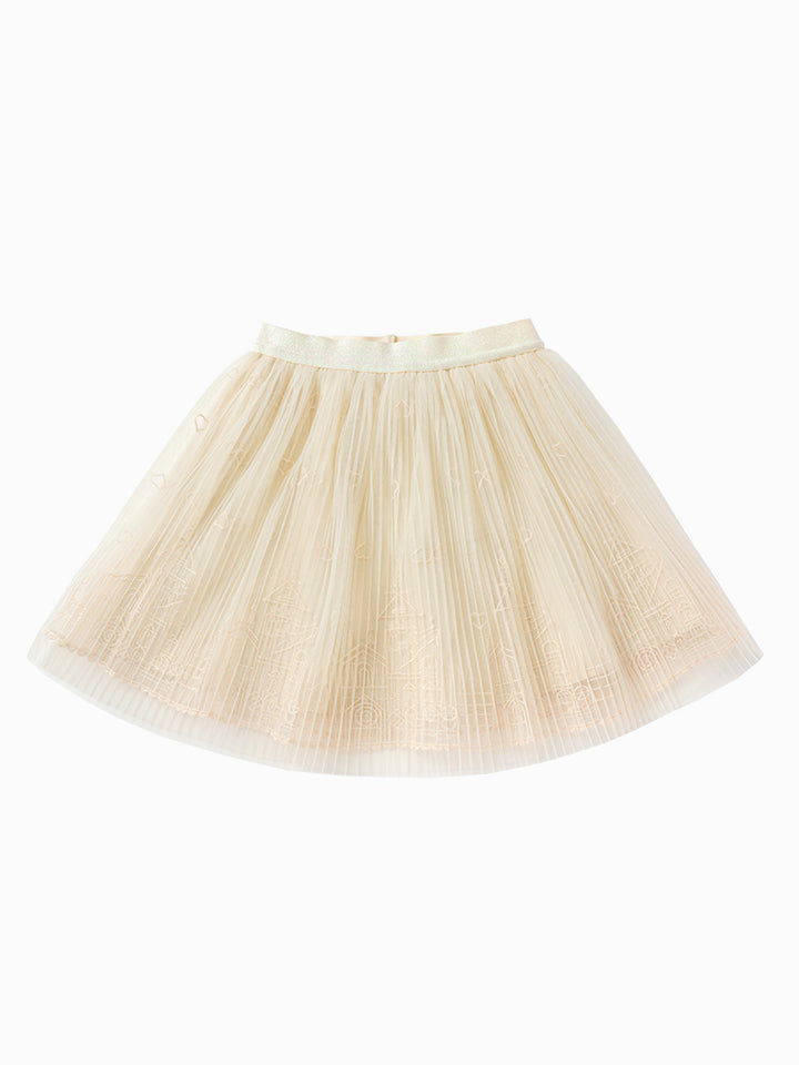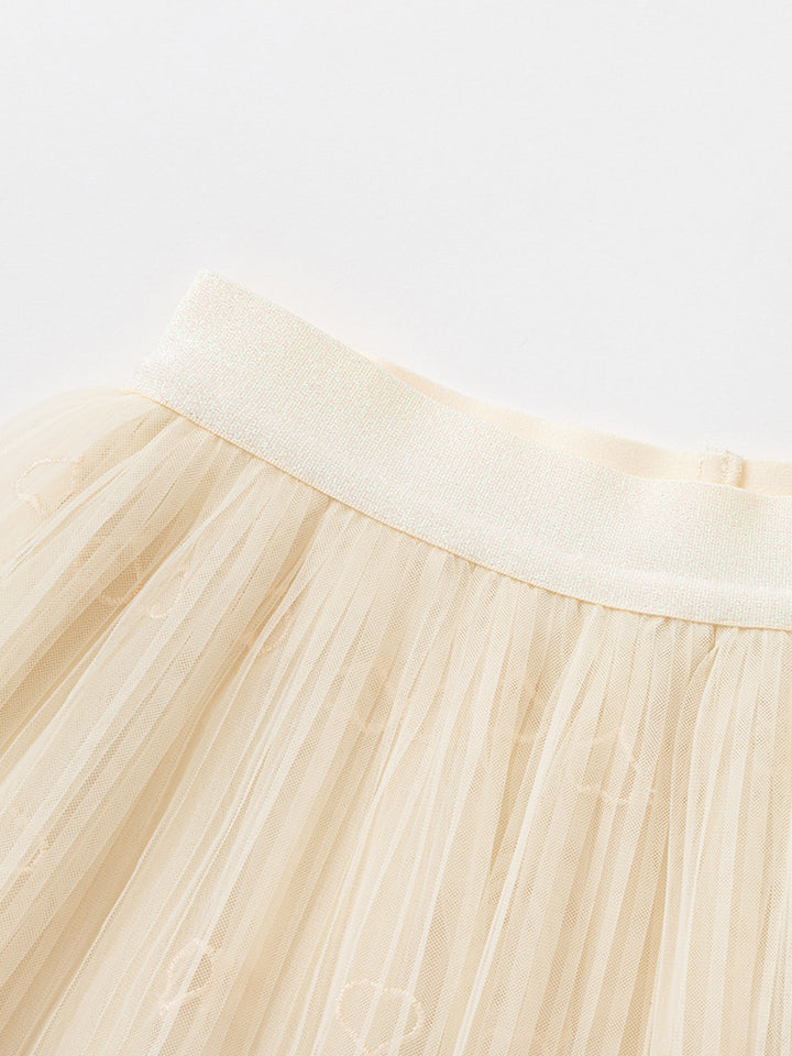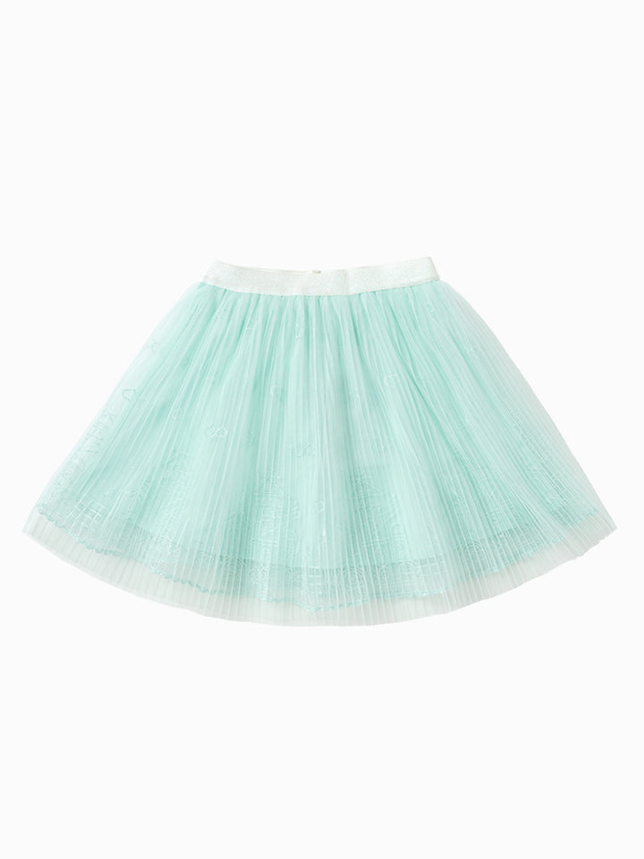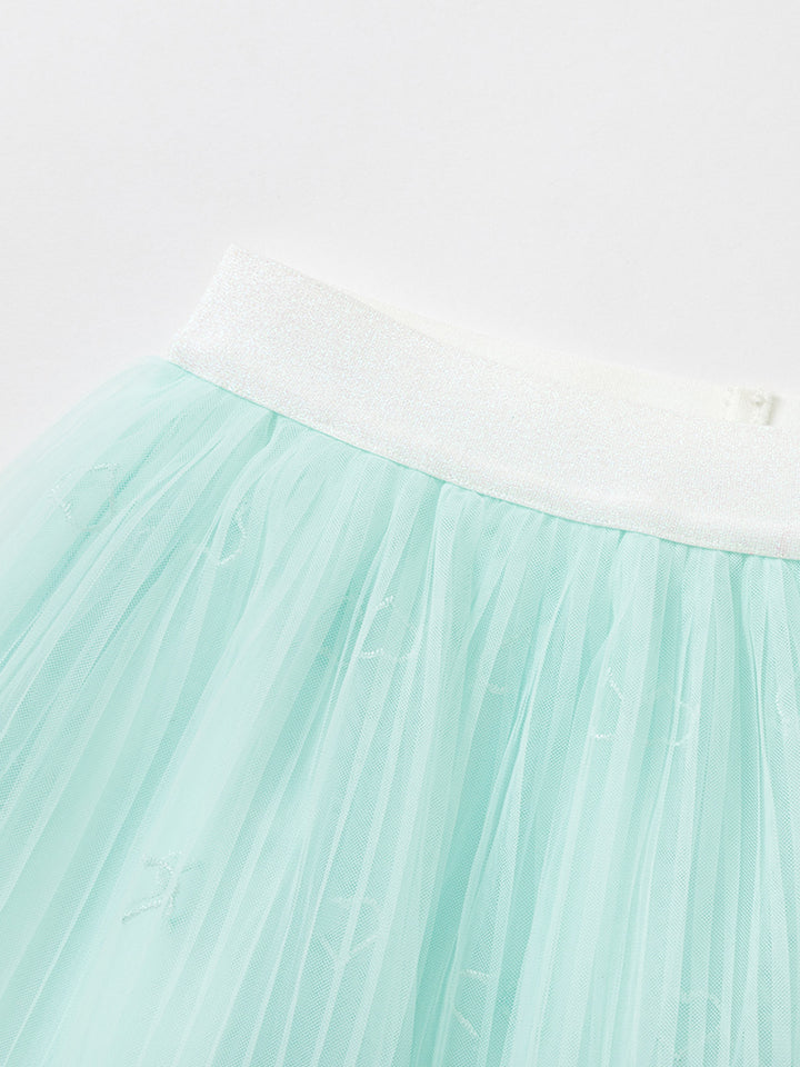 short skirt in a flowy style design, tulle mesh fabric decorated with embroidery prints details, comes with a comfy elasticated waistband