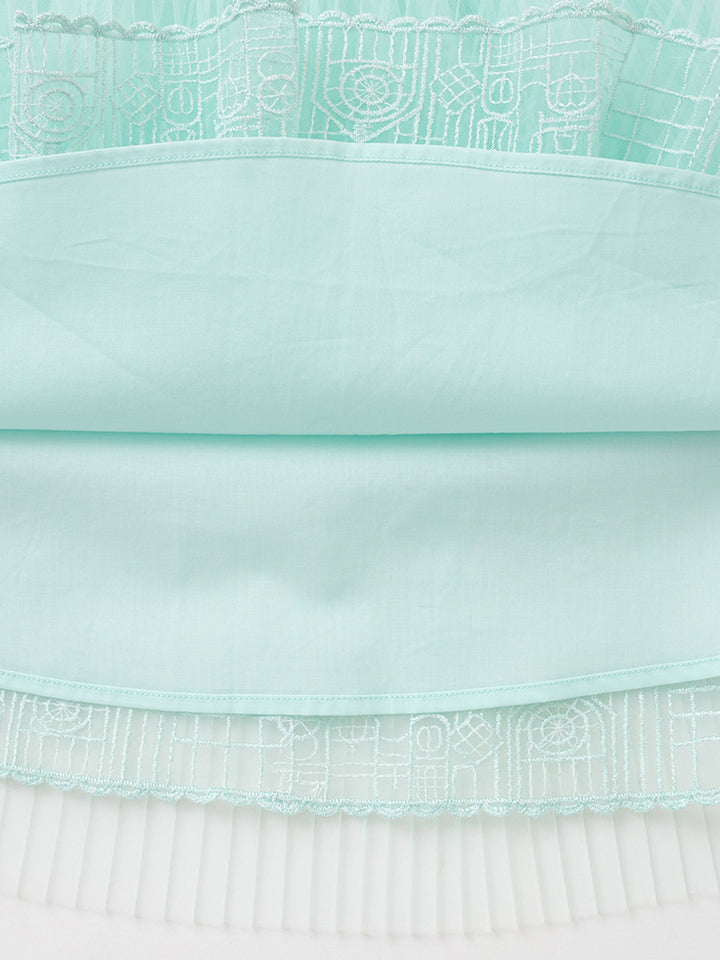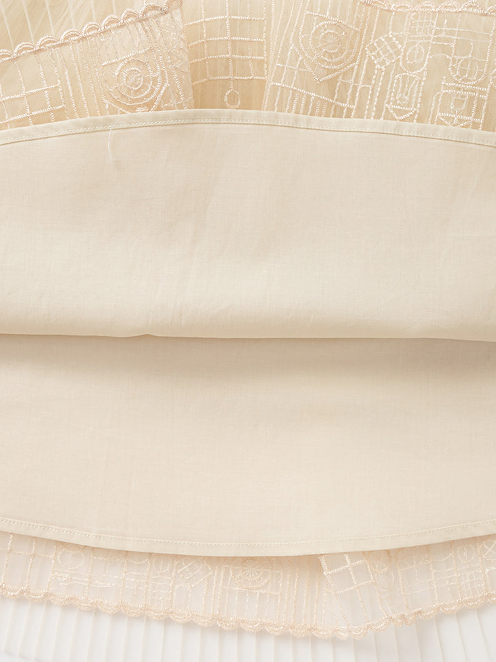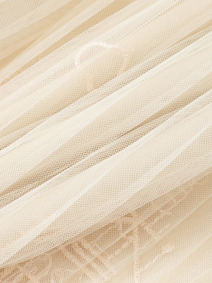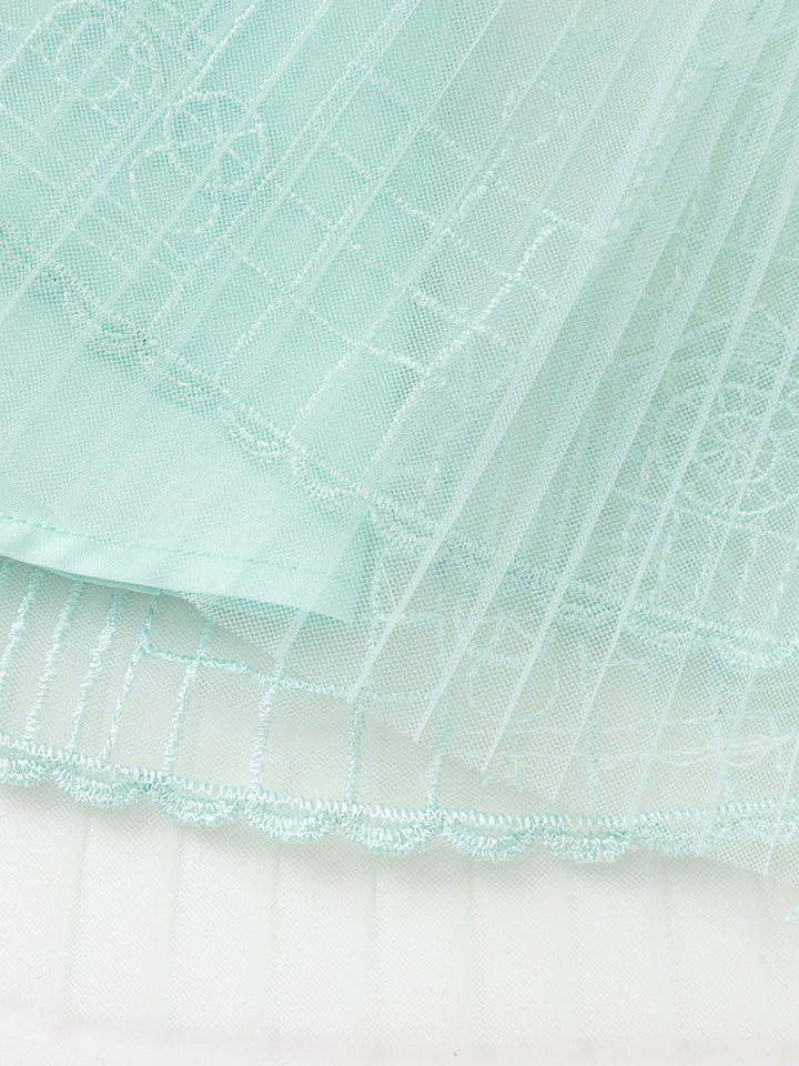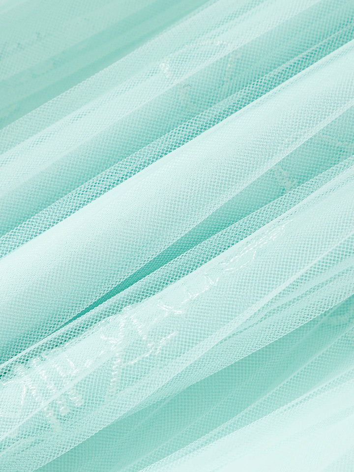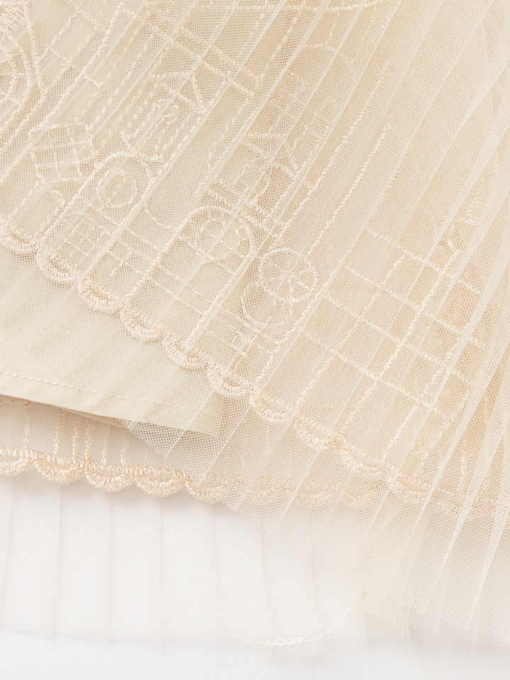 short skirt in a flowy style design, tulle mesh fabric decorated with embroidery prints details, comes with a comfy elasticated waistband