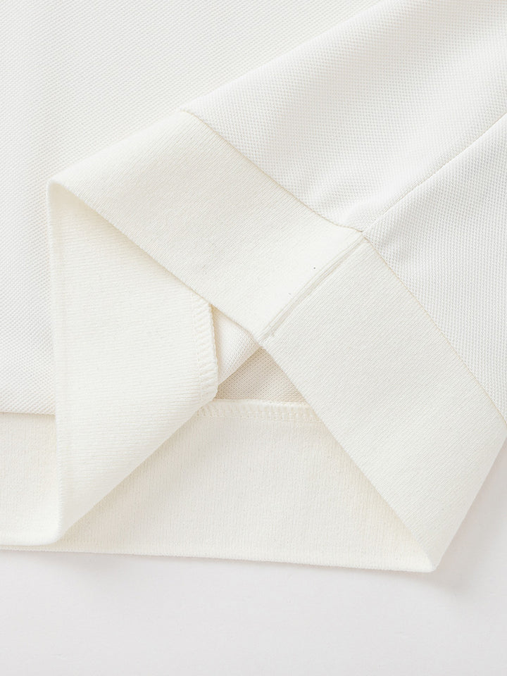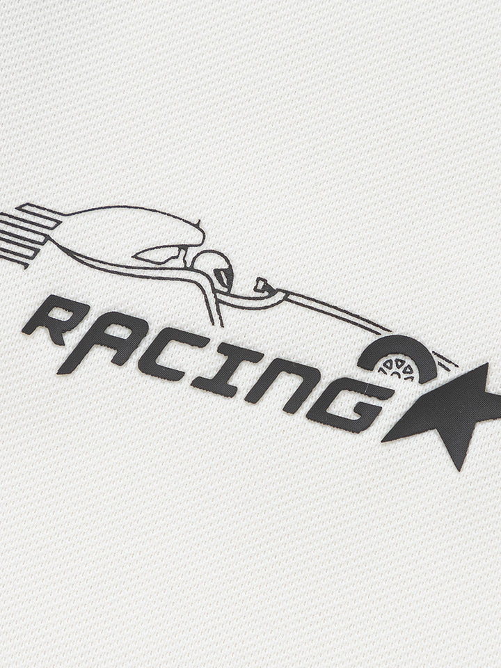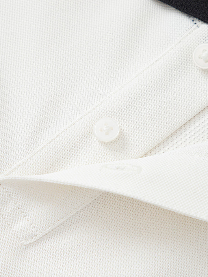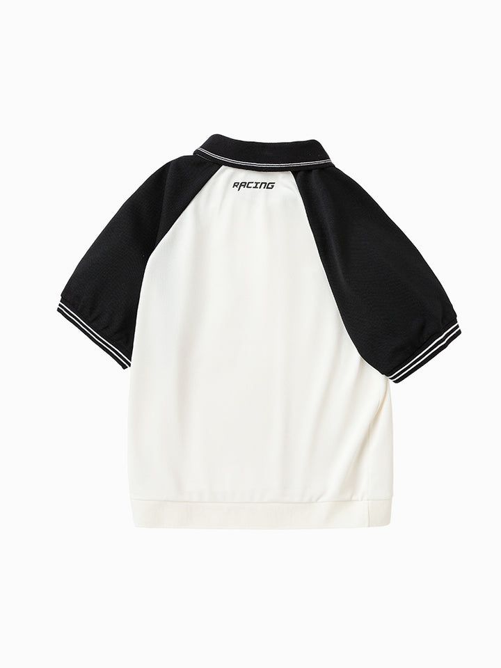 short sleeves polo t-shirt, decorated with prints on the front and the back sides, comes with buttons on neckline side and with a regular collar