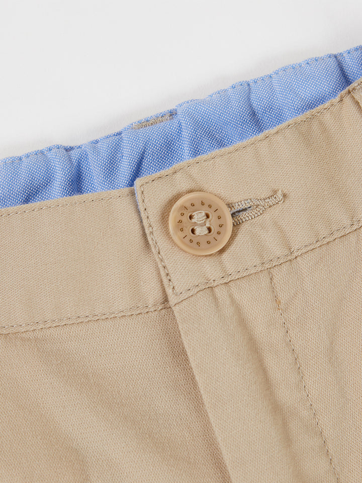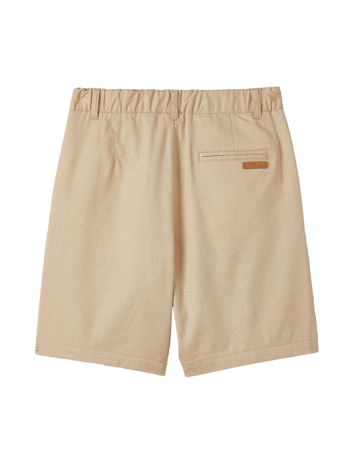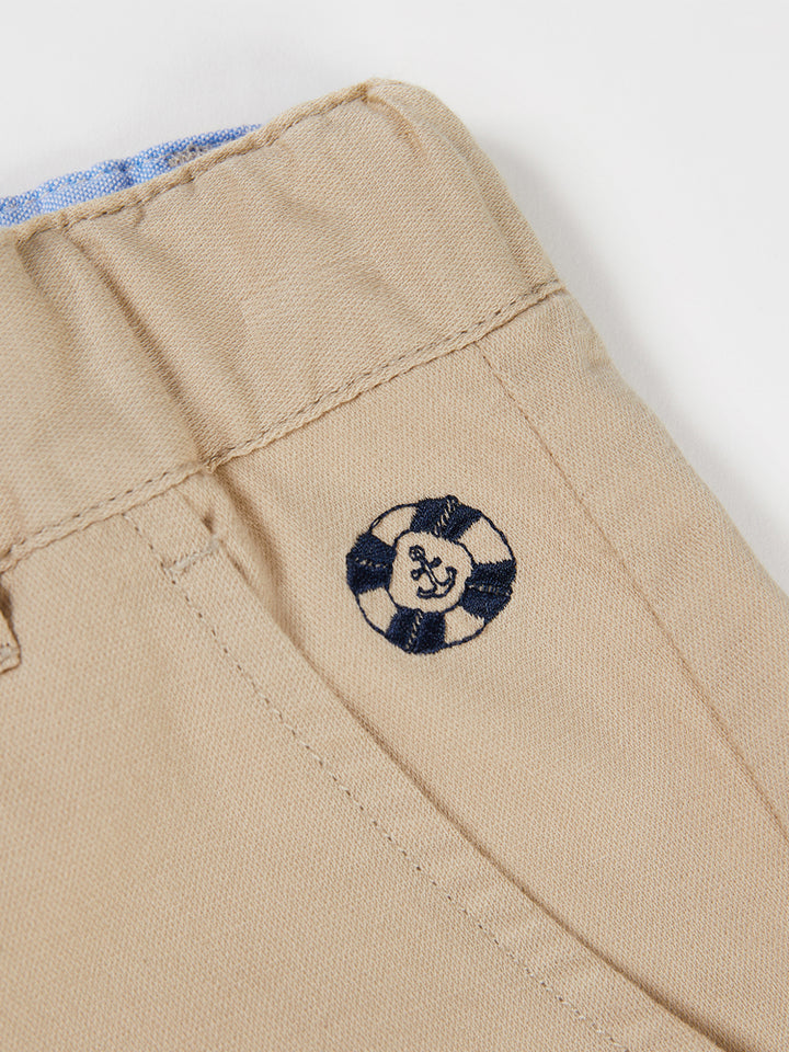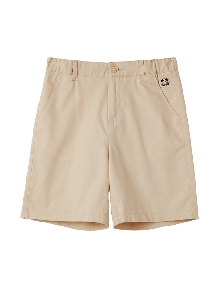 casual shorts, decorated with small embroidery on the front side, comes with pockets on the front side and one pocket on the back side, button and zipper for closure on waistline