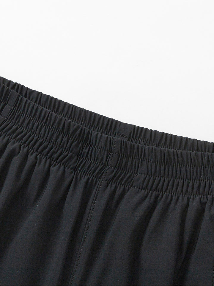 casual boy shorts, decorated with a small print on the front side, comes with pockets on the front side and a zipper pocket on the side of one leg and with a comfy elasticated waistband