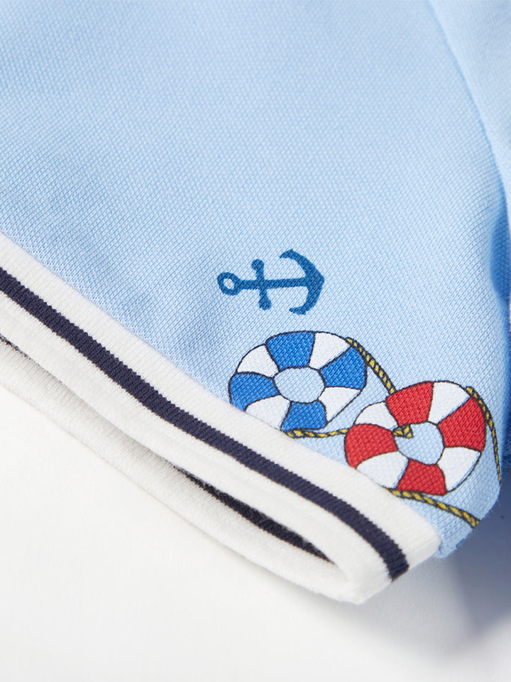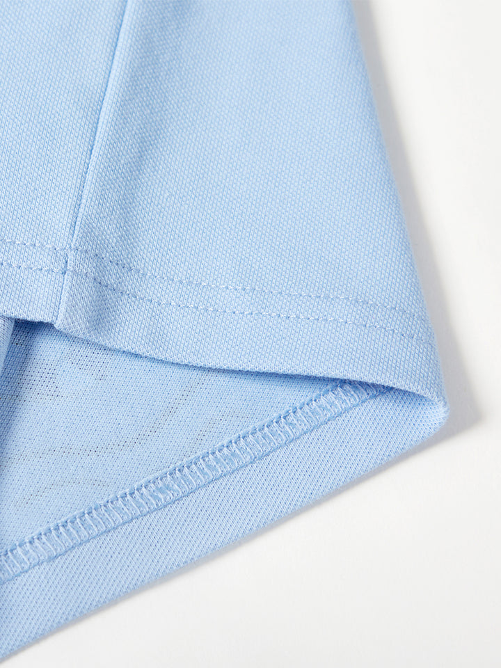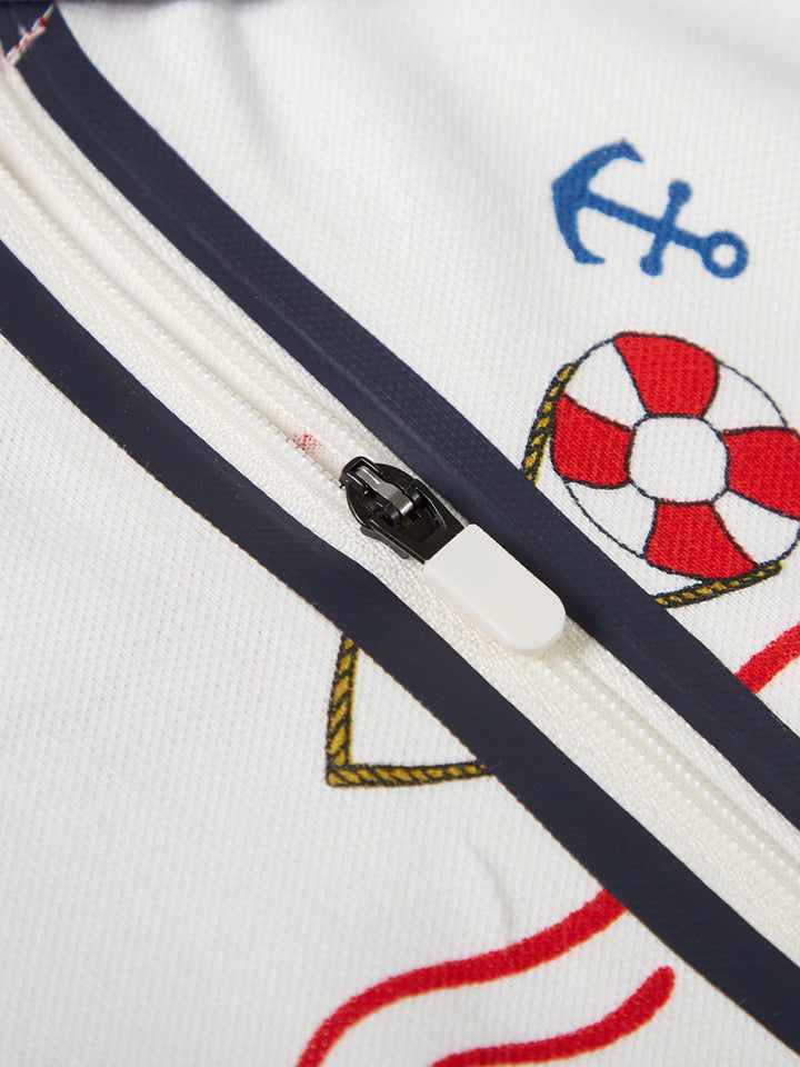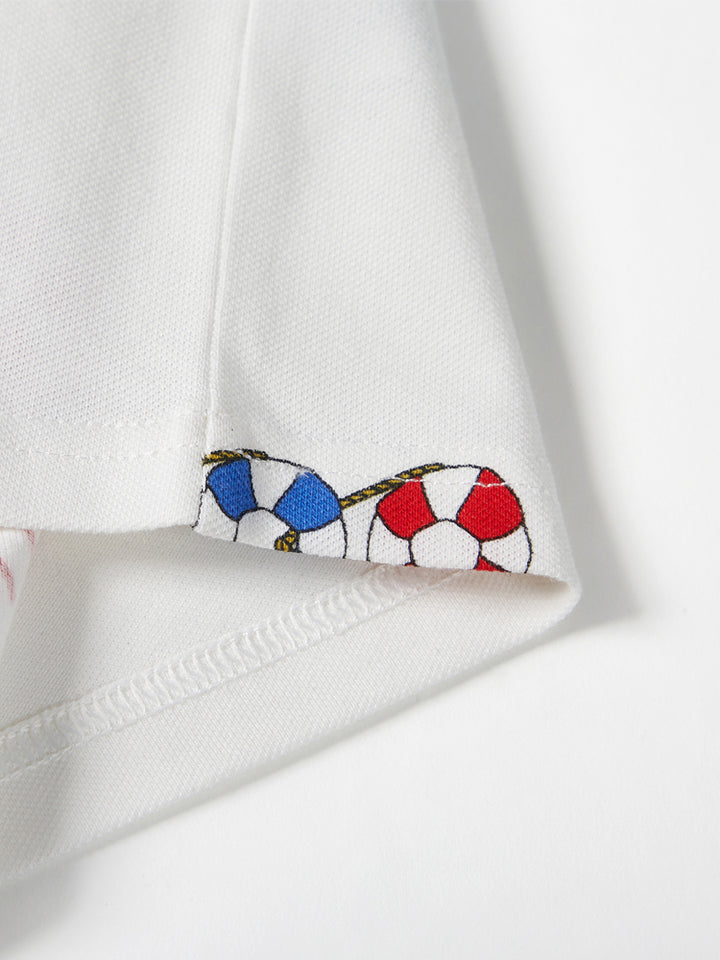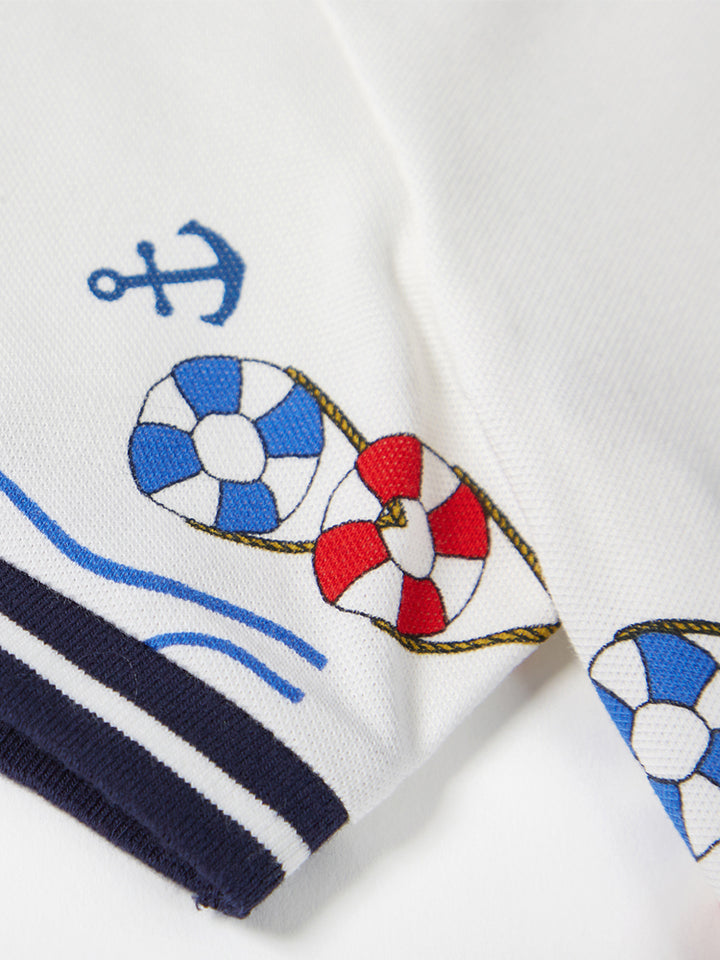 short sleeves casual polo t-shirt, decorated with a colored printed pattern, comes with zipper for closure on the front side and with a classic regular collar