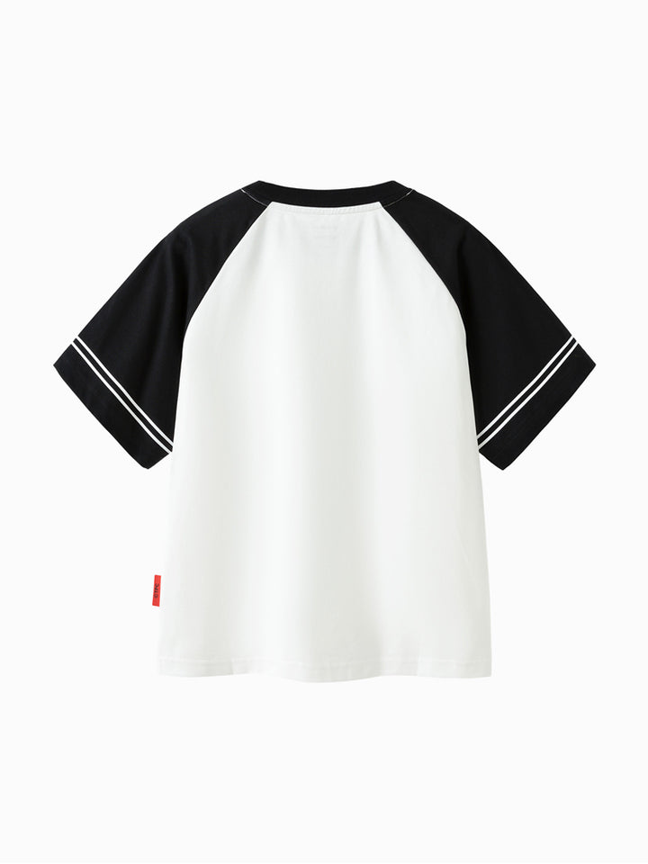 short sleeves casual boy t-shirt, decorated with a print on the front side, comes with a rounded shape neckline