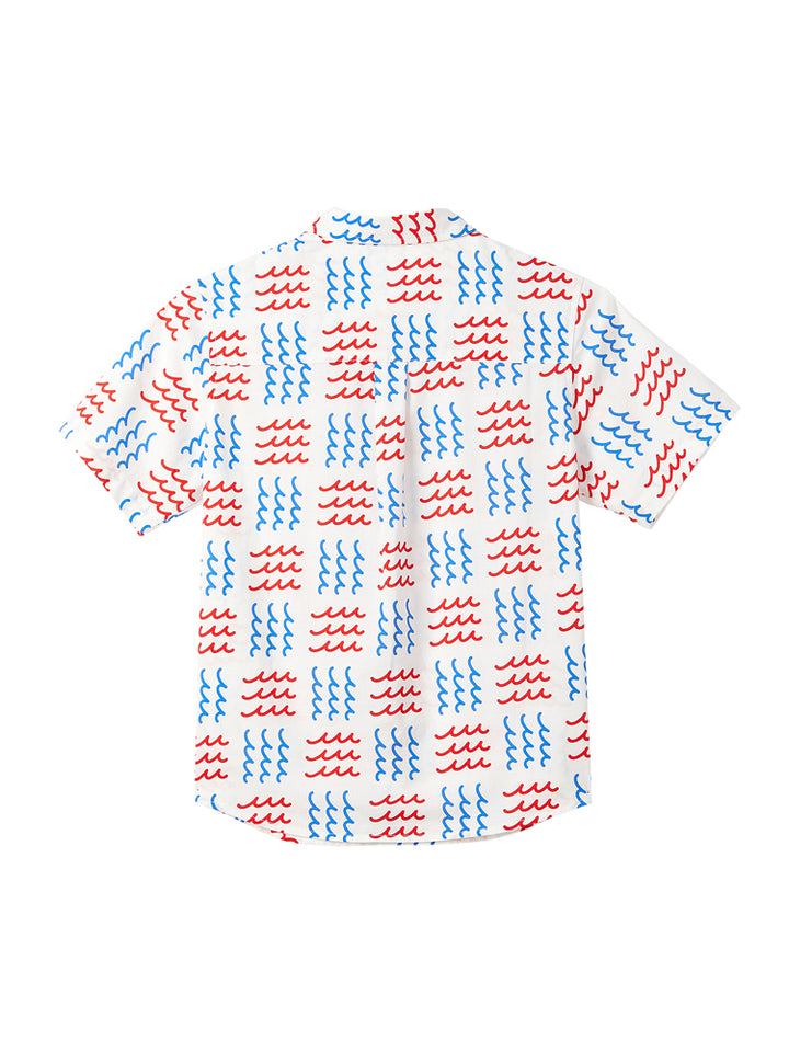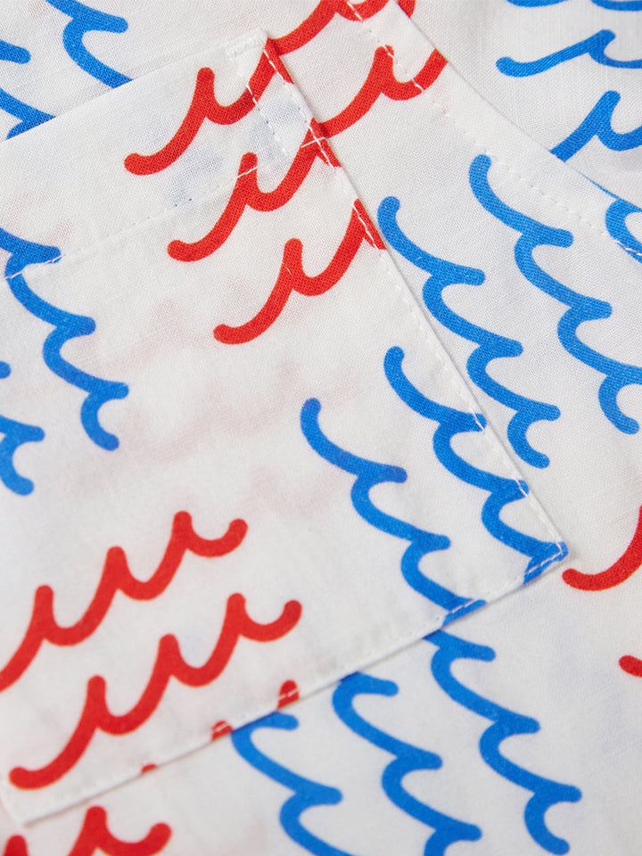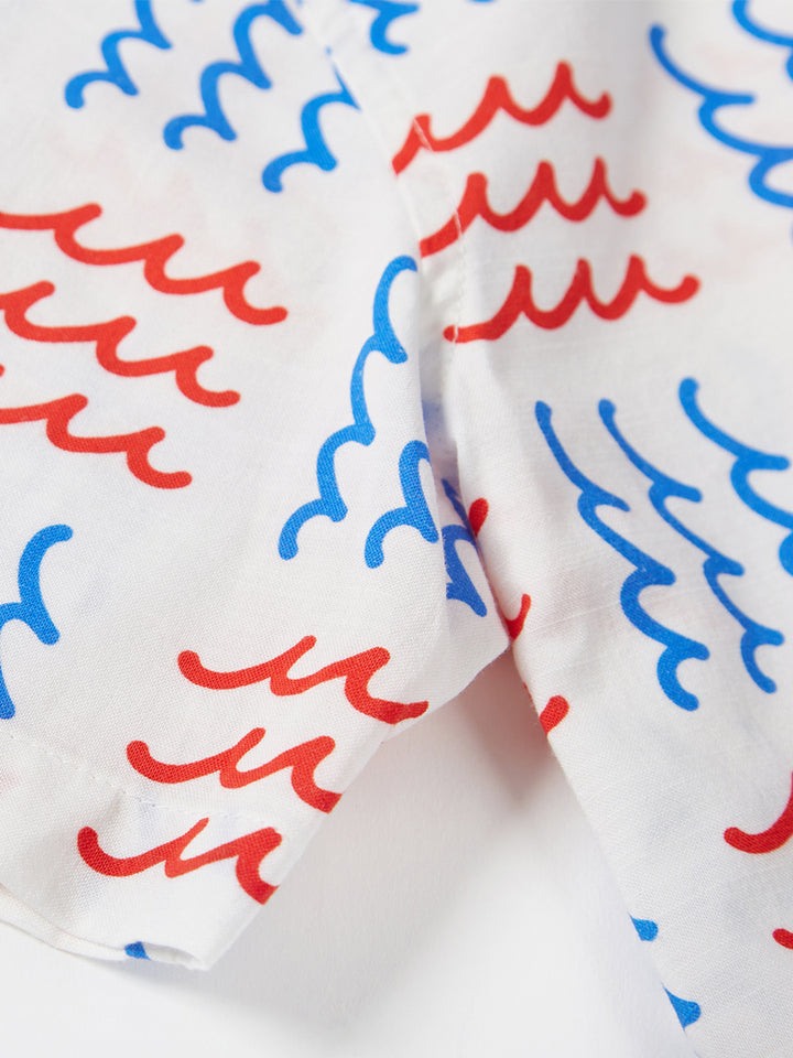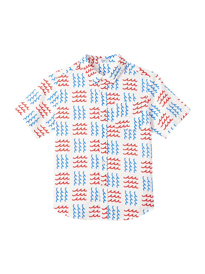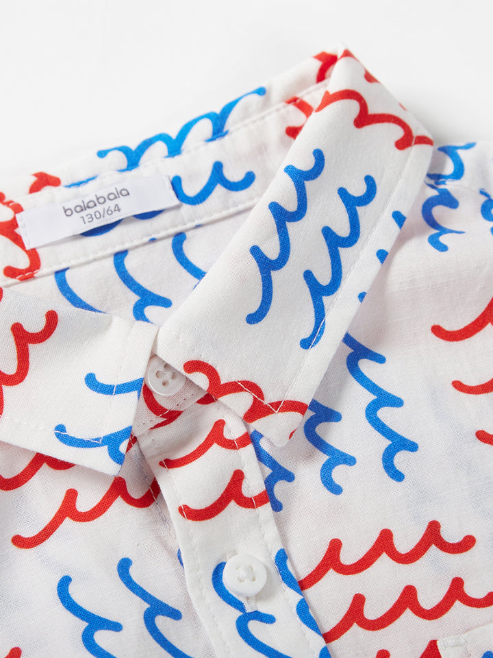 short sleeves casual shirt, decorated with a colored printed pattern, comes with front pocket, buttons for closure on the front side and with a classic regular collar