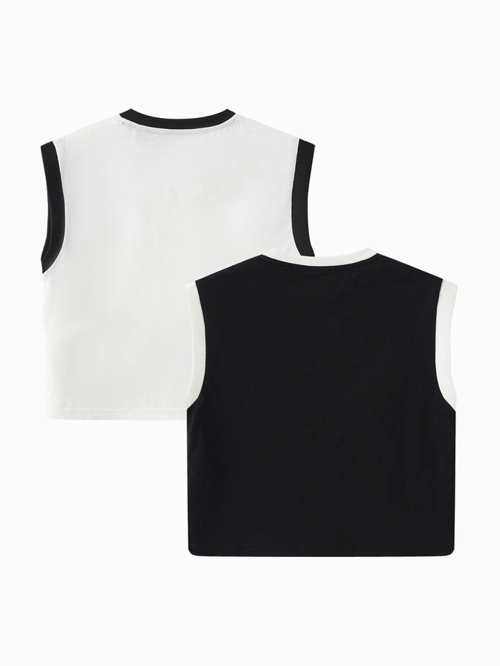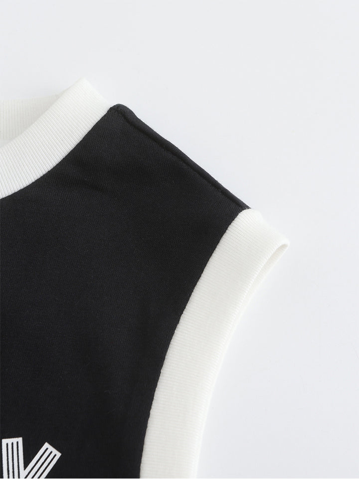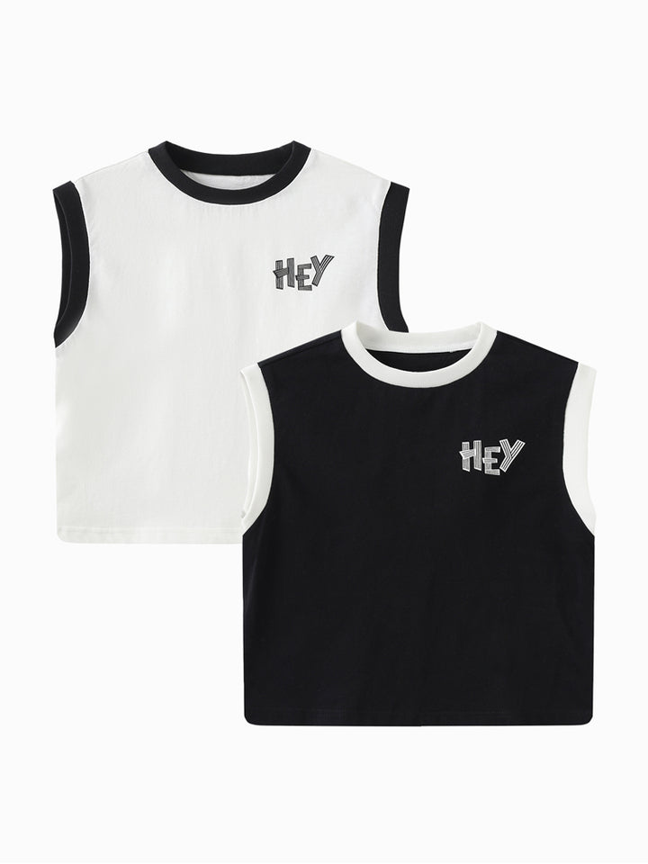 casual sleeveless t-shirt set of 2 pieces, decorated with a print on the front side, comes with a rounded shape neckline