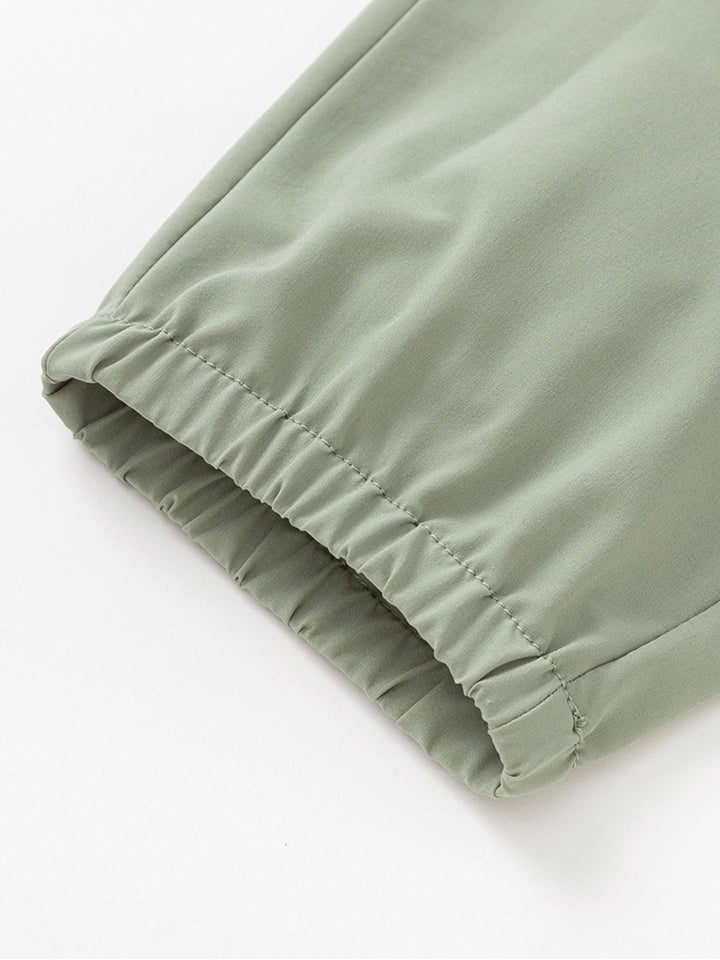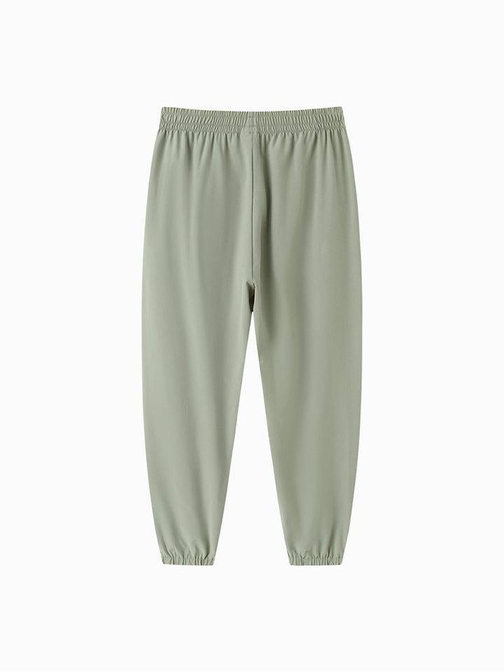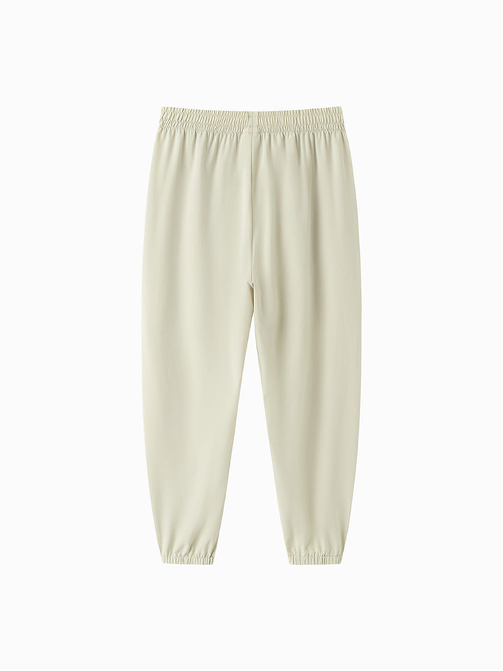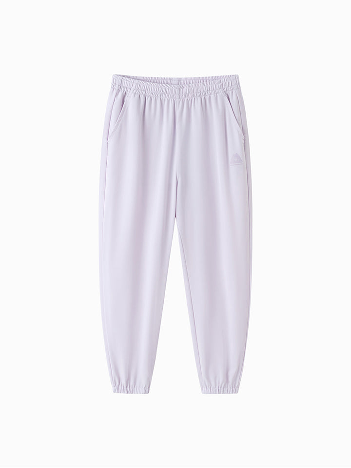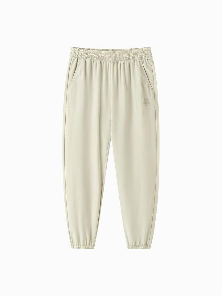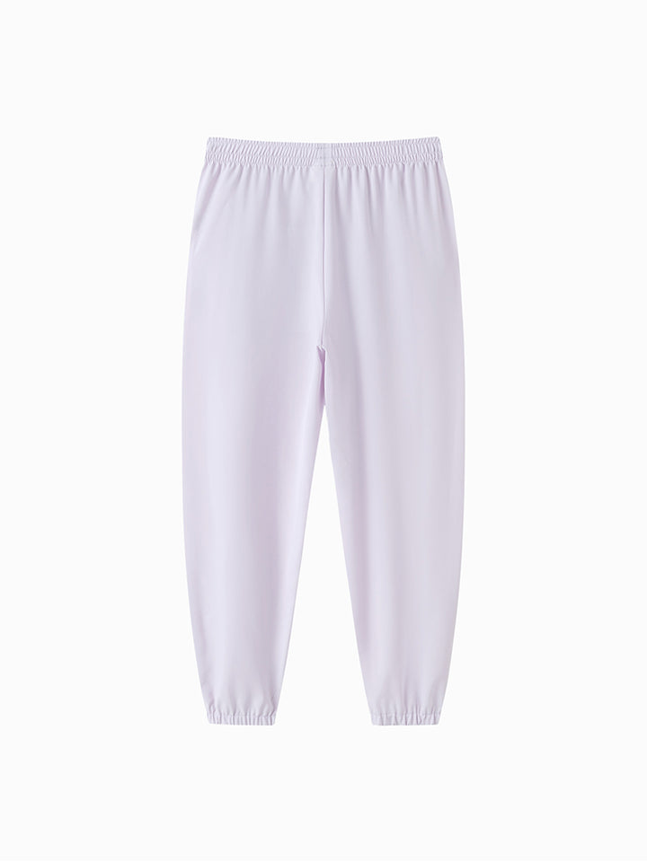 casual sweatpants, decorated with a small print on one leg front side, comes with pockets on the front side and with a comfy elasticated waistband