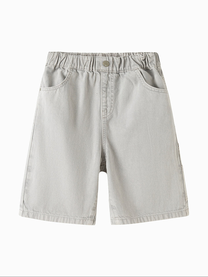 These stylish denim shorts feature a solid color design with unique back embroidery. Equipped with front and back pockets, and an elastic waist for a comfortable fit, they are perfect for casual summer days.