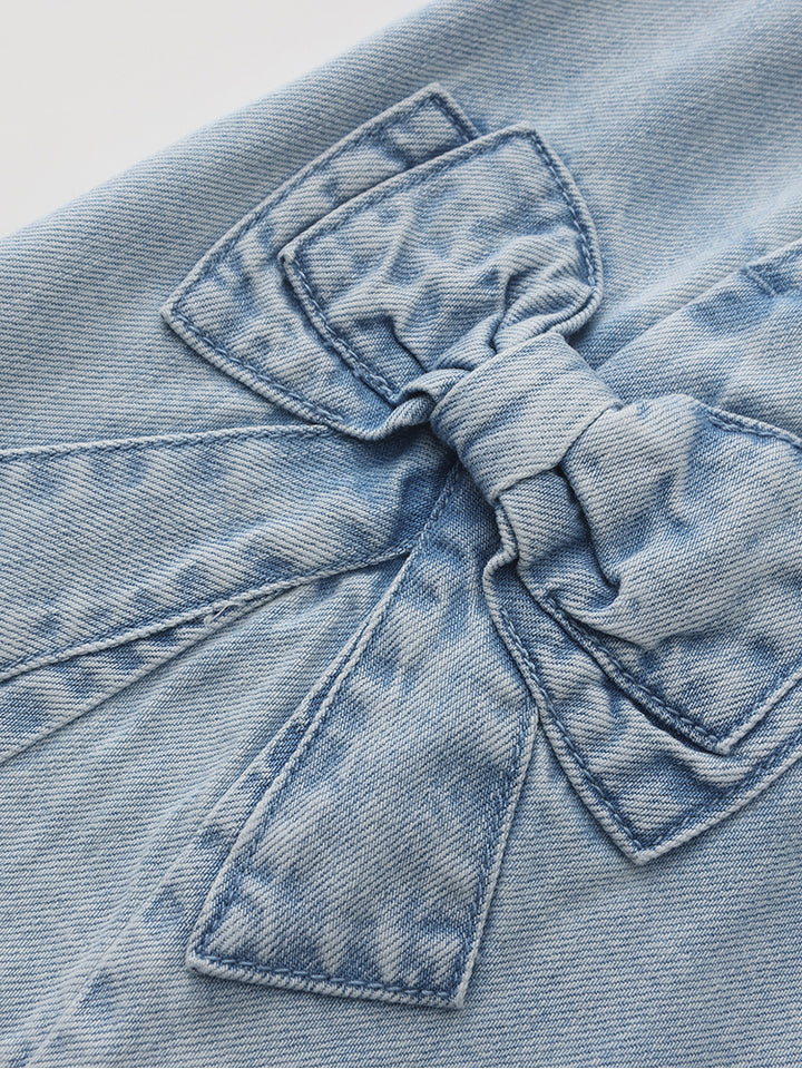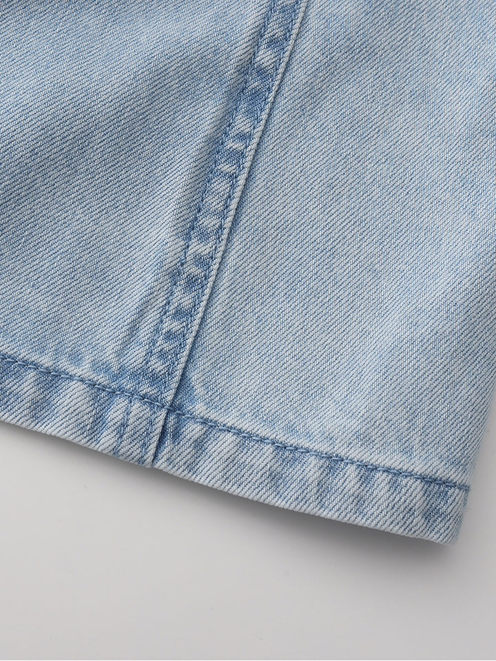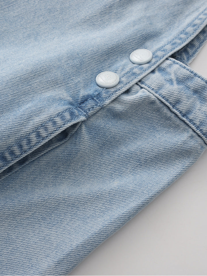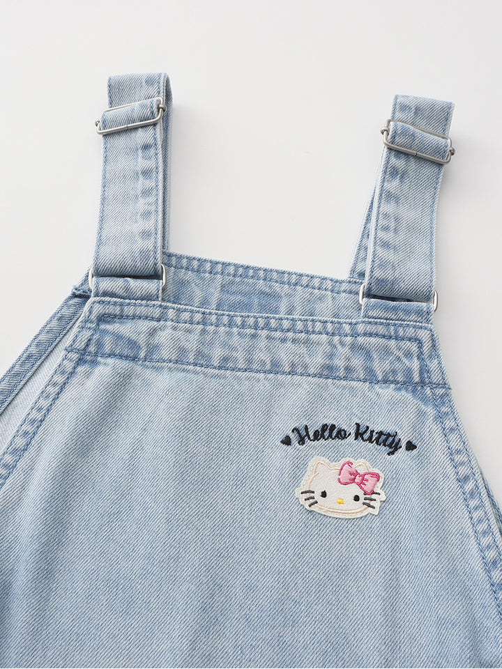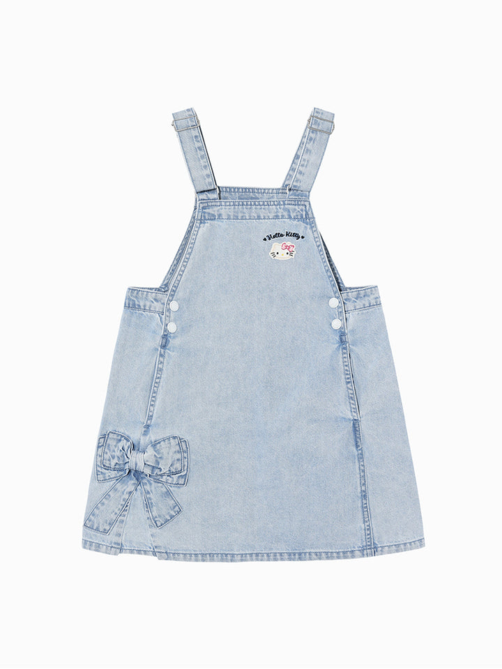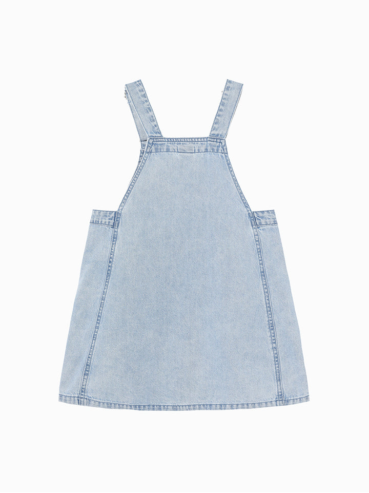 sleeveless denim dress decorated wit front embroidery comes with adjustable shoulder straps
