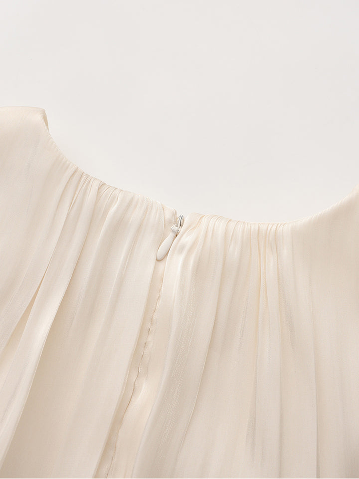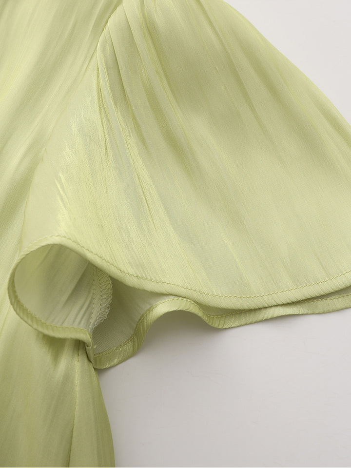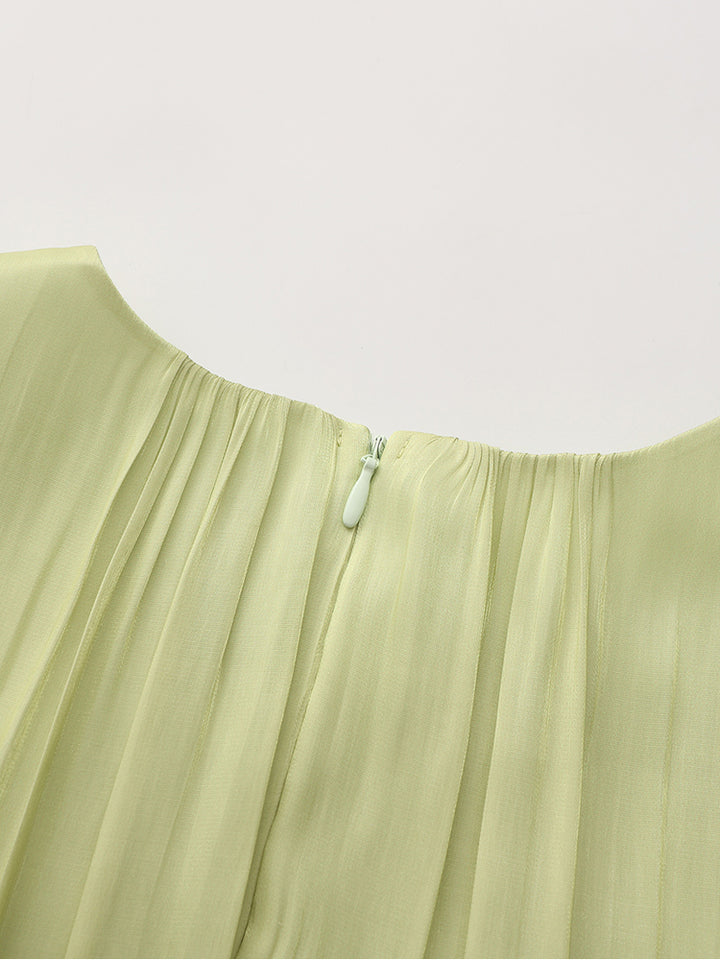 short sleeves dress in a solid mono colored pattern soft fabric, comes with back zipper for closure and a rounded neckline