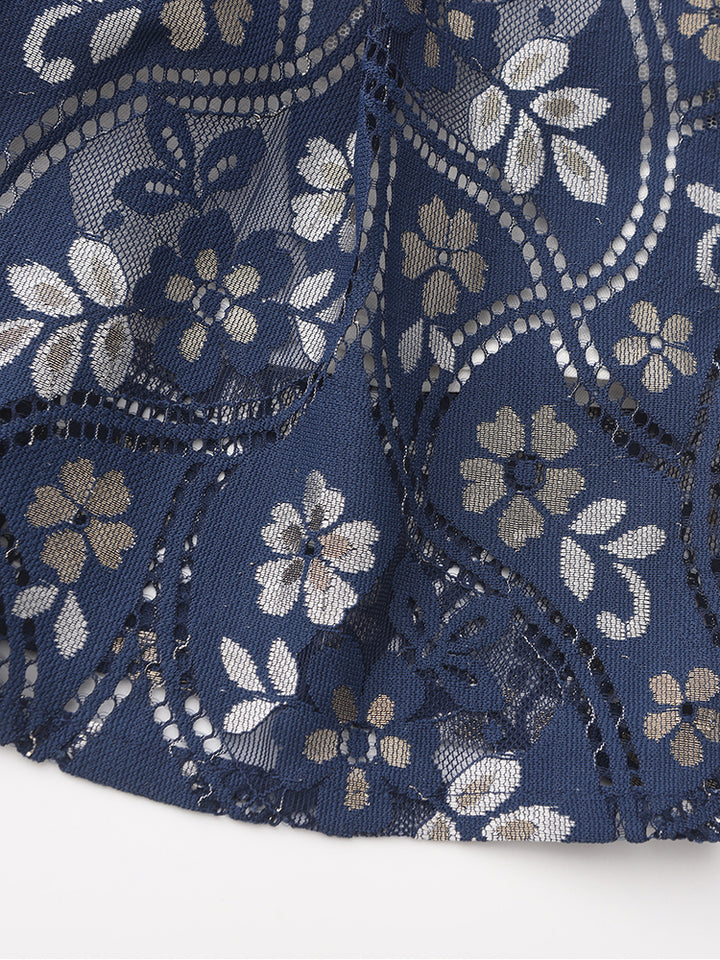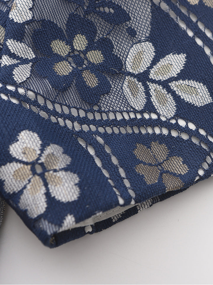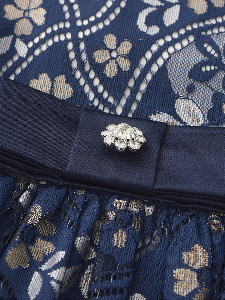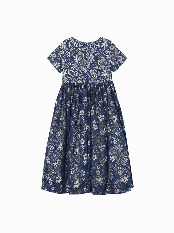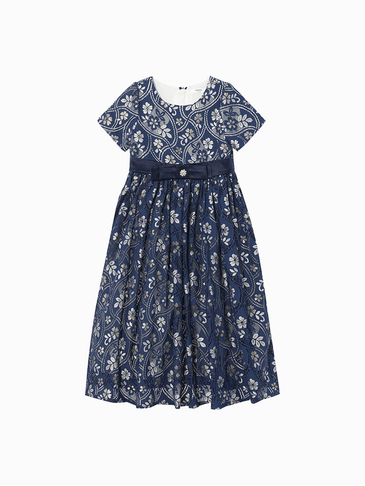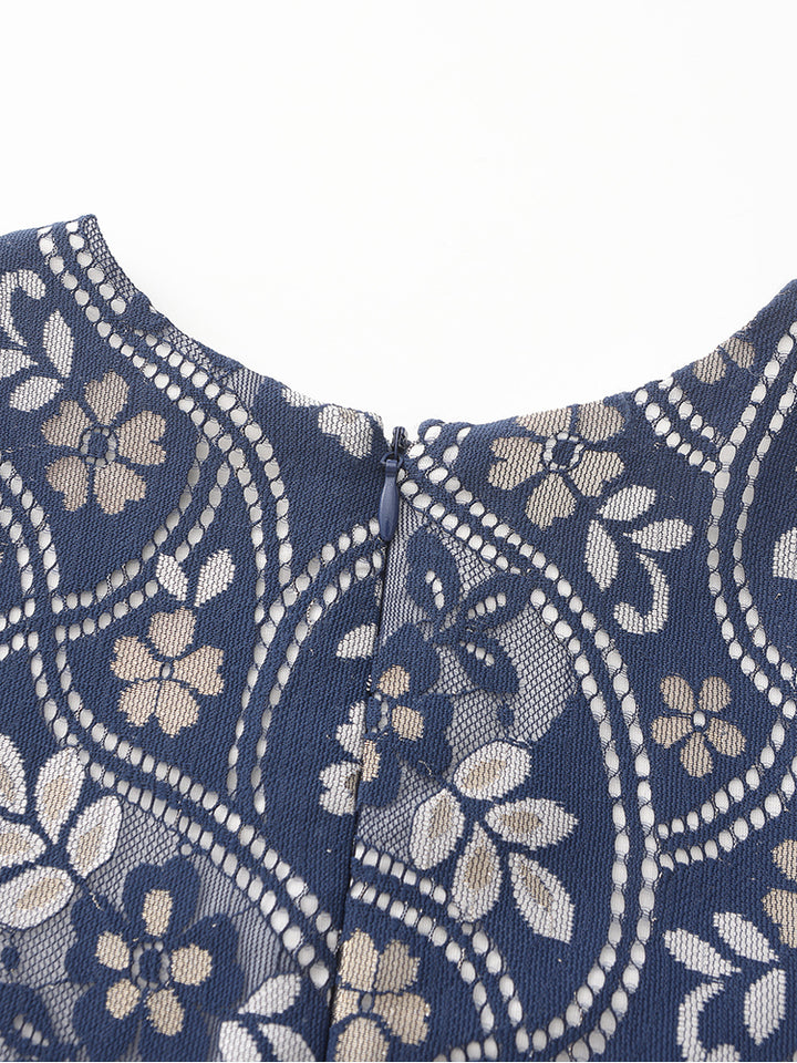 short sleeves dress decorated with a knitted floral printed pattern, comes with back zipper for closure and a rounded neckline
