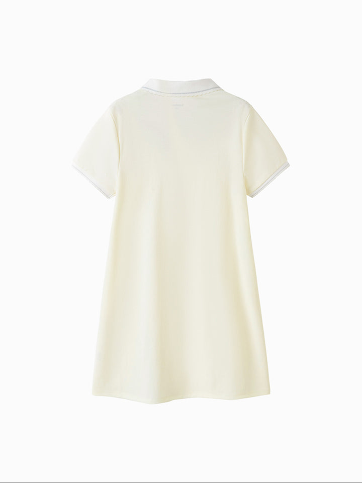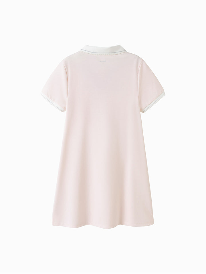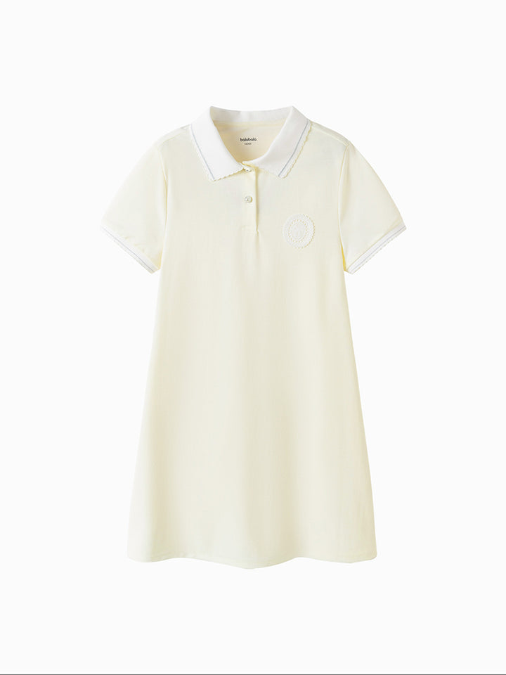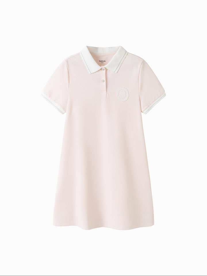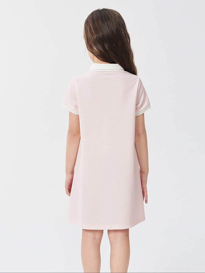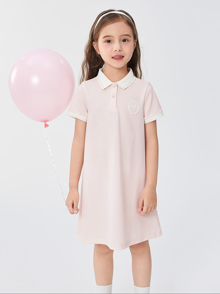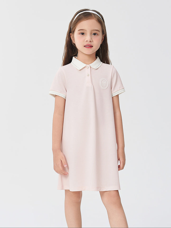 This charming kids dress features short sleeves, an embroidered patch on the front, and classic collar detailing. The front closure buttons add a stylish touch while ensuring a comfortable fit. Perfect for any casual outing
