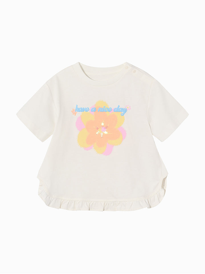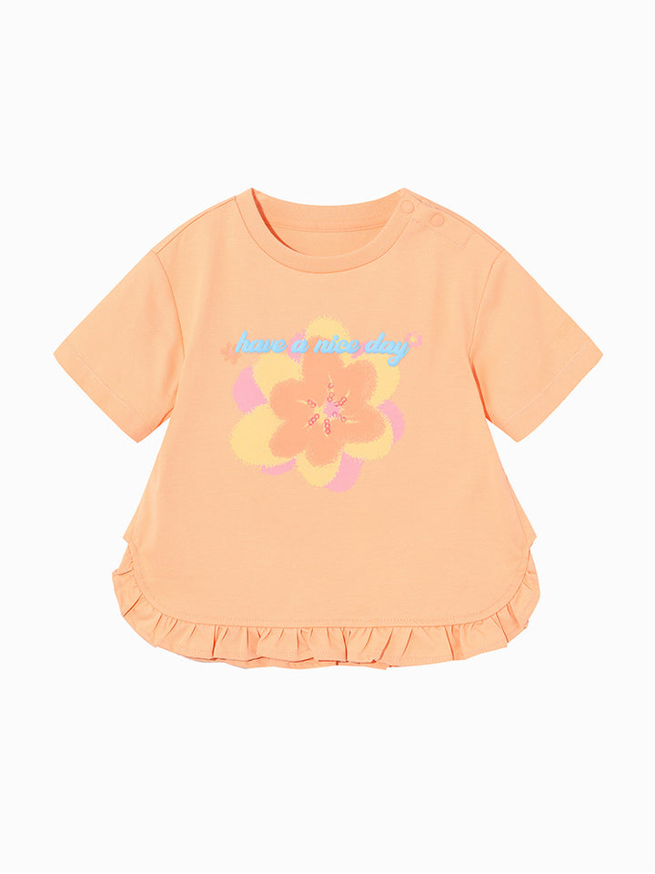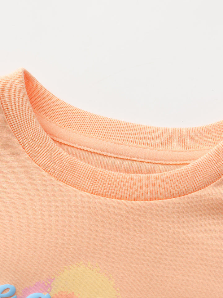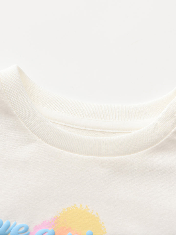 short sleeves t-shirt decorated with front print and comes with a rounded shape neckline