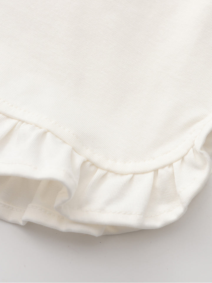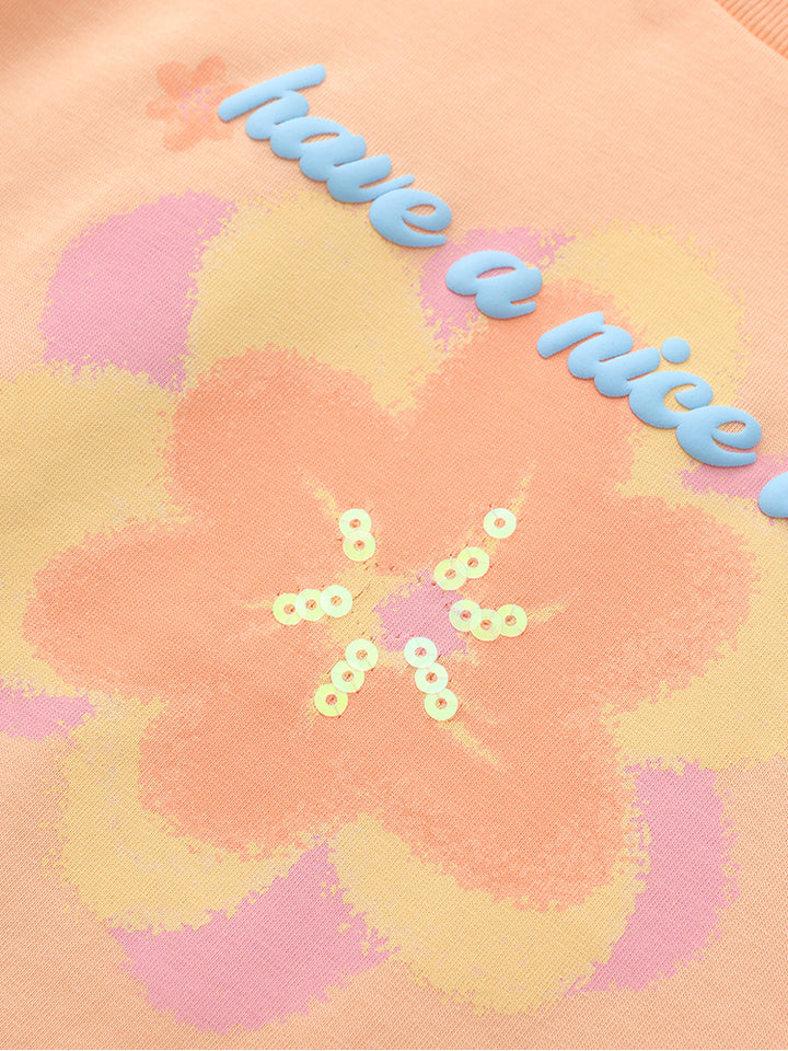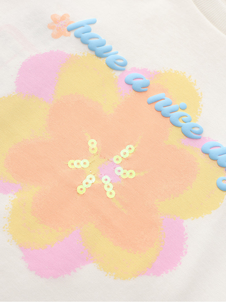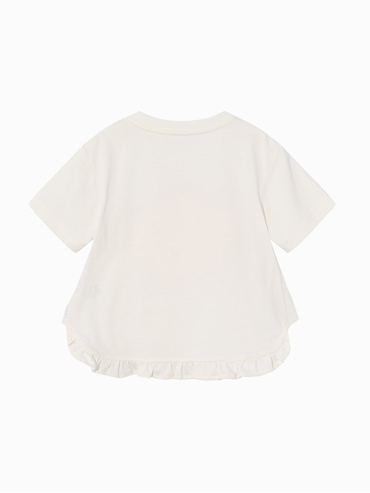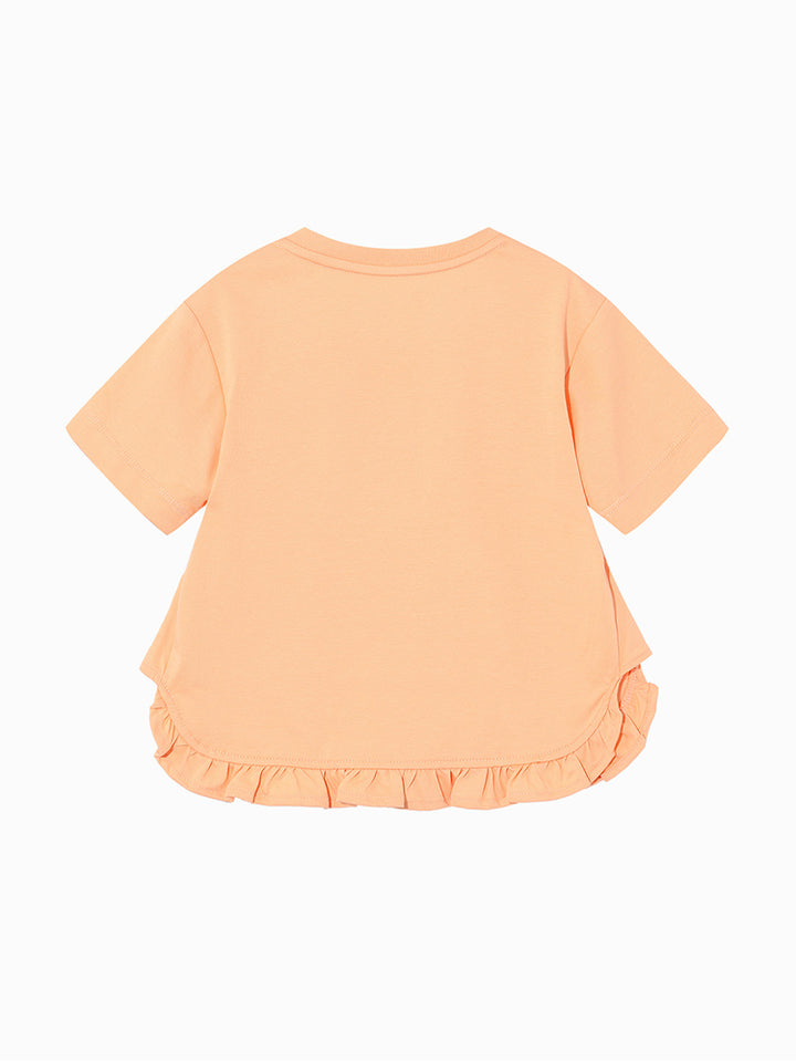 short sleeves t-shirt decorated with front print and comes with a rounded shape neckline