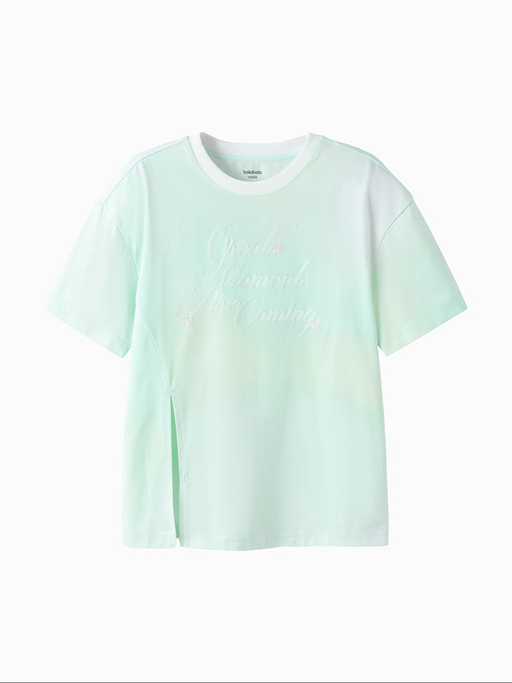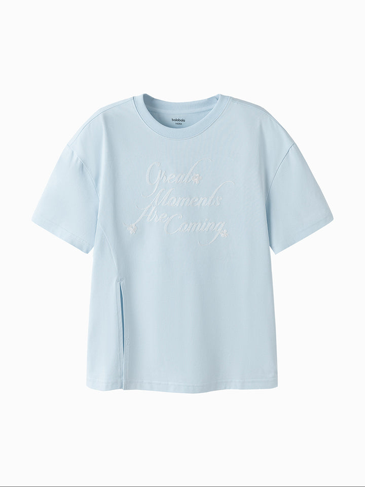This stylish kids t-shirt features short sleeves, a round neck, and eye-catching front embroidery. Perfect for casual wear, it offers both comfort and a trendy look for your little one