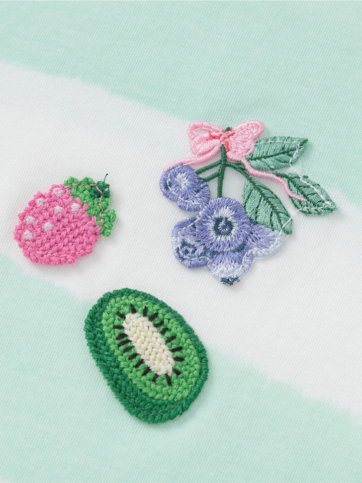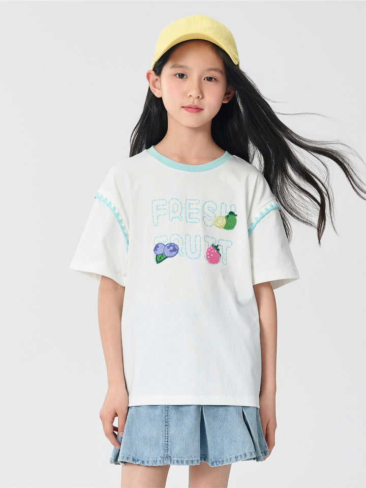 Girls' Short Sleeve T-Shirt - Embroidery On Front And Sleeves With Crew Neck