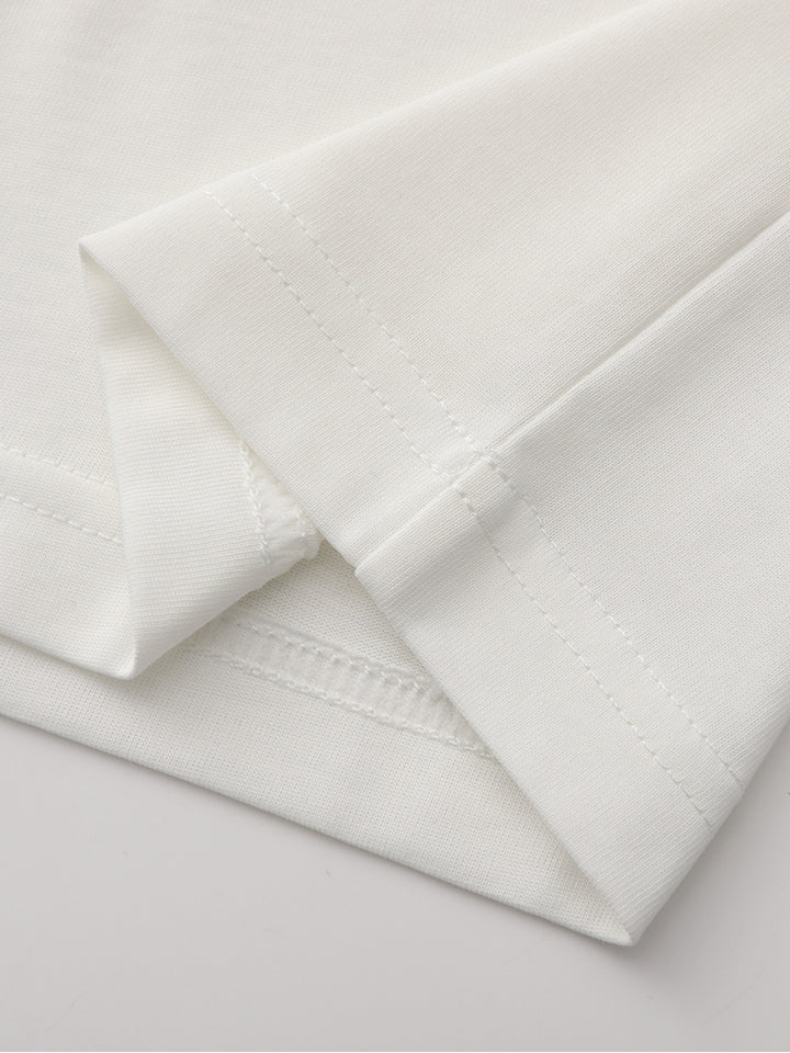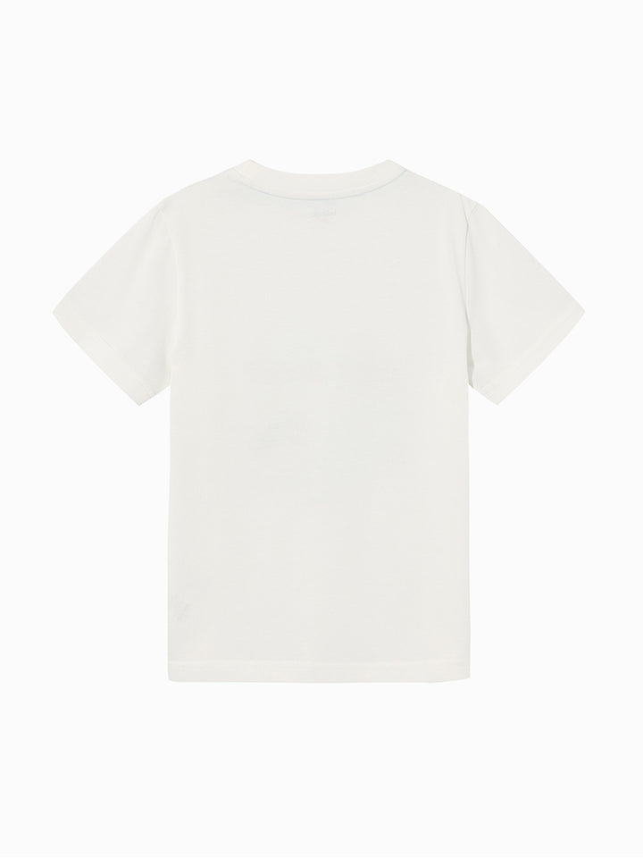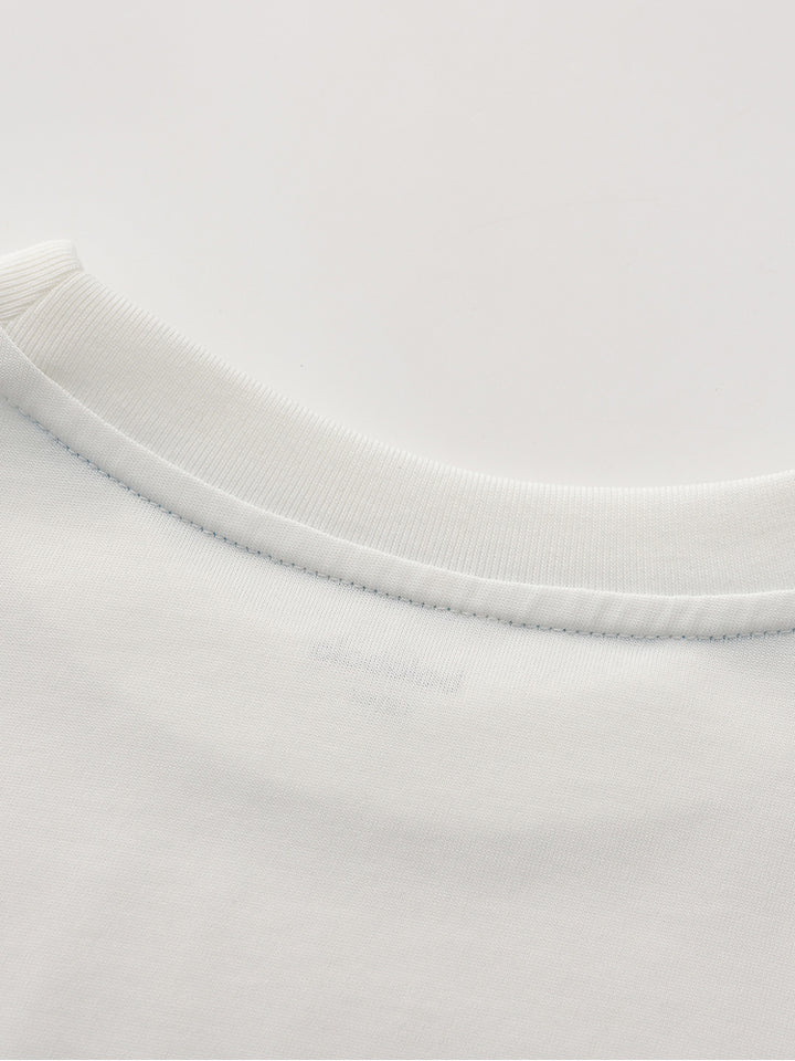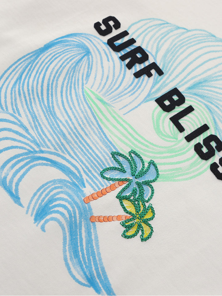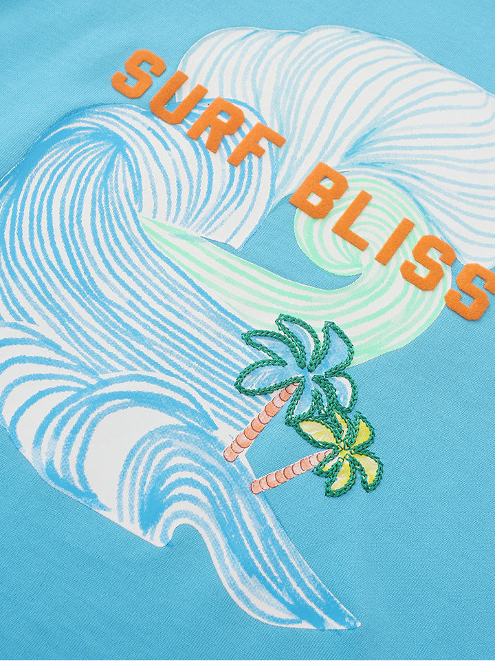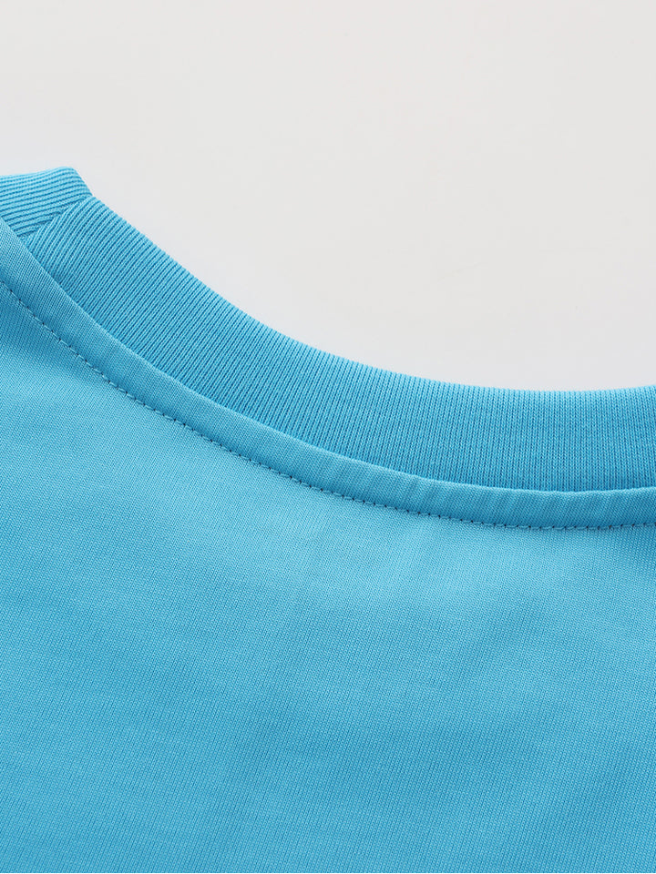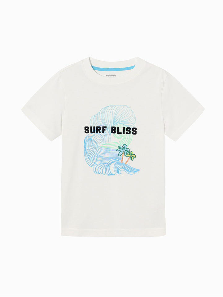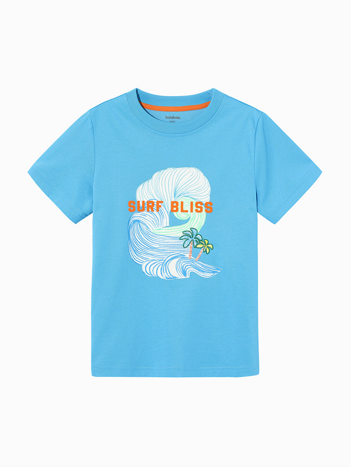 short sleeves t-shirt decorated with front print and comes with a rounded shape neckline